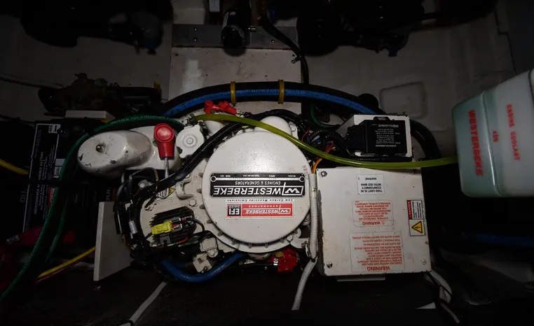 Freshwater since new this vessel features Twin MerCruiser 350-Mag 300-hp Gas Engine's (Note DTS w/Joy-Stick Piloting) with Bravo III Sterndrives and only 400 original hours. Notable features include but are not limited to the following: Air-Conditioning & Heat (1-Unit), Head (Vacuflush) w/Vanity/Sink, Windlass Anchor w/Polished Stainless-Steel Anchor / Forward Pedal-Controls, Westerbeke 5kw Generator, Garmin GPSMAP 942XS (Color / TouchScreen) GPS/Chartplotter, Fusion Apollo Premium Sound System w/Bluetooth (w/AMP / Subwoofer), Cockpit Wet Bar w/Sink/Beverage-Refrigerator, Cockpit Television, and MUCH more!