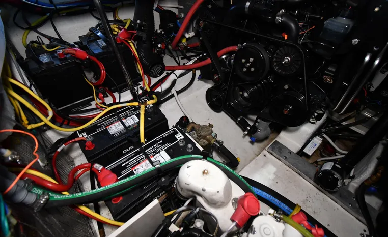 Freshwater since new this vessel features Twin MerCruiser 350-Mag 300-hp Gas Engine's (Note DTS w/Joy-Stick Piloting) with Bravo III Sterndrives and only 400 original hours. Notable features include but are not limited to the following: Air-Conditioning & Heat (1-Unit), Head (Vacuflush) w/Vanity/Sink, Windlass Anchor w/Polished Stainless-Steel Anchor / Forward Pedal-Controls, Westerbeke 5kw Generator, Garmin GPSMAP 942XS (Color / TouchScreen) GPS/Chartplotter, Fusion Apollo Premium Sound System w/Bluetooth (w/AMP / Subwoofer), Cockpit Wet Bar w/Sink/Beverage-Refrigerator, Cockpit Television, and MUCH more!