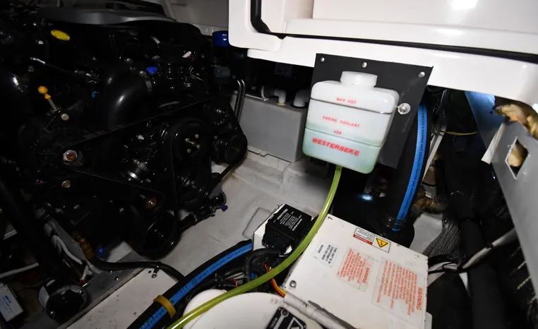 Freshwater since new this vessel features Twin MerCruiser 350-Mag 300-hp Gas Engine's (Note DTS w/Joy-Stick Piloting) with Bravo III Sterndrives and only 400 original hours. Notable features include but are not limited to the following: Air-Conditioning & Heat (1-Unit), Head (Vacuflush) w/Vanity/Sink, Windlass Anchor w/Polished Stainless-Steel Anchor / Forward Pedal-Controls, Westerbeke 5kw Generator, Garmin GPSMAP 942XS (Color / TouchScreen) GPS/Chartplotter, Fusion Apollo Premium Sound System w/Bluetooth (w/AMP / Subwoofer), Cockpit Wet Bar w/Sink/Beverage-Refrigerator, Cockpit Television, and MUCH more!
