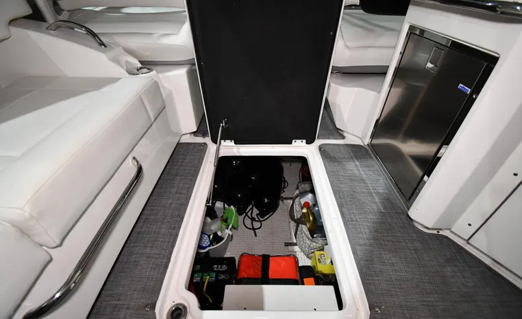 Freshwater since new this vessel features Twin MerCruiser 350-Mag 300-hp Gas Engine's (Note DTS w/Joy-Stick Piloting) with Bravo III Sterndrives and only 400 original hours. Notable features include but are not limited to the following: Air-Conditioning & Heat (1-Unit), Head (Vacuflush) w/Vanity/Sink, Windlass Anchor w/Polished Stainless-Steel Anchor / Forward Pedal-Controls, Westerbeke 5kw Generator, Garmin GPSMAP 942XS (Color / TouchScreen) GPS/Chartplotter, Fusion Apollo Premium Sound System w/Bluetooth (w/AMP / Subwoofer), Cockpit Wet Bar w/Sink/Beverage-Refrigerator, Cockpit Television, and MUCH more!