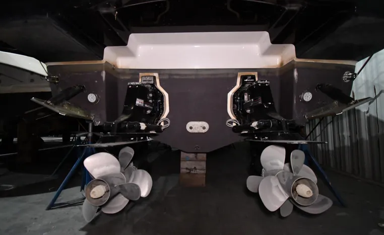 Freshwater since new this vessel features Twin MerCruiser 350-Mag 300-hp Gas Engine's (Note DTS w/Joy-Stick Piloting) with Bravo III Sterndrives and only 400 original hours. Notable features include but are not limited to the following: Air-Conditioning & Heat (1-Unit), Head (Vacuflush) w/Vanity/Sink, Windlass Anchor w/Polished Stainless-Steel Anchor / Forward Pedal-Controls, Westerbeke 5kw Generator, Garmin GPSMAP 942XS (Color / TouchScreen) GPS/Chartplotter, Fusion Apollo Premium Sound System w/Bluetooth (w/AMP / Subwoofer), Cockpit Wet Bar w/Sink/Beverage-Refrigerator, Cockpit Television, and MUCH more!