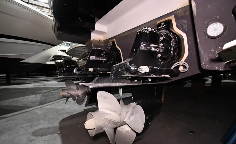 Freshwater since new this vessel features Twin MerCruiser 350-Mag 300-hp Gas Engine's (Note DTS w/Joy-Stick Piloting) with Bravo III Sterndrives and only 400 original hours. Notable features include but are not limited to the following: Air-Conditioning & Heat (1-Unit), Head (Vacuflush) w/Vanity/Sink, Windlass Anchor w/Polished Stainless-Steel Anchor / Forward Pedal-Controls, Westerbeke 5kw Generator, Garmin GPSMAP 942XS (Color / TouchScreen) GPS/Chartplotter, Fusion Apollo Premium Sound System w/Bluetooth (w/AMP / Subwoofer), Cockpit Wet Bar w/Sink/Beverage-Refrigerator, Cockpit Television, and MUCH more!