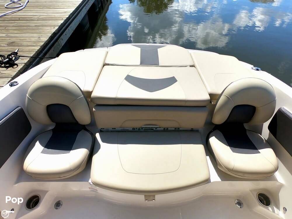 The boat is equipped with comfortable bow and cockpit seating, fishing chairs that can be swapped in when you're ready to cast off, a livewell, rod holders, and plenty of storage for all your gear. It also has the power you need for watersports. Iit's pulled skiers and wakeboarders with ease, and the extended swim platform with ladder makes it super easy to get in and out of the water.