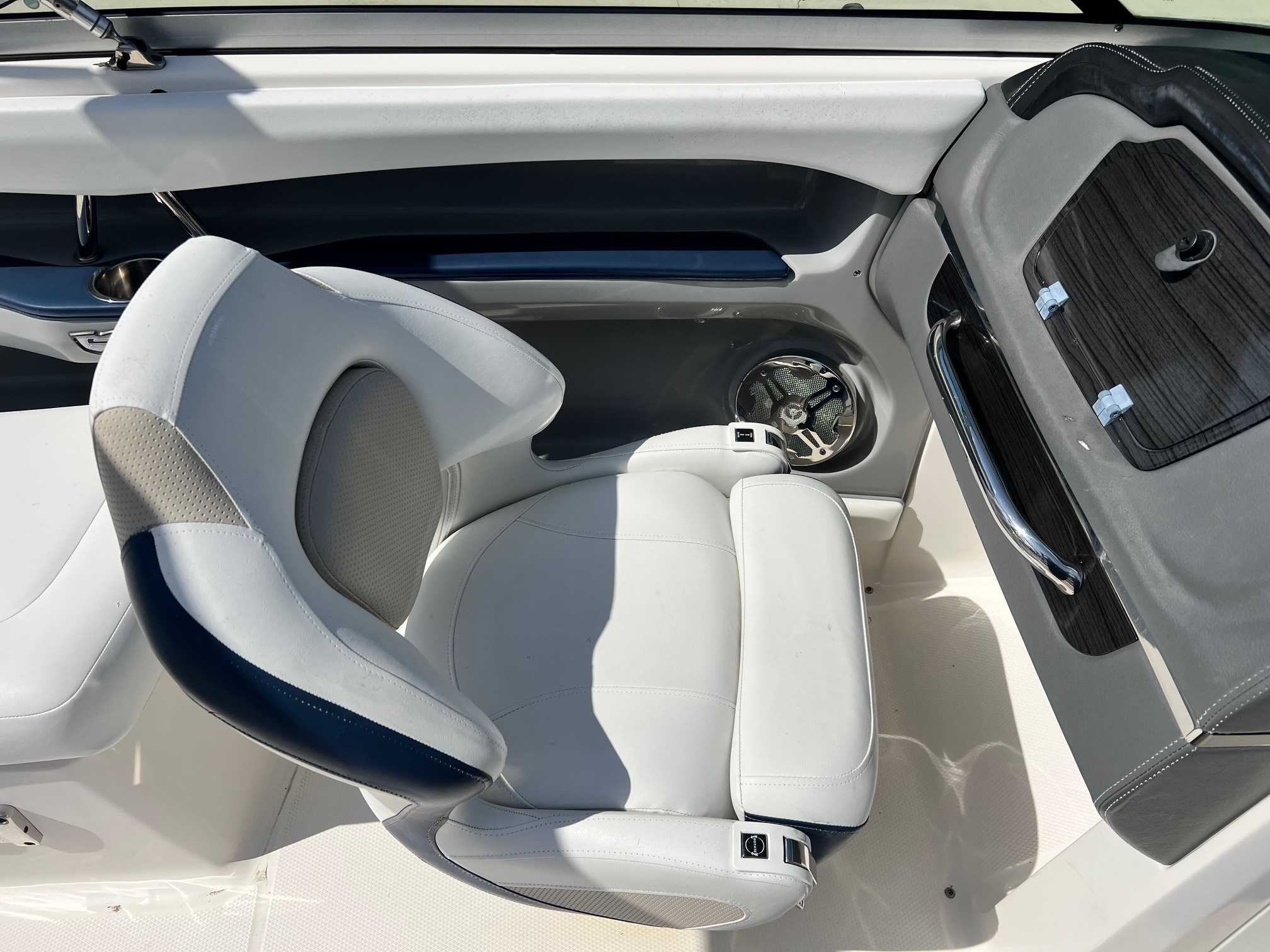 • Enclosed Storage/Head: The passenger-side console opens to a deep storage area that can be equipped as a portable head—a rare and highly valued feature in a 22-foot boat.