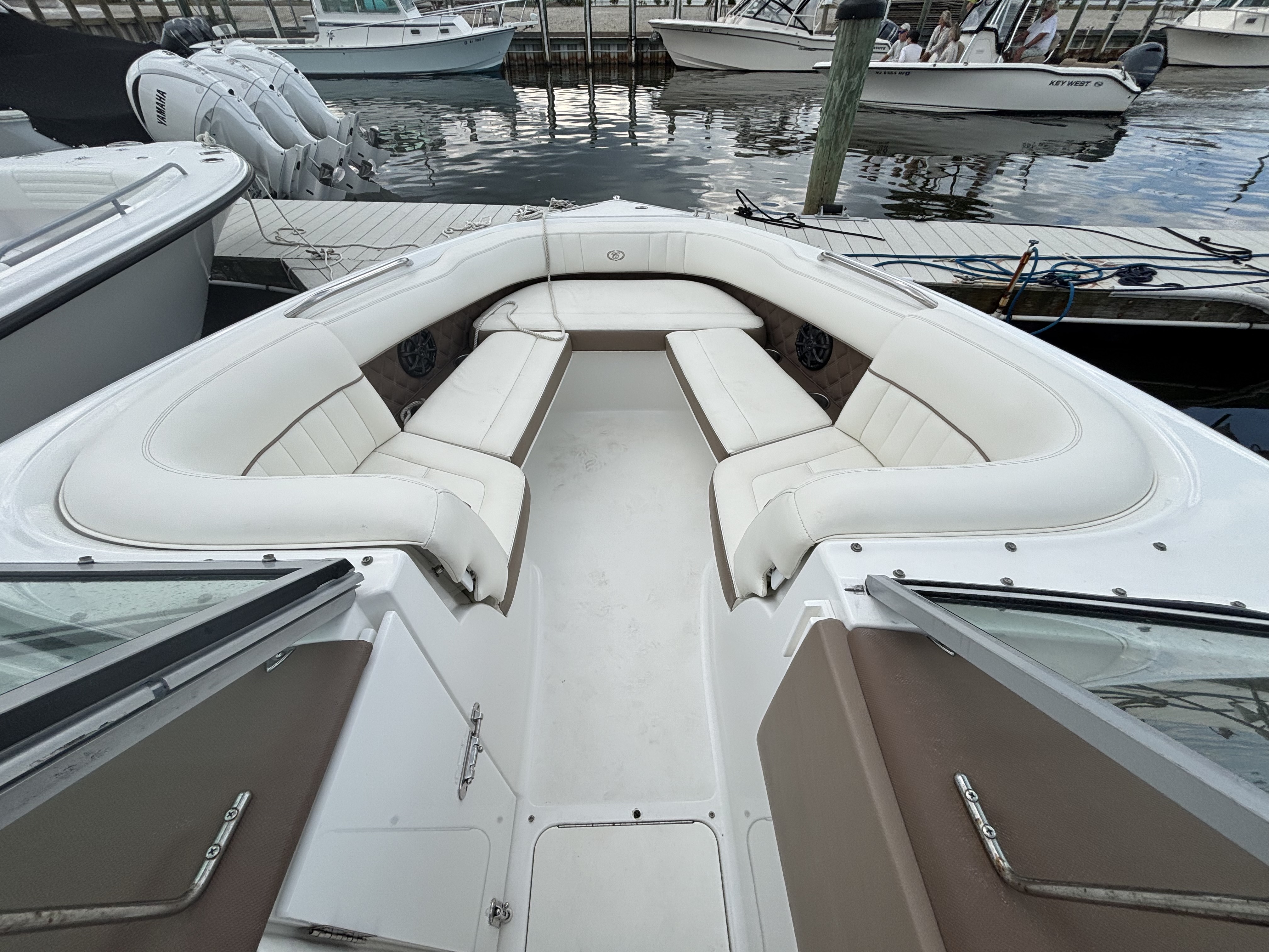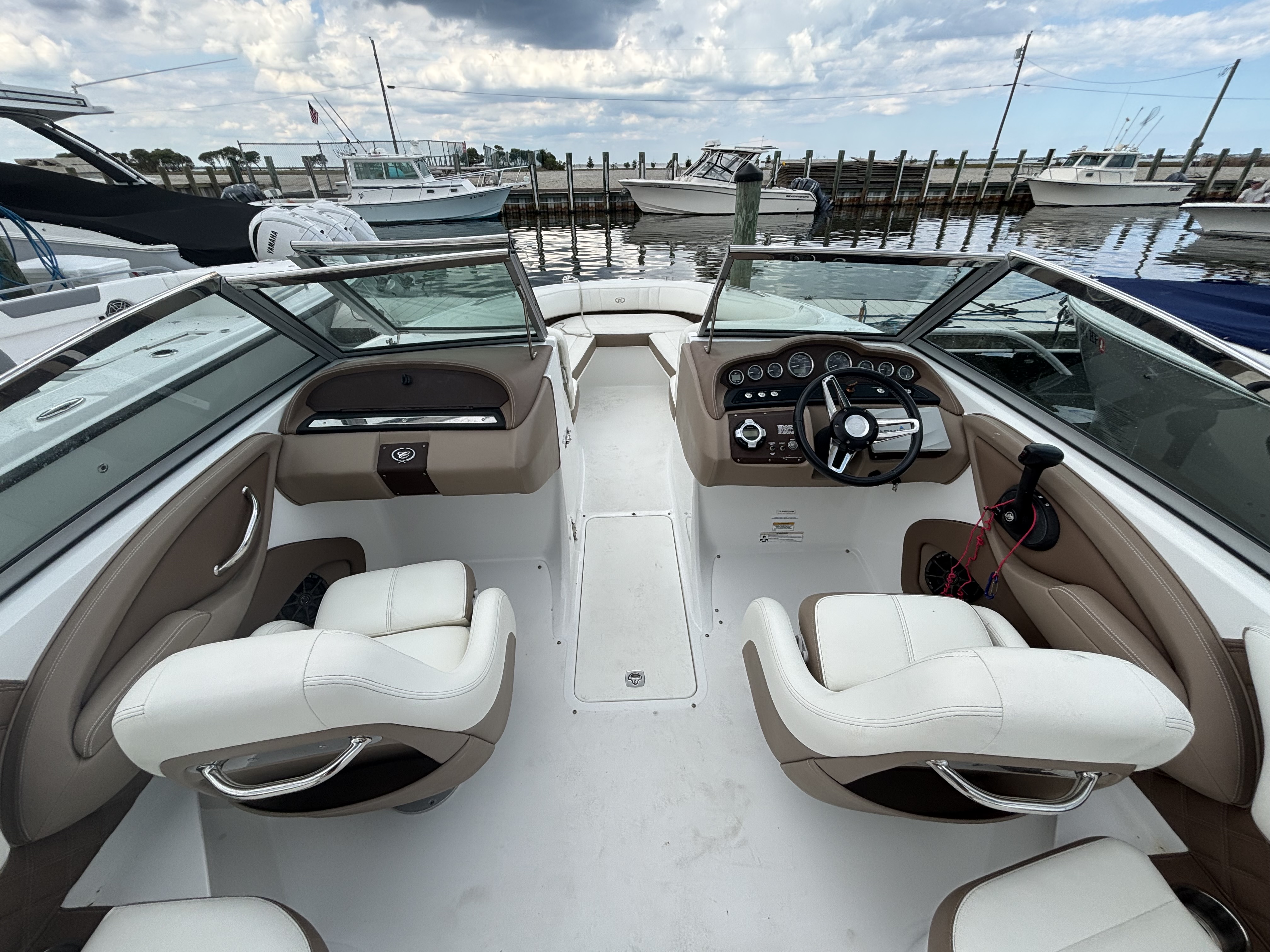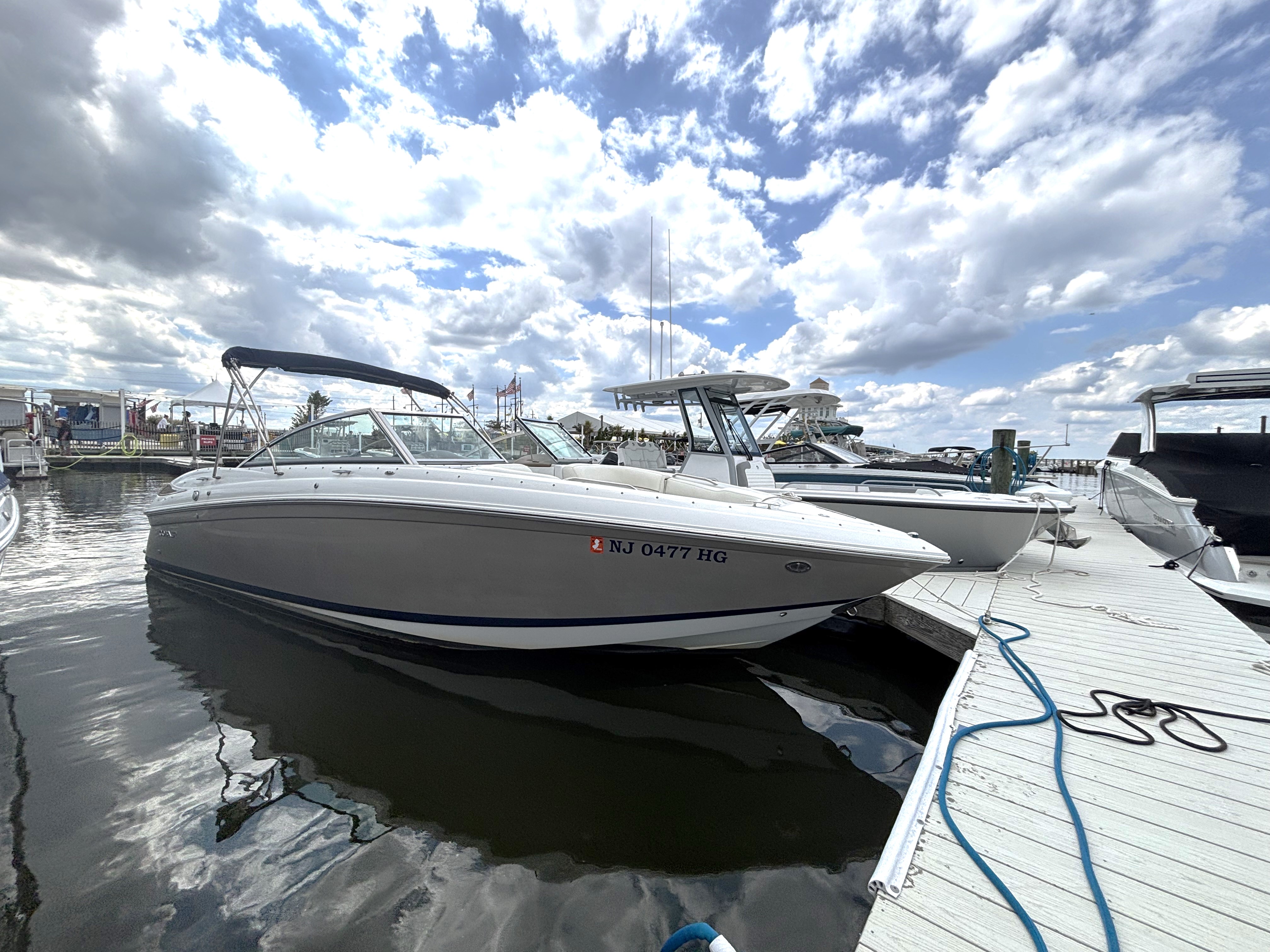 Call to make an offer today, 609-597-3488! Excellent condition pre-owned powerboat built by Cobalt Boats, the 242 is a bowrider vessel. Cobalt 242 boats are typically used for day-cruising, watersports and freshwater-fishing. This model includes yacht style wraparound seating with adjustable bolster Helm and Navigator captains chairs and sunpad