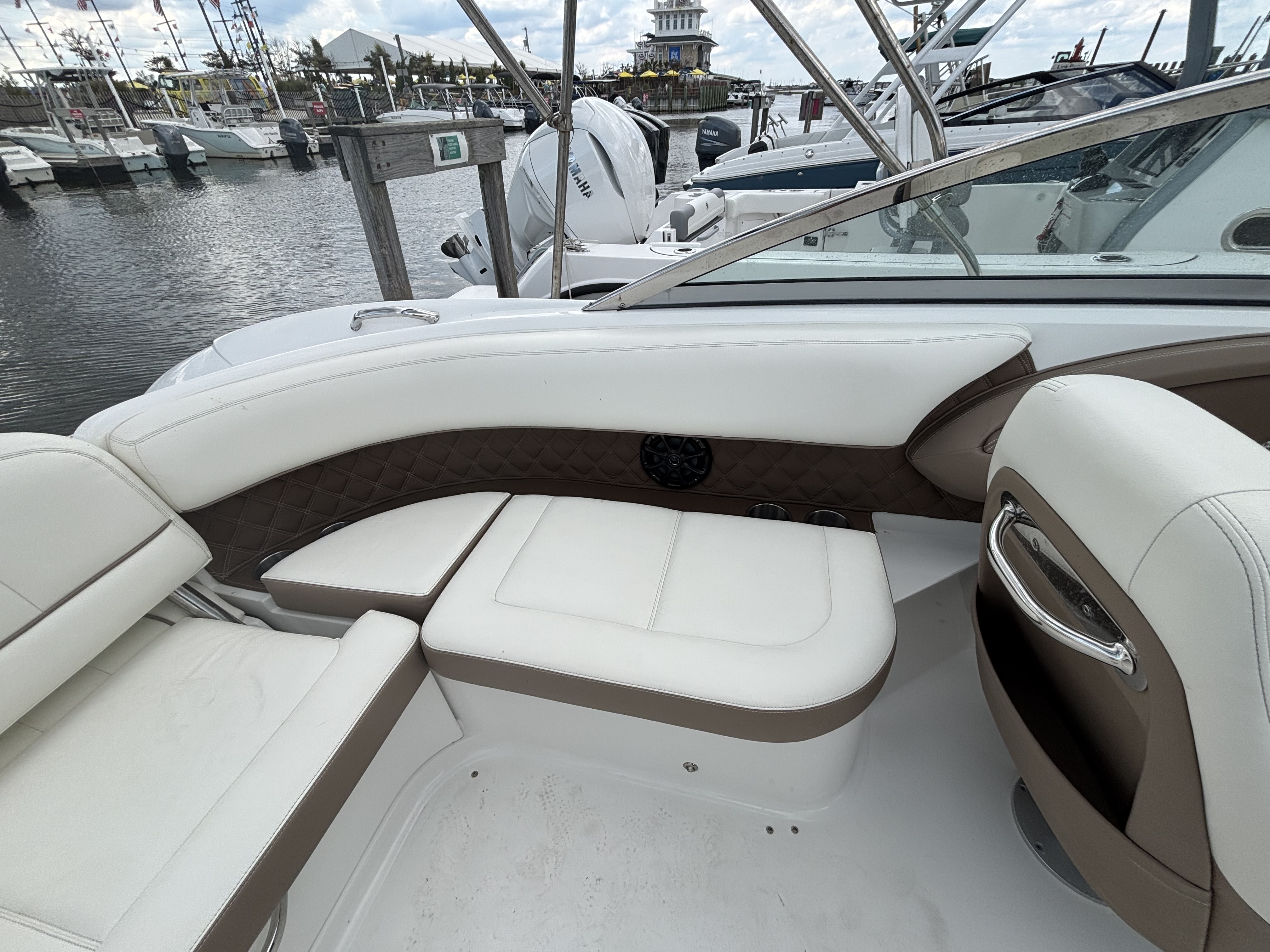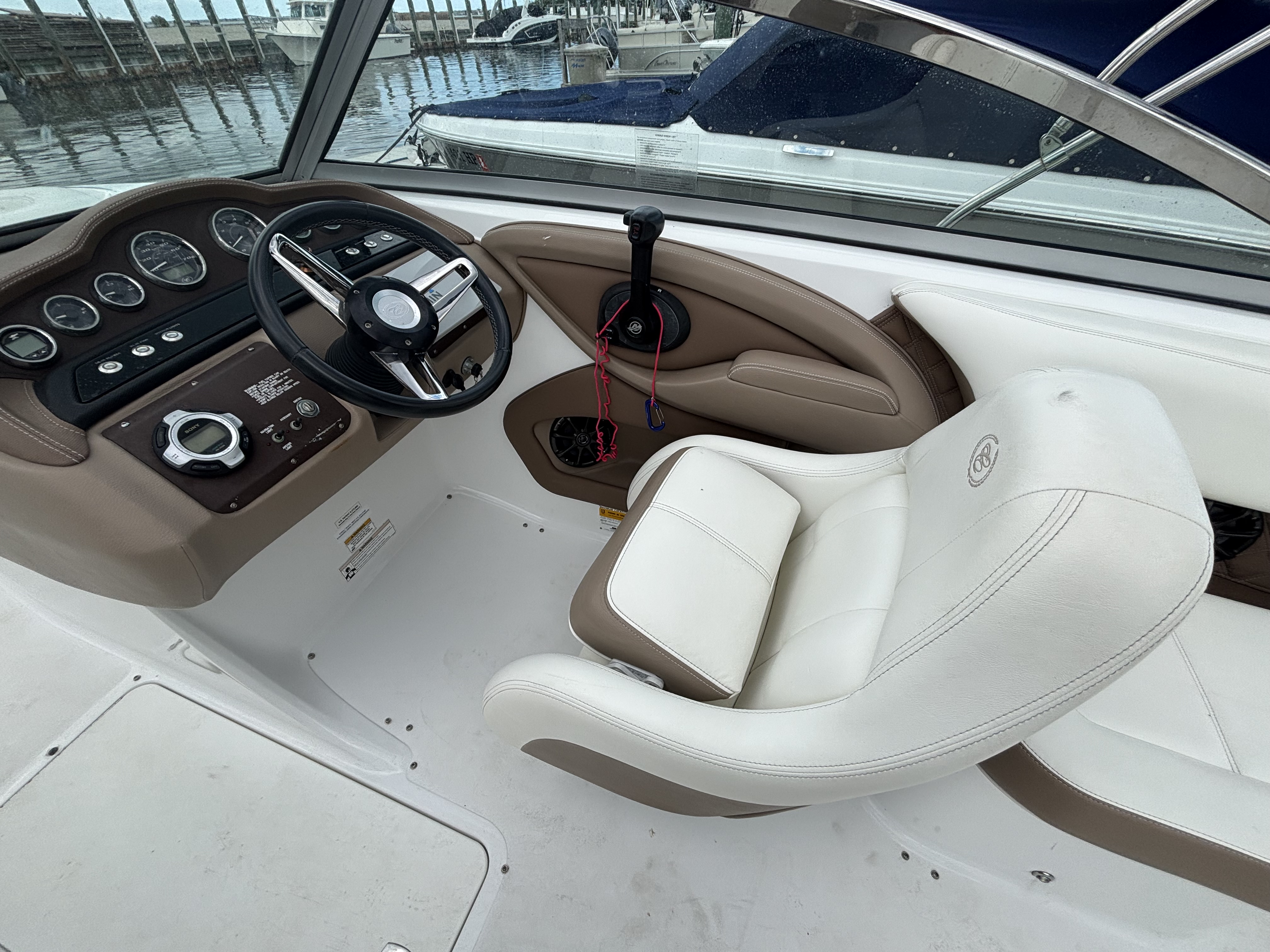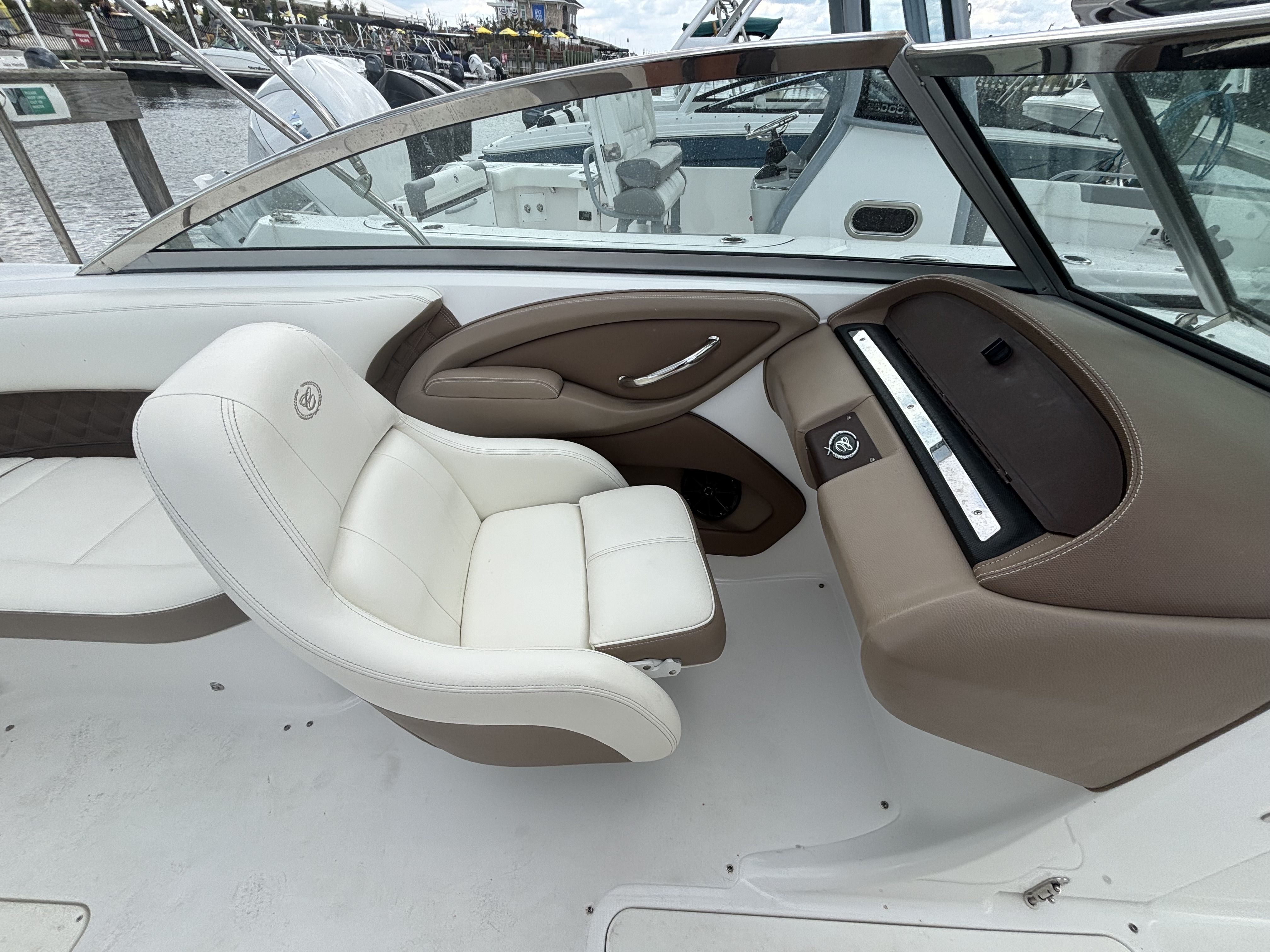 Call to make an offer today, 609-597-3488! Excellent condition pre-owned powerboat built by Cobalt Boats, the 242 is a bowrider vessel. Cobalt 242 boats are typically used for day-cruising, watersports and freshwater-fishing. This model includes yacht style wraparound seating with adjustable bolster Helm and Navigator captains chairs and sunpad