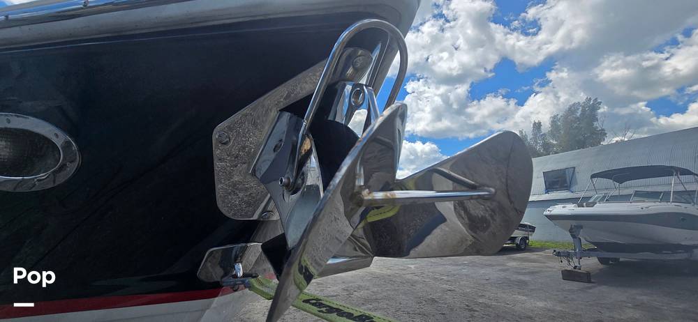 Designed for comfort and socializing, this boat features an expansive bow seating area with plush, hand-stitched upholstery, perfect for relaxing and entertaining. There is a recessed bow rail, an anchor locker with Maxwell windlass with push buttons, with rode and chain.