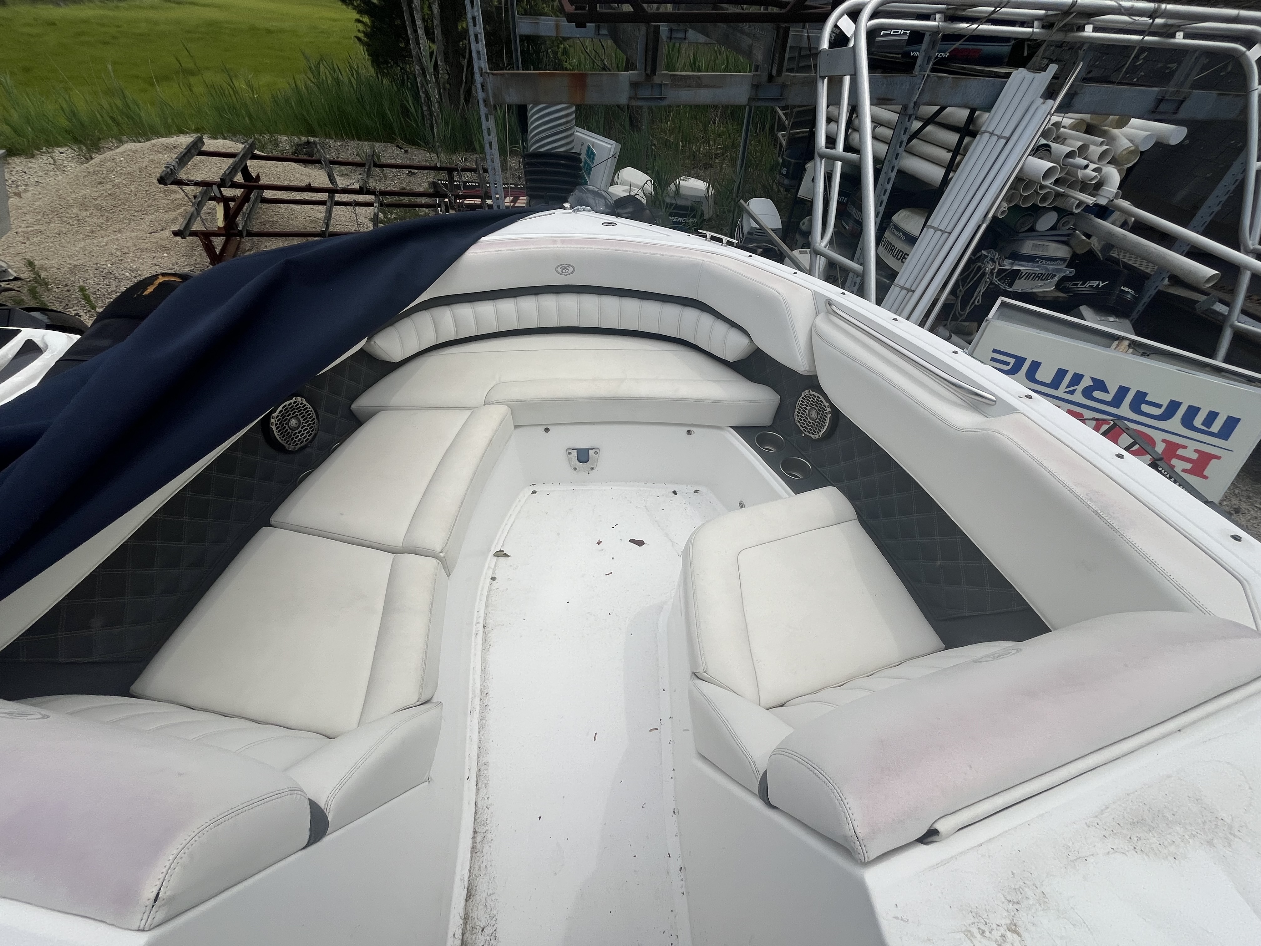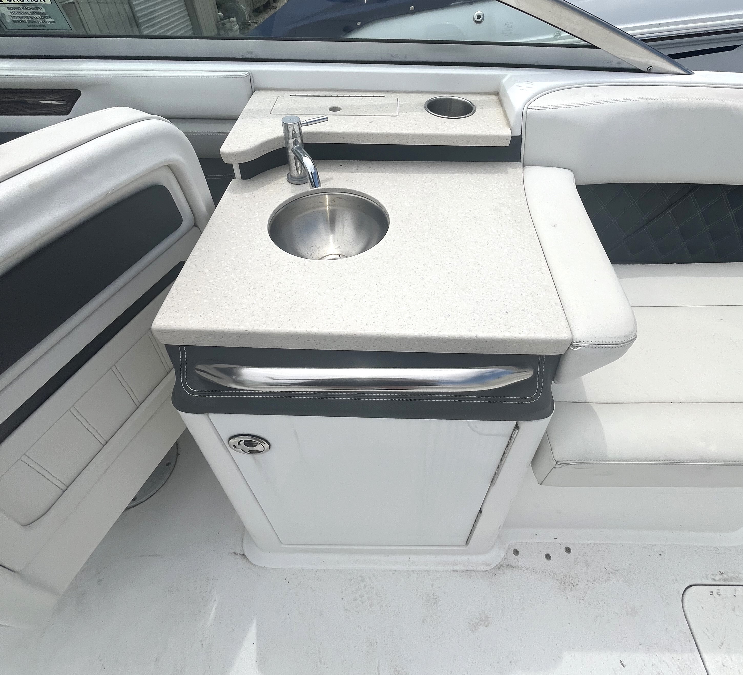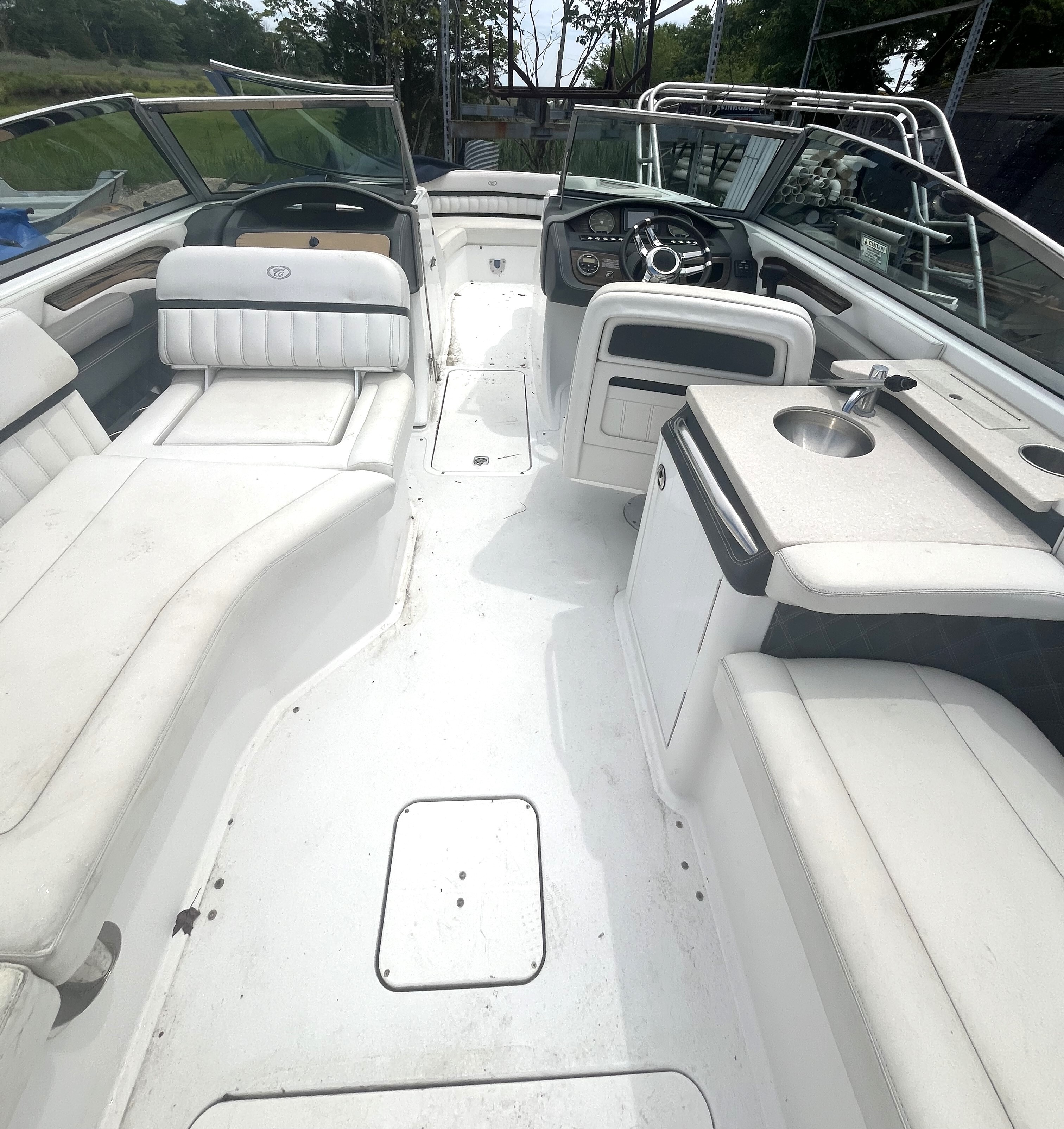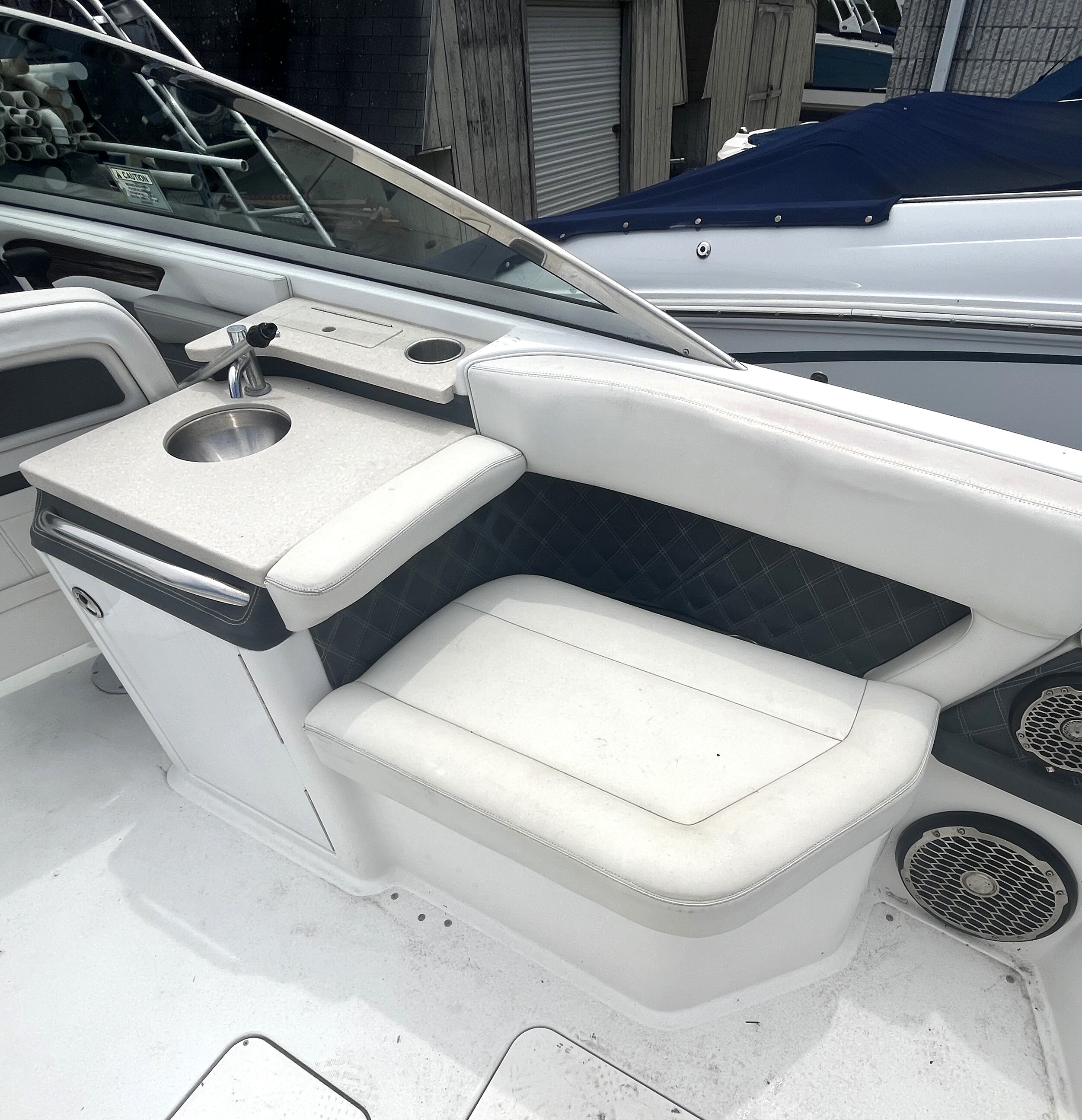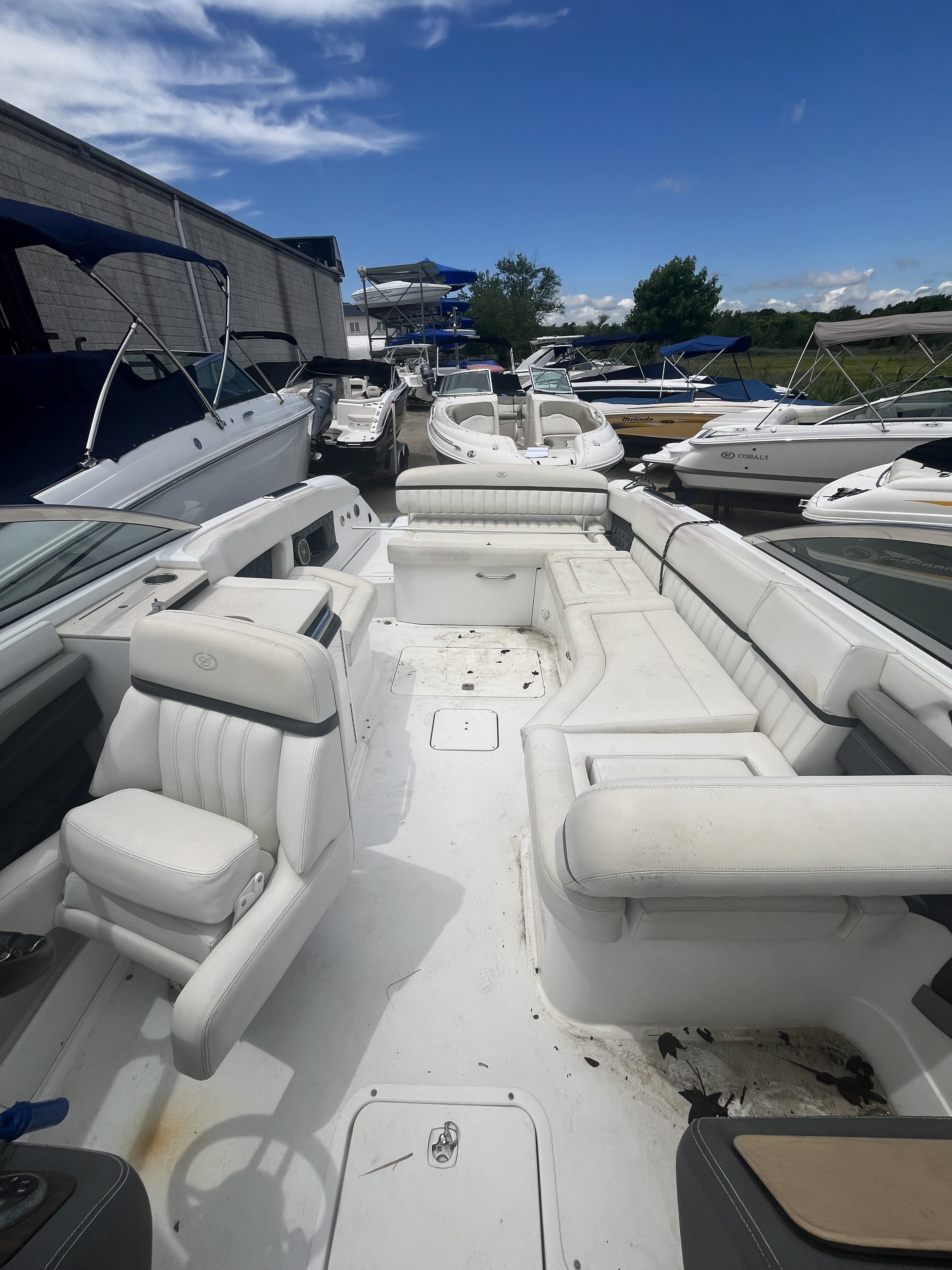 Call to make an offer today, 609-597-3488! Lift Kept!!!! 158.5 Hours! With its three feet of extra space, the Cobalt Boats A28 Bowrider amplifies the A25's proven virtues, none more important than a ride now approaching perfection. But we begin with looks, the handsomeness of an inverse hull whose complexity only yacht makers have seen fit to attempt, the sweep of a profile that can come only from cobalt hand-craftsmanship. The Cobalt Boats A28 Bowrider interior will wow, as a soft aura of luxury surrounds you and your guests. The bow is broader in the beam, roomy and then some, with immediately reconfigurable seating. More practicality here too, in the added head compartment and yet more storage.