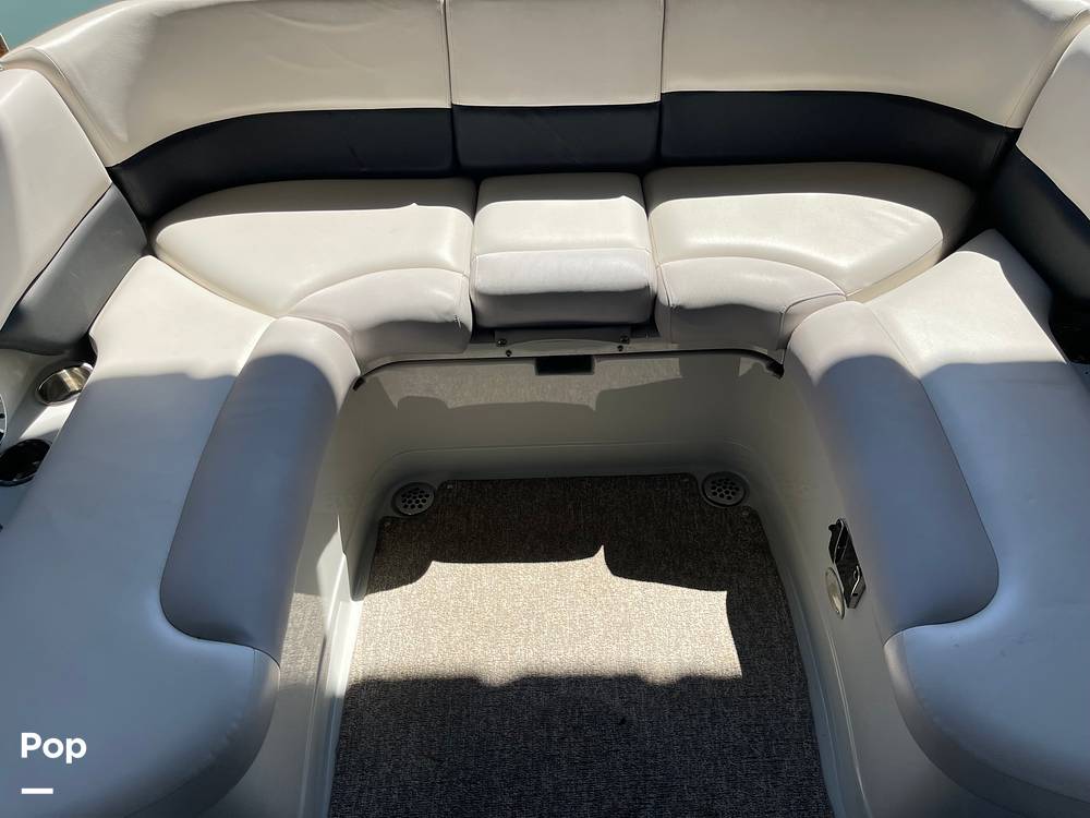 The powerplant is the 350 Mag, which has 300 hp. The drive is the Mercruiser Bravo Three, which has twin propellers. This engine can easily pull skiers or wakeboards while getting reasonable fuel consumption for a 25-foot boat with up to 12 passengers max.