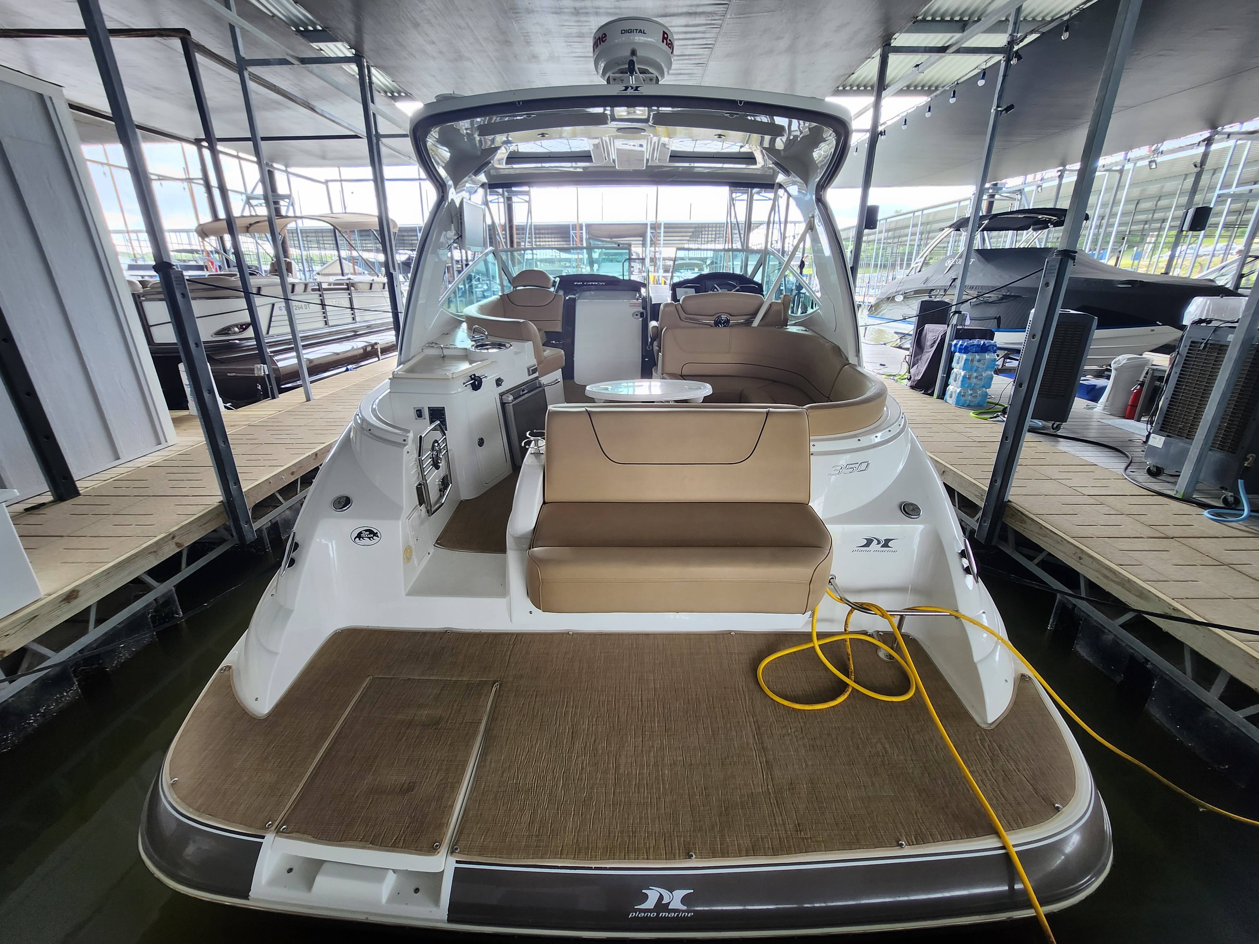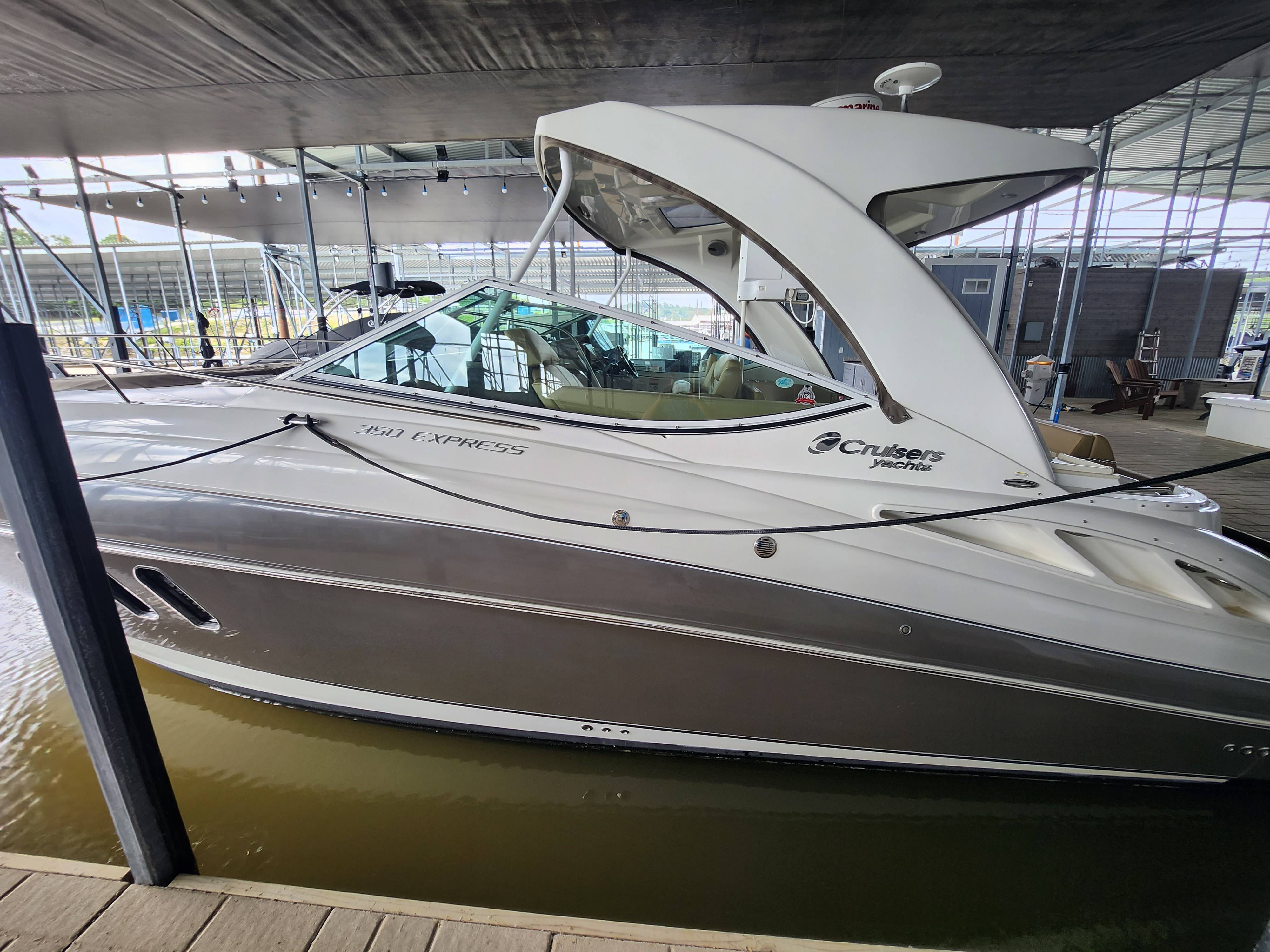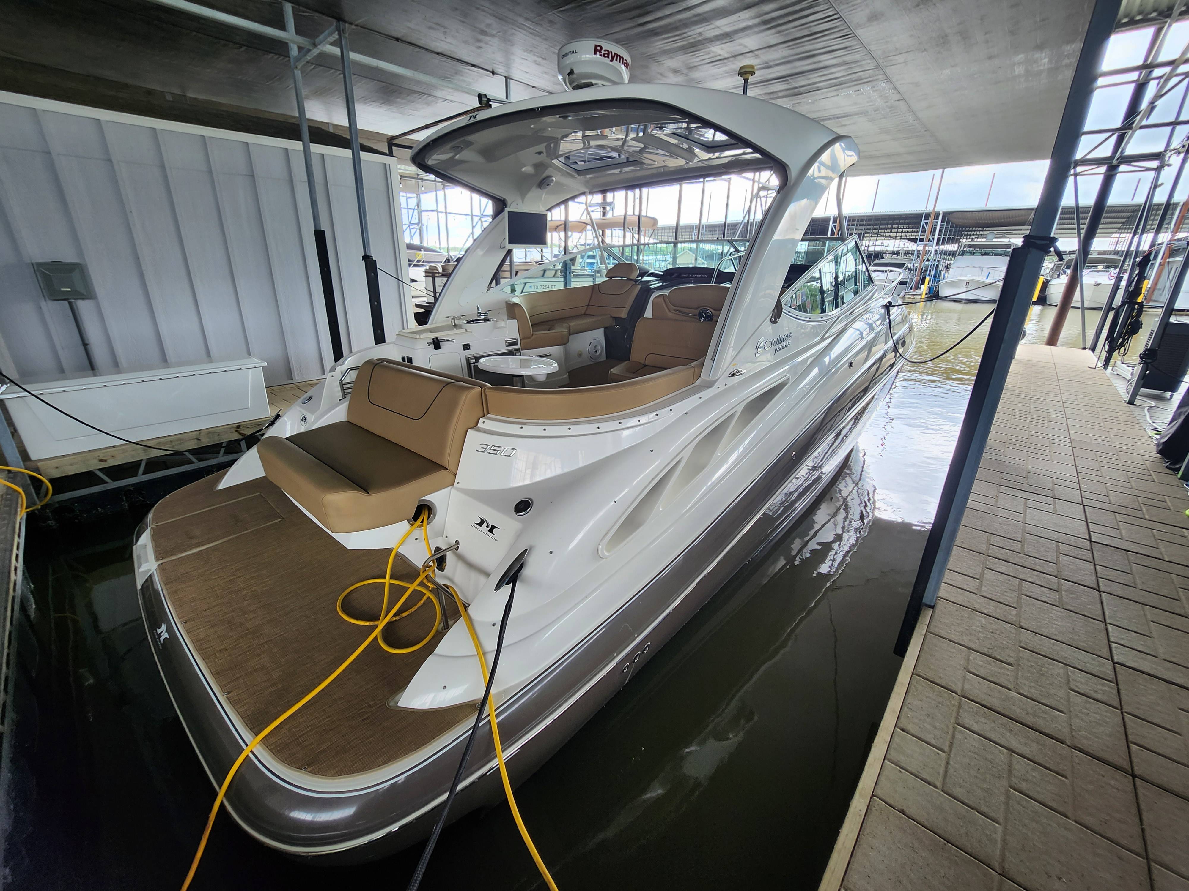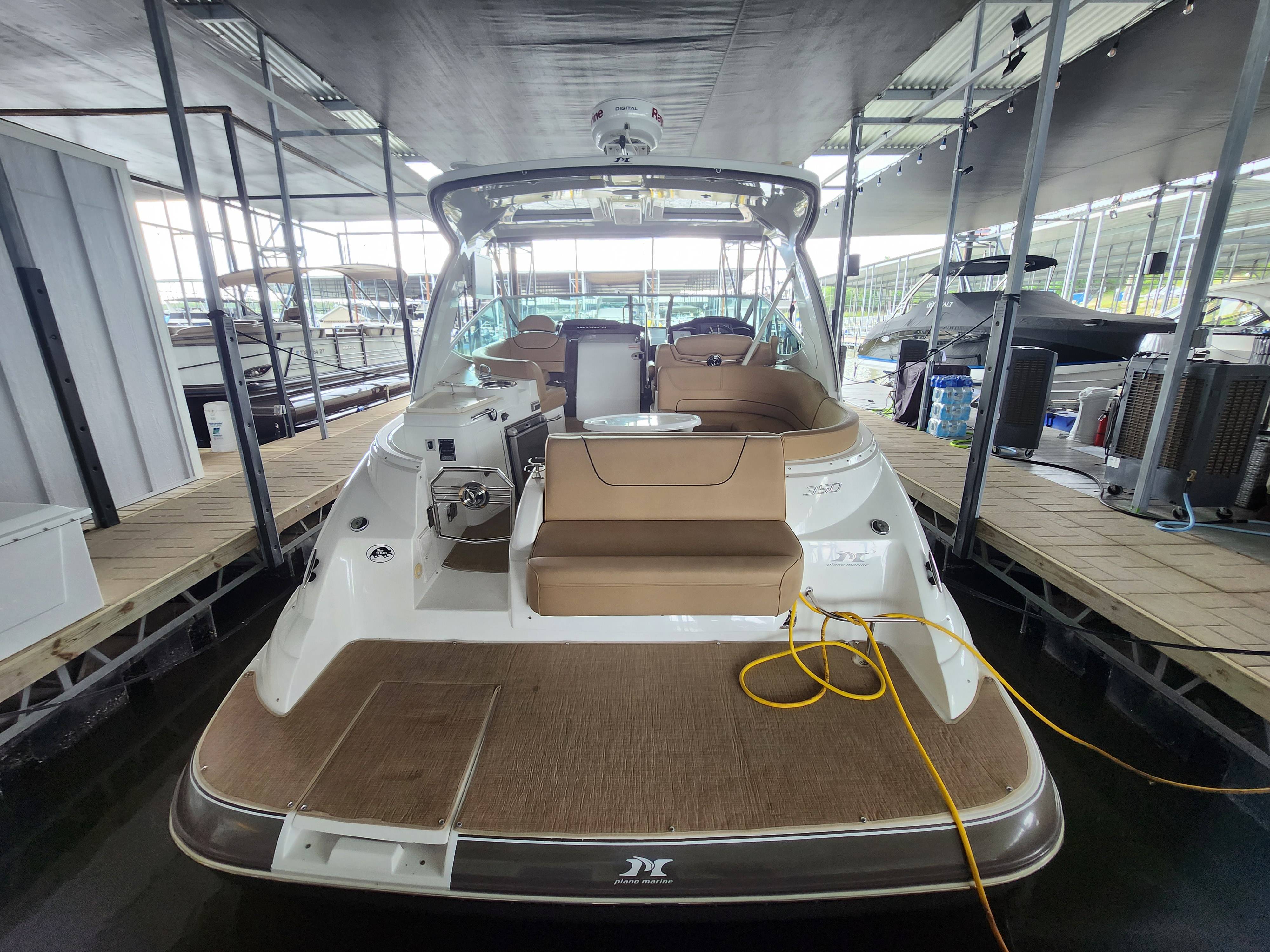 Offered in Cooperation with Plano Marine, Boat is located on Lake Texoma. 2014 Cruisers Yachts 350 Express You and all your loved ones are cordially invited to lead double lives aboard the incredible 350 Express. Because the surprising 350 is actually two yachts in one. It’s engineered for the swift acceleration and nimble handling of a pulse-quickening performance boat. And yet it provides a number of lavish features and extras you’ll only find in much larger yachts. Two exciting lifestyles in one model. Step aboard the 2014 Cruisers Yachts 350 Express, a masterpiece of design and engineering, offering the perfect blend of comfort, luxury, and performance. This stunning vessel, equipped with the state-of-the-art Axius system, promises unparalleled ease of handling and docking, making every voyage a breeze. Key Features: Axius Joystick Docking System: Effortless maneuvering and precise control, even in the tightest of marinas. Twin MerCruiser 8.2 MAG Engines: Powerful and reliable, ensuring smooth and efficient cruising. Spacious Cockpit: Ideal for entertaining, with ample seating, a wet bar, and a premium sound system. Luxurious Interior: Modern design featuring a fully-equipped galley, a cozy dinette, and a plush forward stateroom. Full-Size Head: Complete with shower, ensuring comfort on extended trips. Advanced Navigation Electronics: Including a GPS, radar, and VHF radio for safe and confident navigation. Whether you’re planning a day trip or a weekend getaway, the Cruisers Yachts 350 Express is your ultimate partner on the water. Its sleek lines and premium finishes will turn heads wherever you go, while its robust build and innovative features guarantee a smooth and enjoyable ride. Contact Us Today! Don’t miss the opportunity to own this exceptional yacht.
