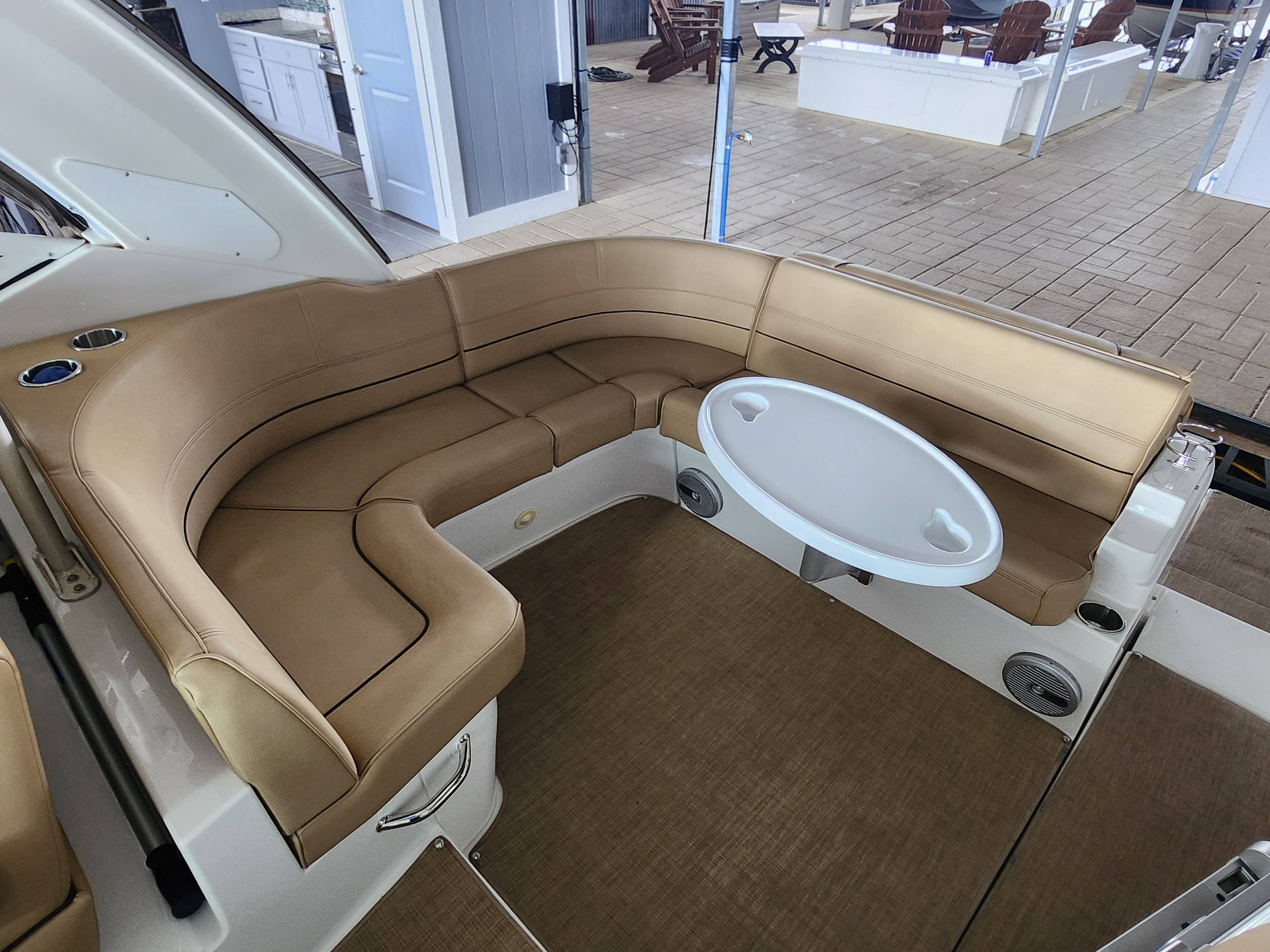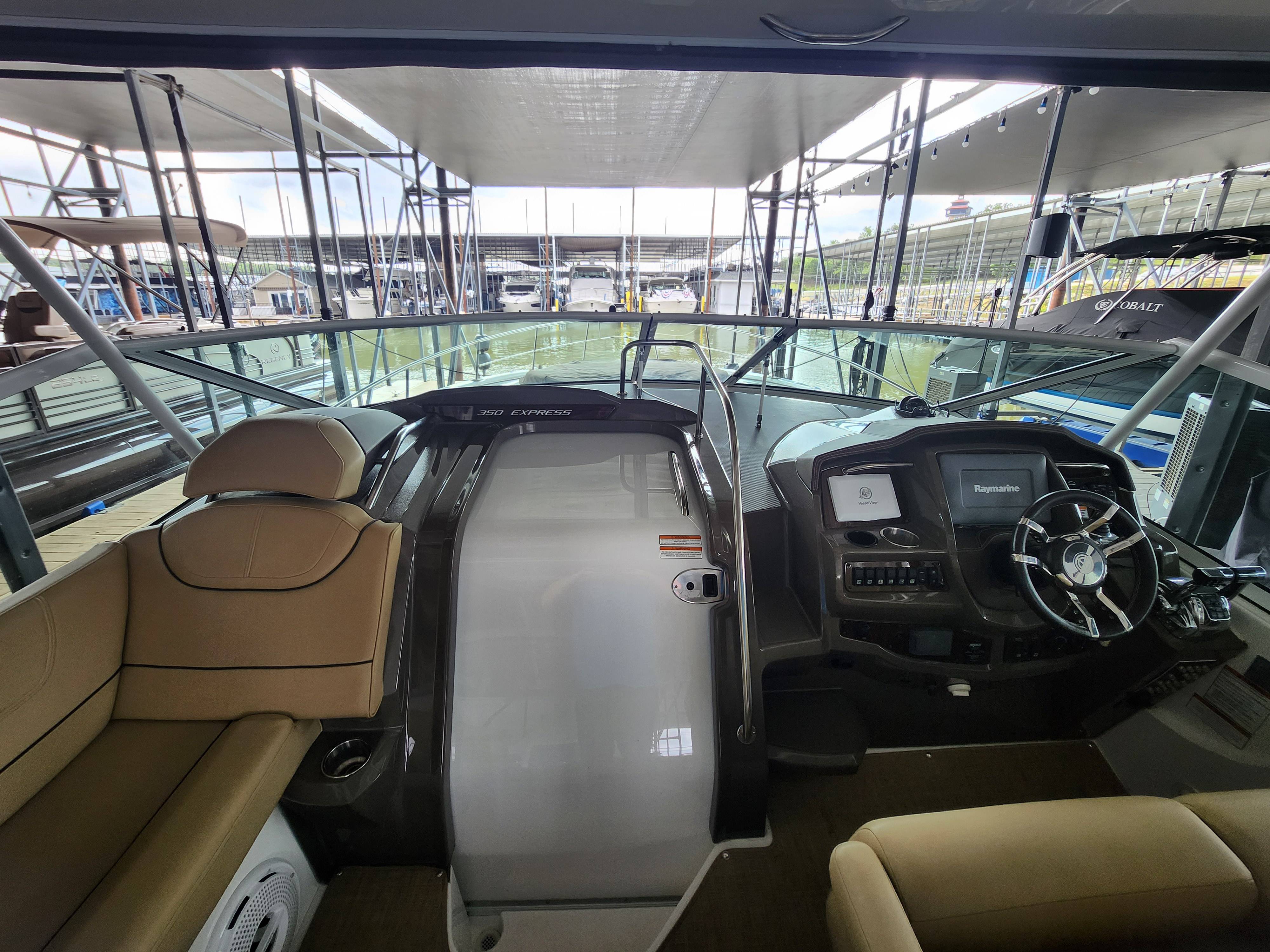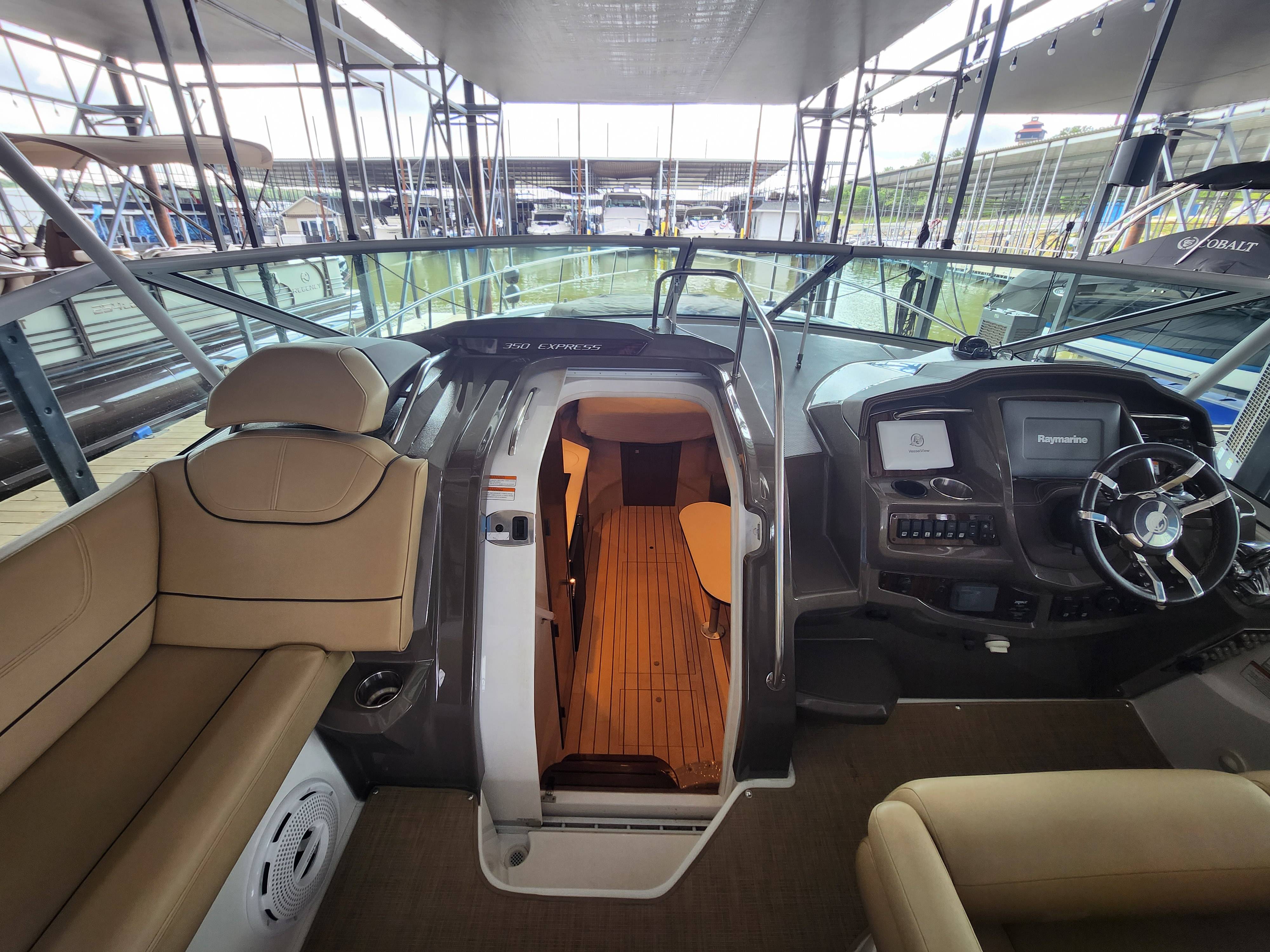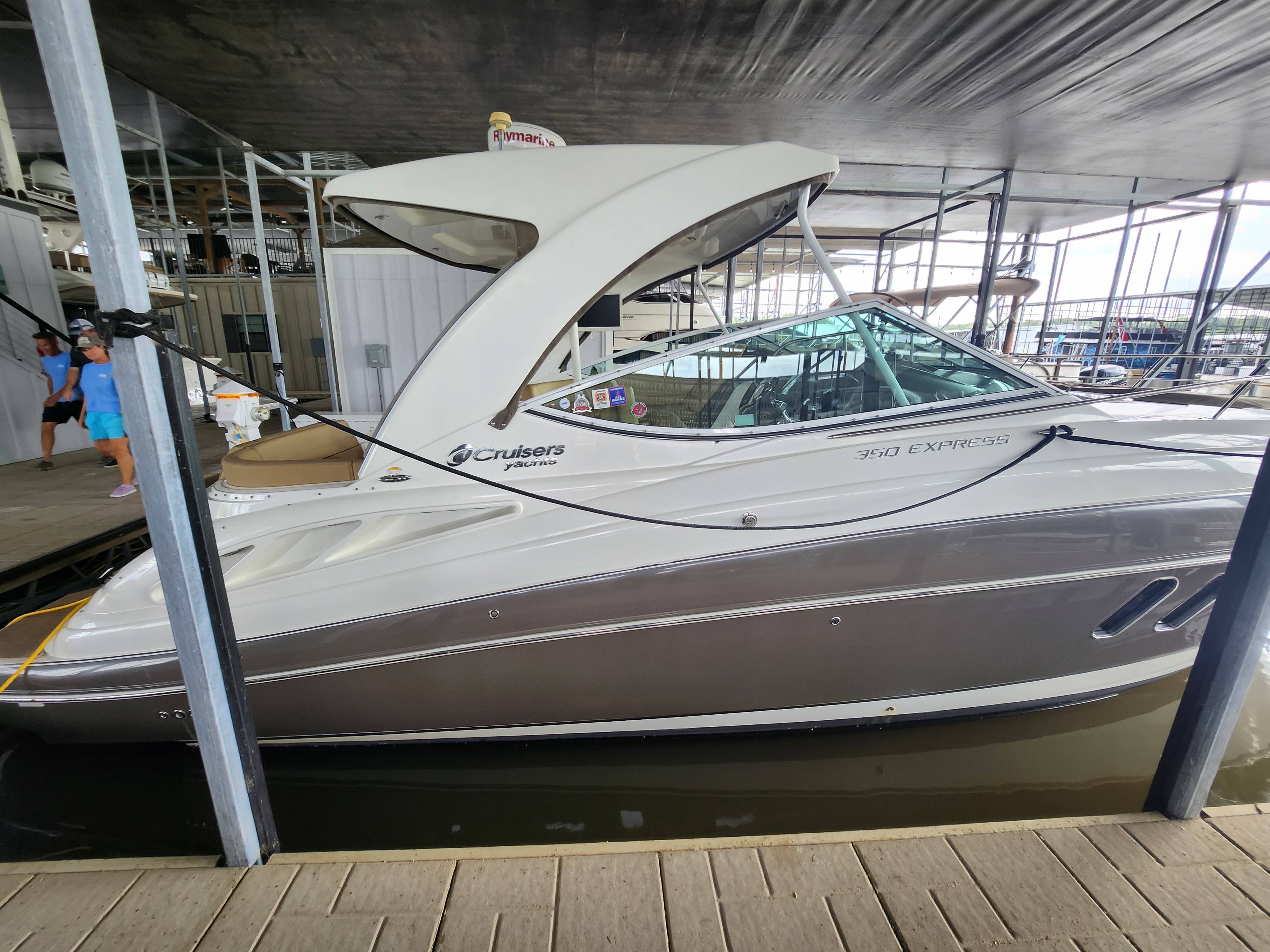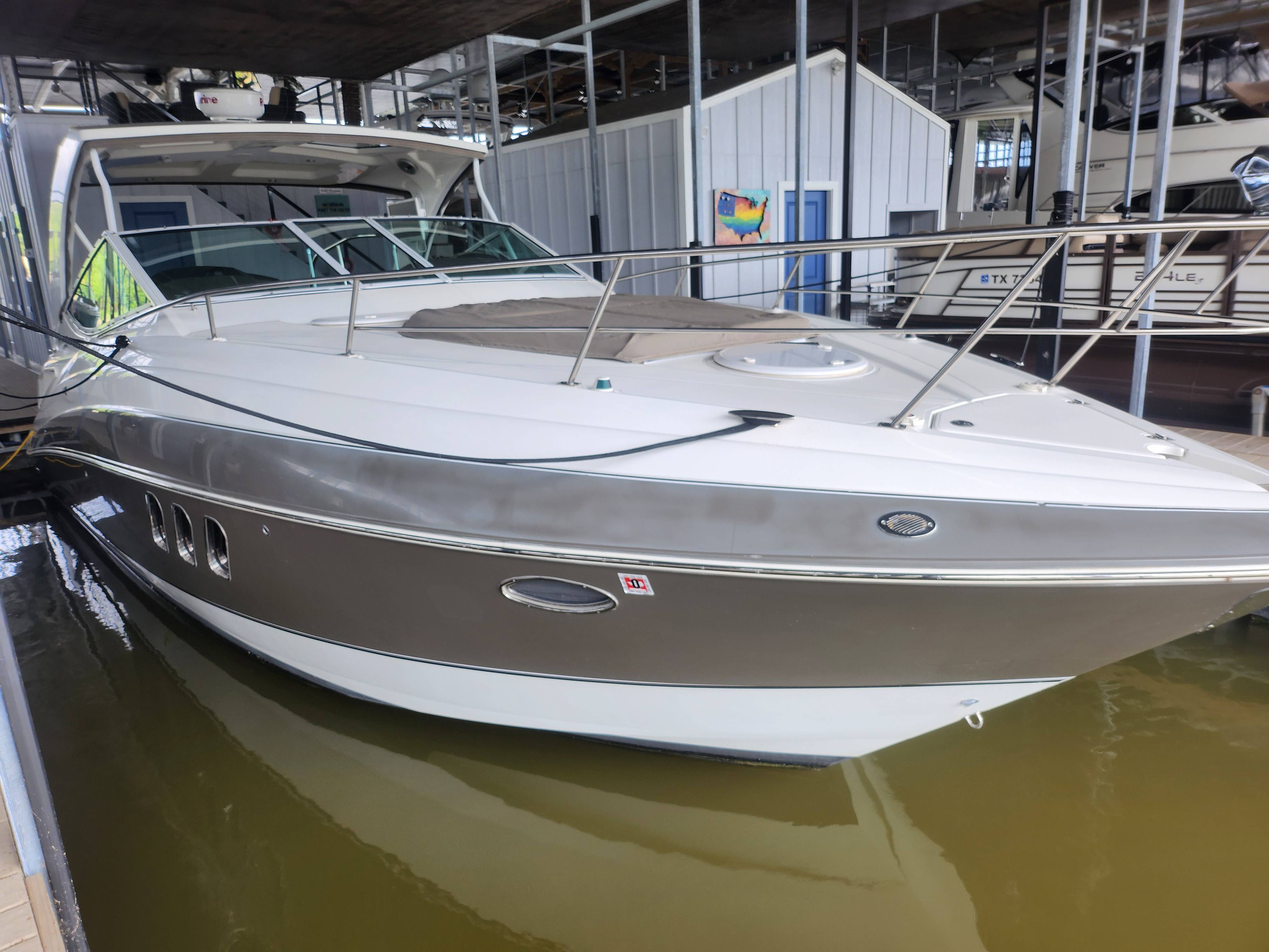 Offered in Cooperation with Plano Marine, Boat is located on Lake Texoma. 2014 Cruisers Yachts 350 Express You and all your loved ones are cordially invited to lead double lives aboard the incredible 350 Express. Because the surprising 350 is actually two yachts in one. It’s engineered for the swift acceleration and nimble handling of a pulse-quickening performance boat. And yet it provides a number of lavish features and extras you’ll only find in much larger yachts. Two exciting lifestyles in one model. Step aboard the 2014 Cruisers Yachts 350 Express, a masterpiece of design and engineering, offering the perfect blend of comfort, luxury, and performance. This stunning vessel, equipped with the state-of-the-art Axius system, promises unparalleled ease of handling and docking, making every voyage a breeze. Key Features: Axius Joystick Docking System: Effortless maneuvering and precise control, even in the tightest of marinas. Twin MerCruiser 8.2 MAG Engines: Powerful and reliable, ensuring smooth and efficient cruising. Spacious Cockpit: Ideal for entertaining, with ample seating, a wet bar, and a premium sound system. Luxurious Interior: Modern design featuring a fully-equipped galley, a cozy dinette, and a plush forward stateroom. Full-Size Head: Complete with shower, ensuring comfort on extended trips. Advanced Navigation Electronics: Including a GPS, radar, and VHF radio for safe and confident navigation. Whether you’re planning a day trip or a weekend getaway, the Cruisers Yachts 350 Express is your ultimate partner on the water. Its sleek lines and premium finishes will turn heads wherever you go, while its robust build and innovative features guarantee a smooth and enjoyable ride. Contact Us Today! Don’t miss the opportunity to own this exceptional yacht.