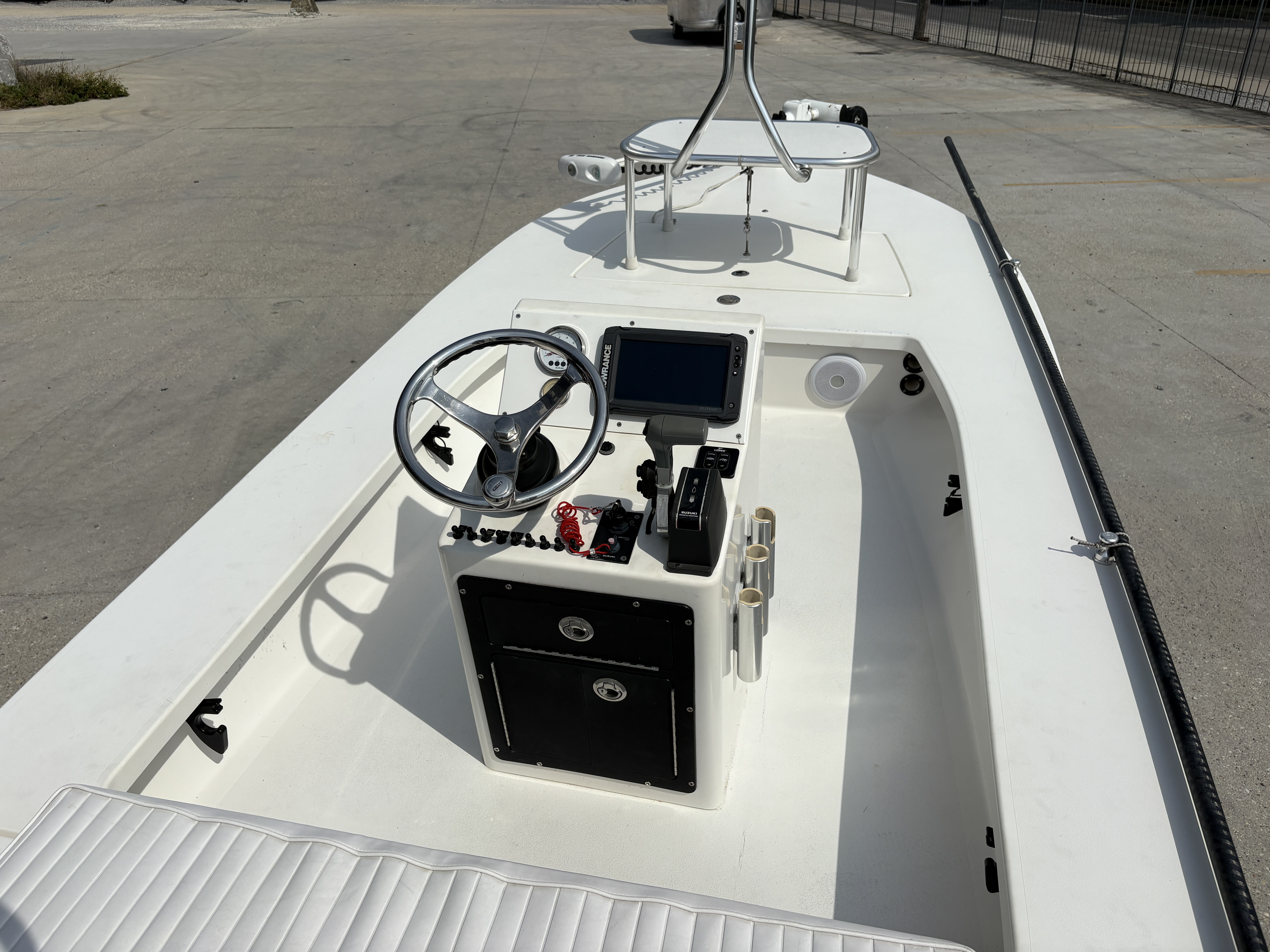 Step into skinny water fishing at its finest with this 2014 East Cape Vantage, powered by a reliable 2014 Suzuki 140. The Vantage is built to handle everything from technical poling in shallow flats to crossing choppier waters with ease, making it one of the most versatile technical skiffs on the market.