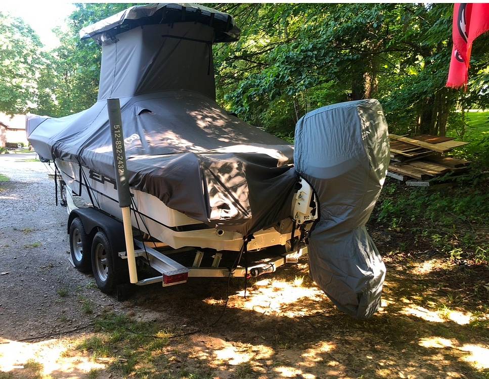 Boat also has a powder-coated T-top providing the shade to keep you on the water all day long. When storing this boat, included is a full custom-made canvas cover for the boat and motor.