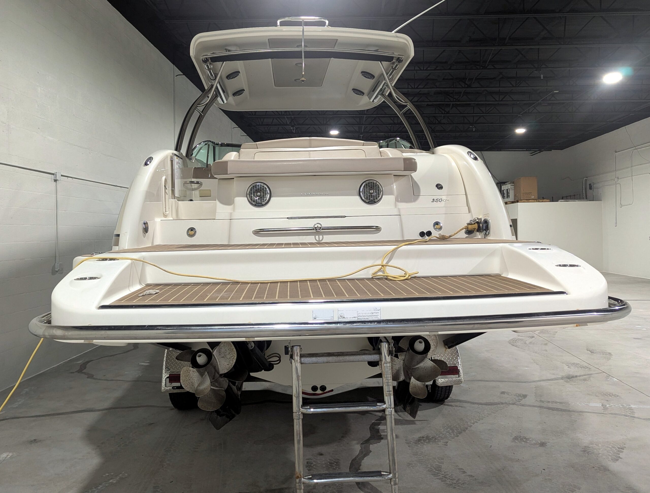 The 21° deep-V hull gives a smooth, stable ride and is perfectly complemented by powerful twin Merc or Volvo engine packages, delivering the swift, smooth performance you crave. This smartly balanced combination of bow and cabin space in the amenity-packed Formula 350 CBR takes you anywhere you want to go with speed, style and comfort.