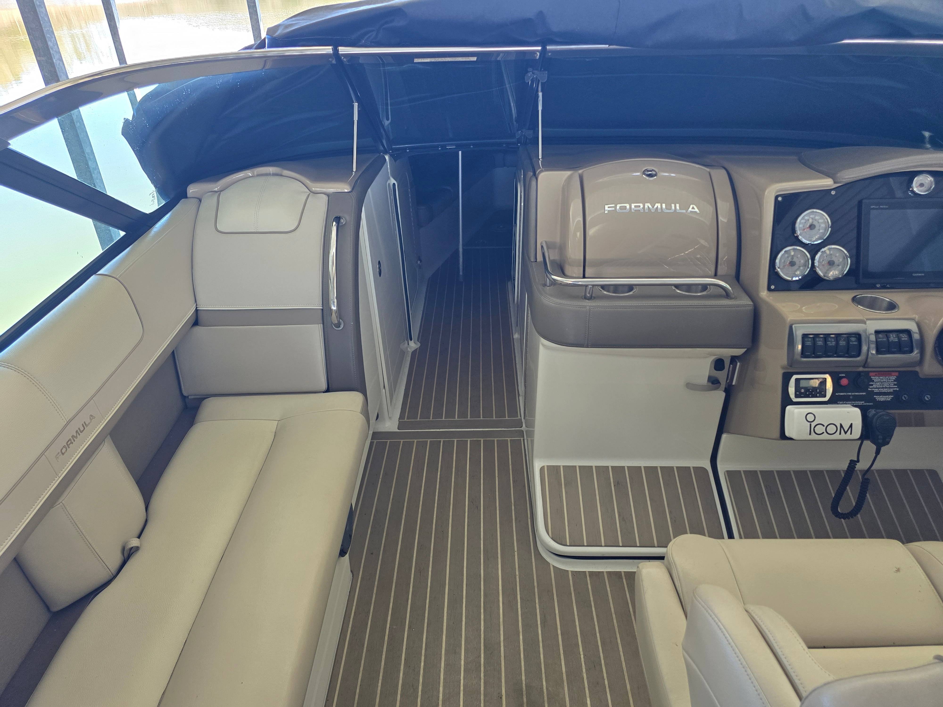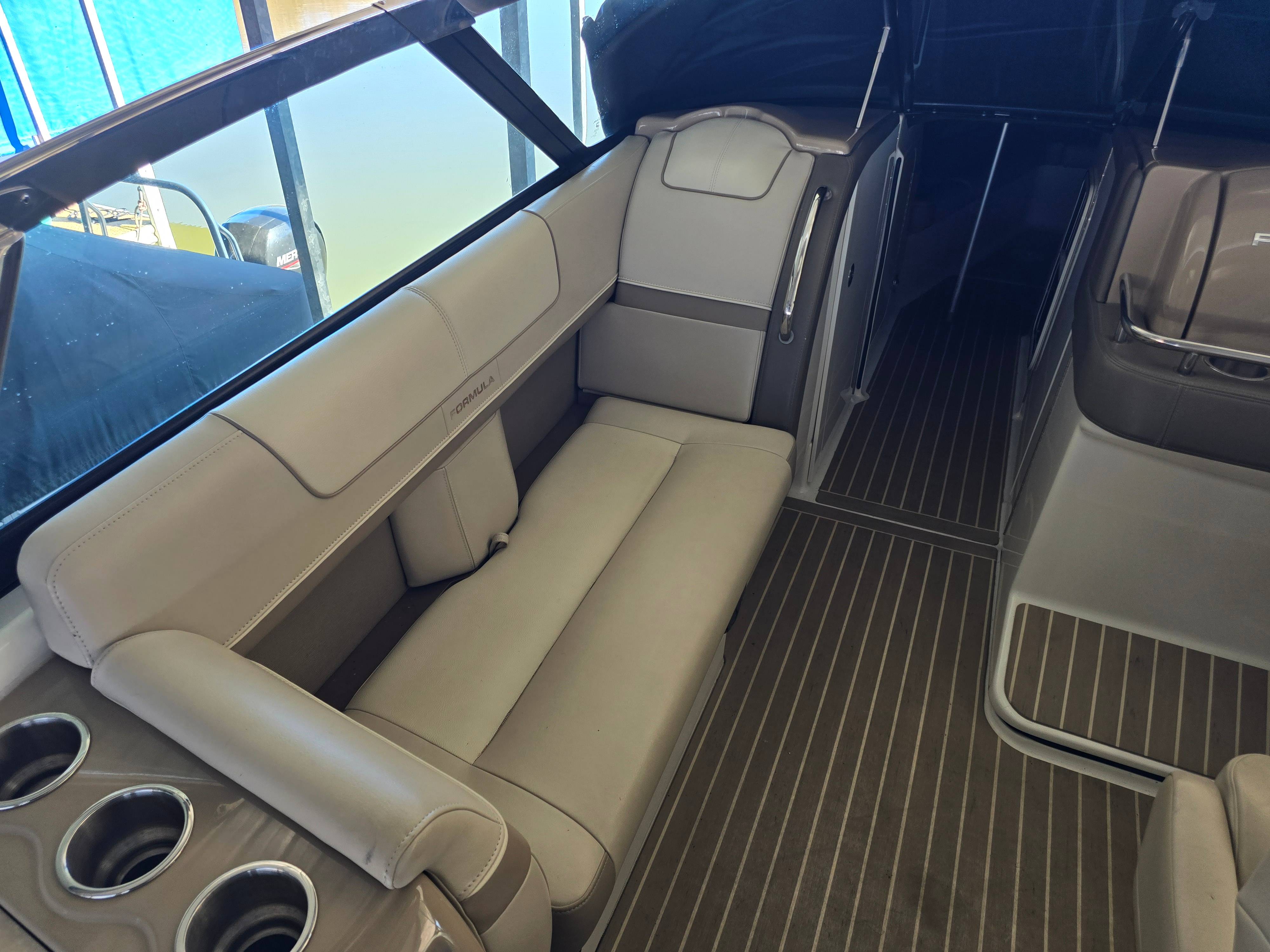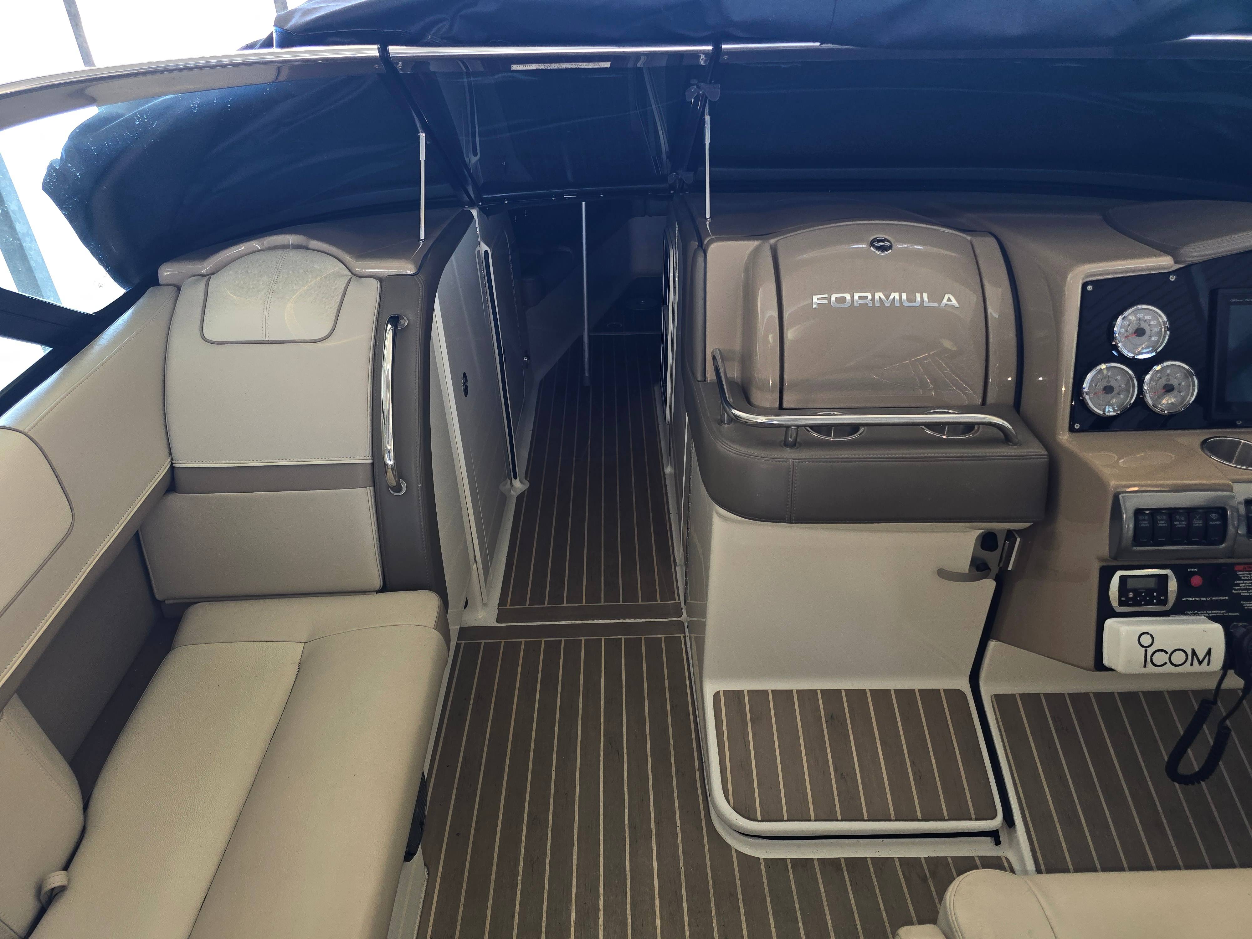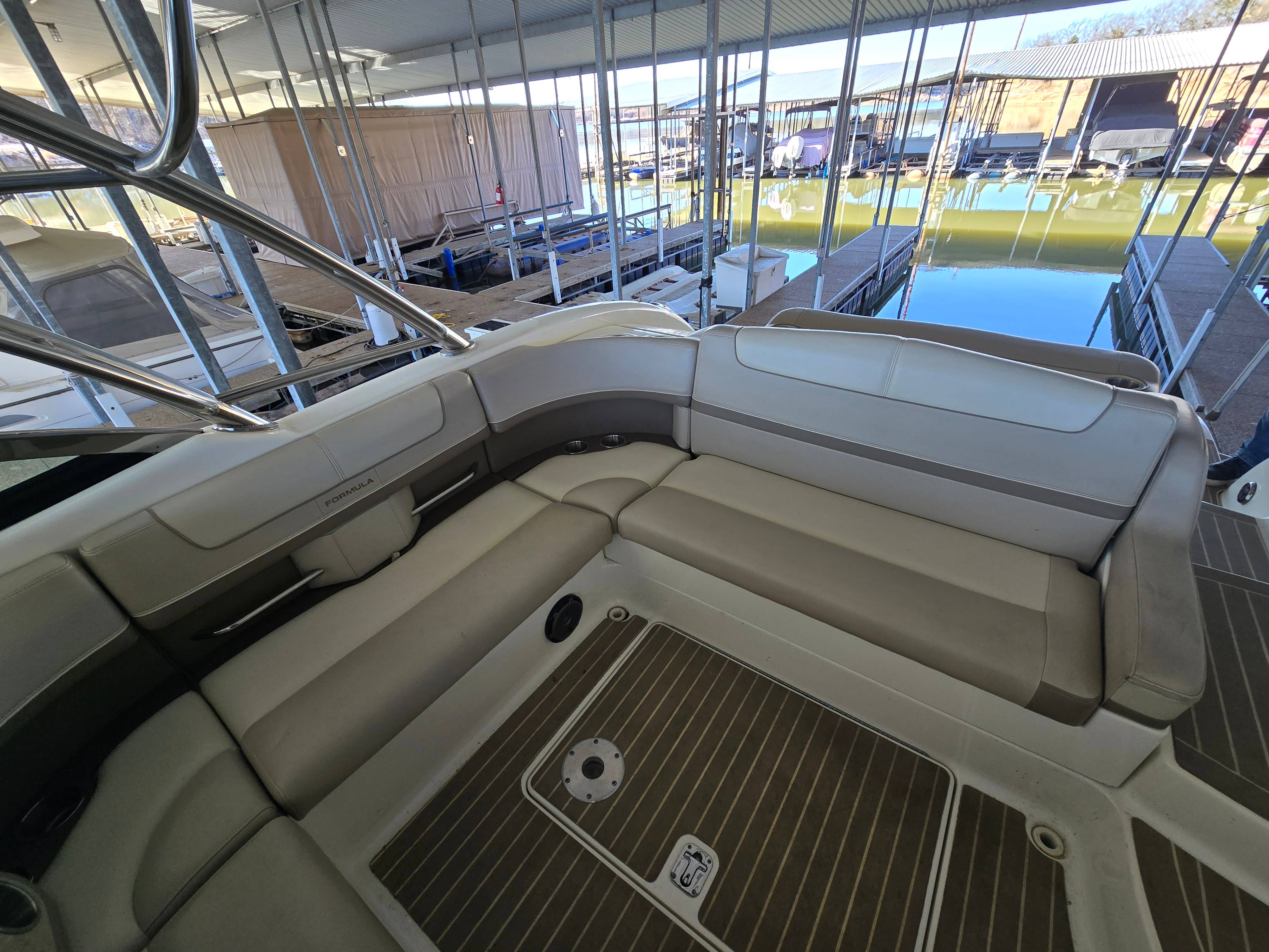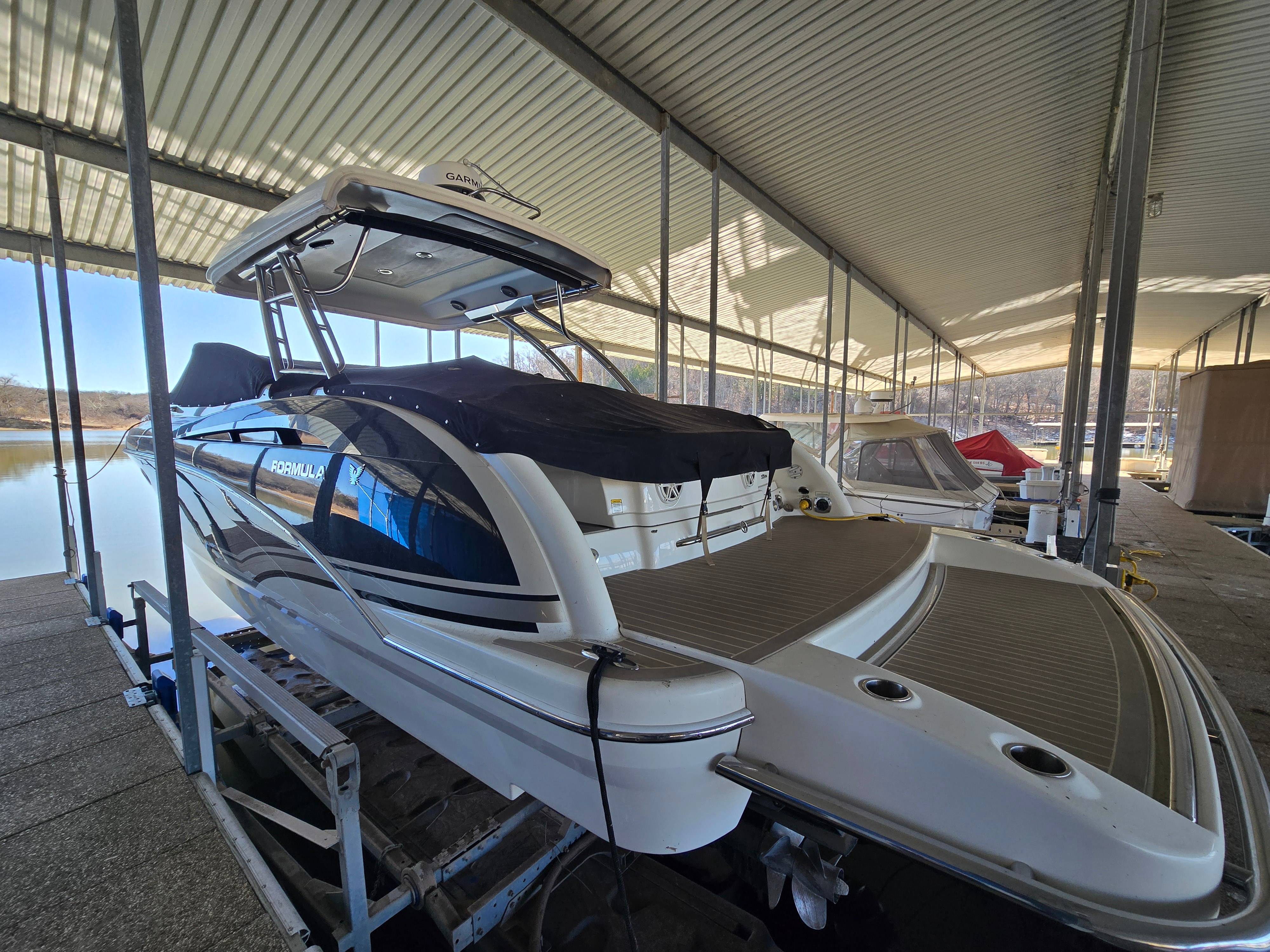 Formula has the best designed, best built pleasure boats on the water todat. Through 55 plus years of ongoing advancement in marine manufacturing, Formula's tradition of excellence continues to surpass expectations with the ultimate goal of providing consistently gratifying experiences on the water with family and friends Key Features May Include: Exterior NMMA Yacht Certification 10-year Structural Warranty Transferable 5-Year Formula Guard® Limited Protection Plan Imron® graphic A, B or C w/cockpit accent striping Pressure-treated Perma Panel™ structural hull matrix Foam-filled hull cavities Chemically bonded & thru-bolted deck-to-hull joint Heavy-duty PVC gunwale w/stainless steel insert Concealed fiberglass anchor locker Offshore bow rail Stainless steel hardware & 316L stainless steel welded rails Ten custom Formula logo-cast cleats Stainless steel fuel fill w/integral vent Polished stainless steel vent trim Two polished Bomar® cabin venting hatches w/screens Four polished stainless steel portlights w/screens Nonskid foredeck center walkway Continuous tinted, tempered curved-glass windshield w/stainless steel top frame & center walk-thru Windshield wiper Air horn Starboard transom trunk storage & two fenders Transom shower w/hot & cold controls Cockpit Continuous molded deck & cockpit liner Molded in-dash deck access steps w/316L stainless steel handrail Dash panels w/silver burl or wood finish & brushed metallic finish Complete Livorsi® illuminated instrumentation, domed w/chrome bezels Dash panel-mounted Ritchie® compass Digital depth sounder Garmin® GPS navigational system w/color chartplotter Livorsi chromed shifters/throttles w/in-handle outdrive trim switch Safety ignition stop switches w/tethers Dino™ tilt steering wheel w/silver burl or wood & brushed metallic insets Lockable under-dash storage compartment Bennett® trim tab switches & indicators Fingertip outdrive trim/trailer switches Auxiliary 12V outlet iPod™/MP3 port Port lounge w/line storage Fire extinguisher Battery parallel emergency switch Custom patterned cockpit carpet Cabin Sliding/locking cabin door w/screen Woodgrain-finish entry steps Woodgrain-finish flooring throughout cabin Custom décor pillows & draperies Hanging locker Demand water system Fire extinguisher 120V water heater w/heat exchanger Carbon monoxide detector Automatic cabin bilge pump w/high water alarm Aft cabin stateroom/full-size berth w/Sensus® memory foam mattress & full-width storage Engine Twin engine installation Motorized hatch lift Courtesy lighting Fume detector Automatic fire extinguisher Thru-bolted engine mounts Starting & auxillary marine batteries w/retainers 60-amp battery charger Active & passive galvanic corrosion protection systems Bilge blowers Automatic bilge pump Bilge high water alarm