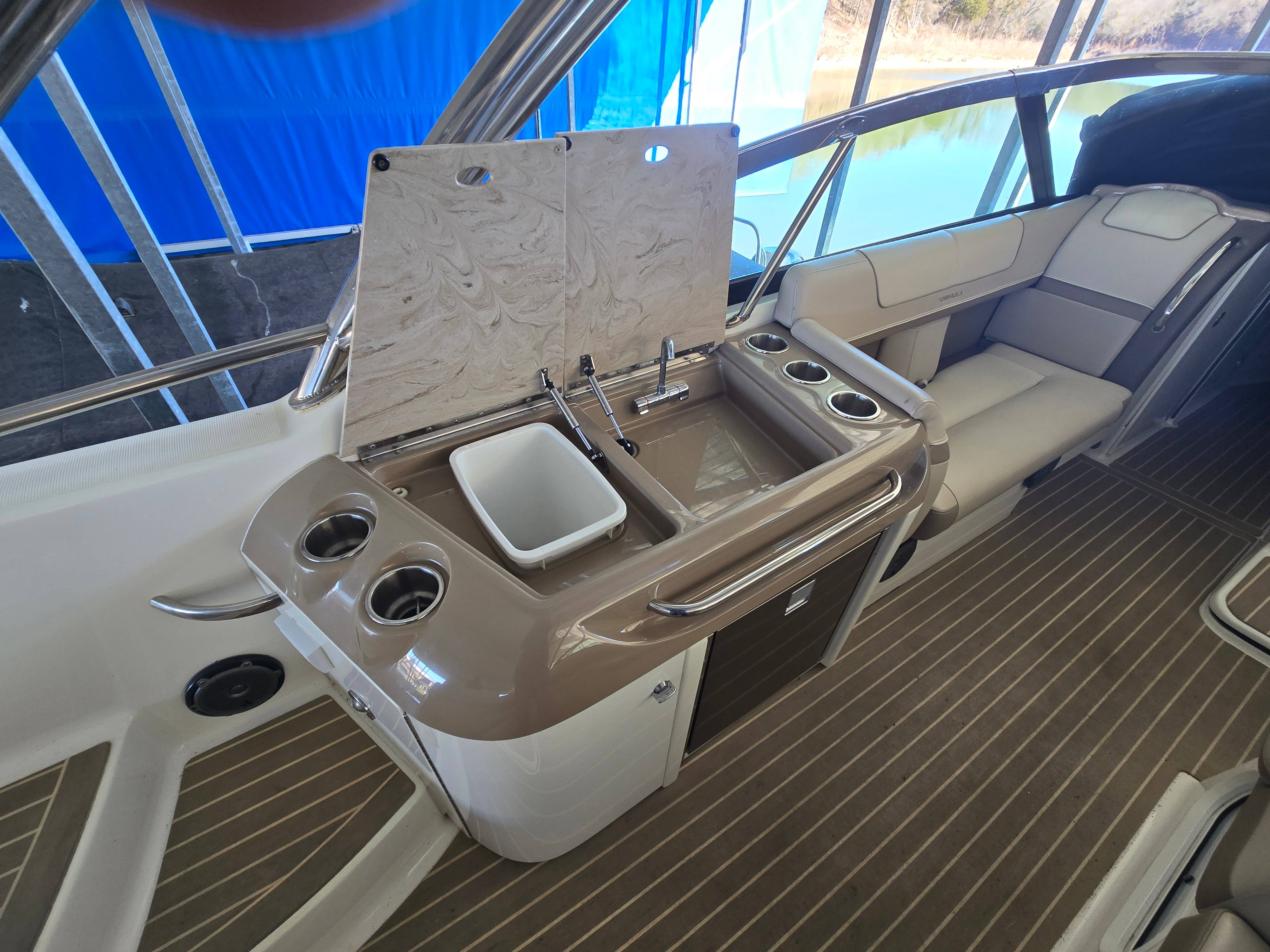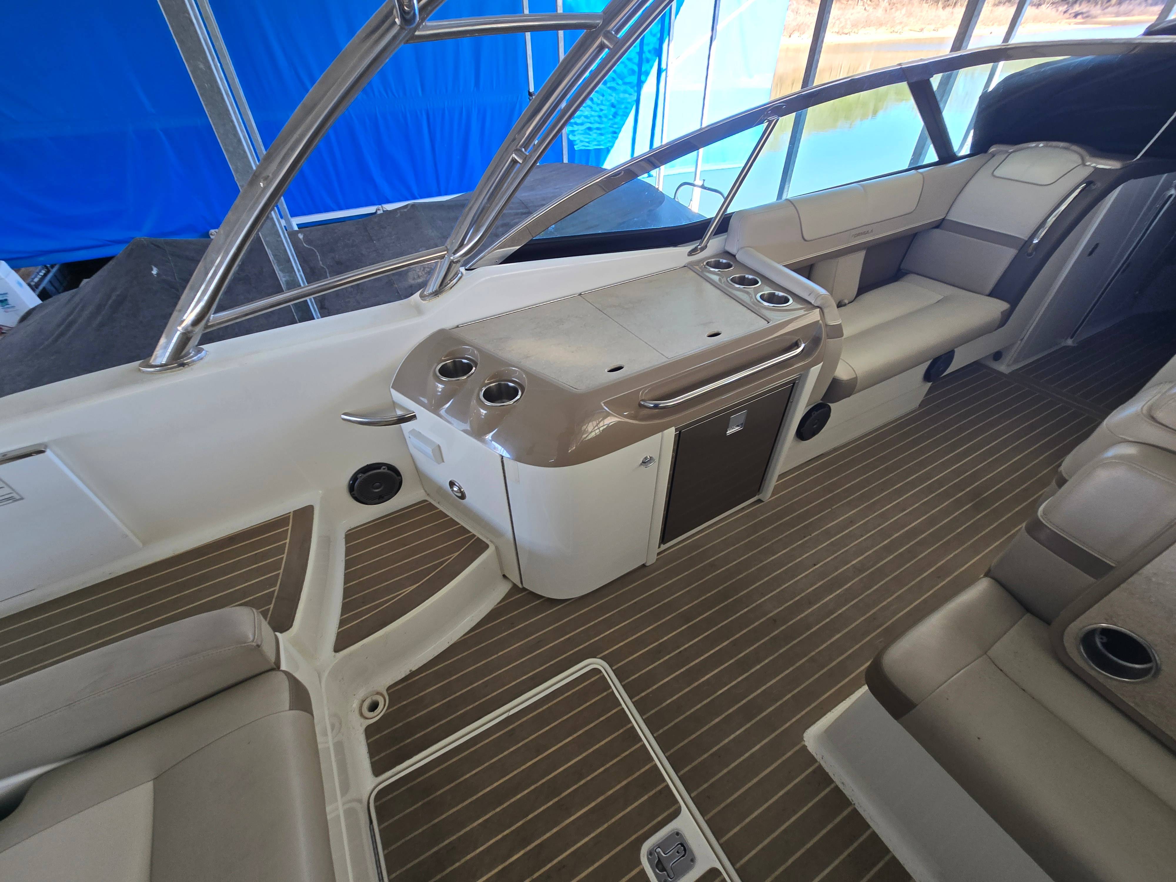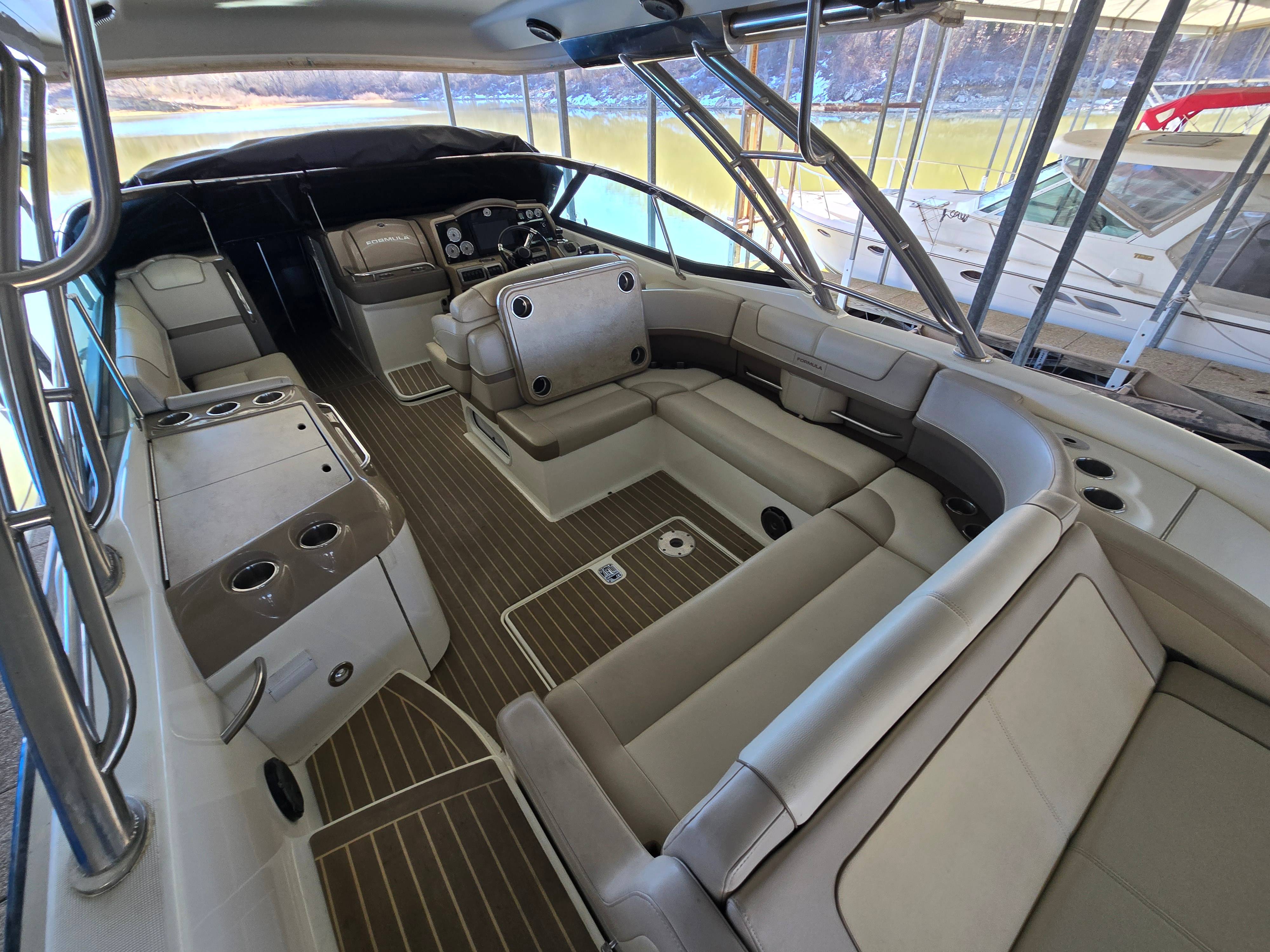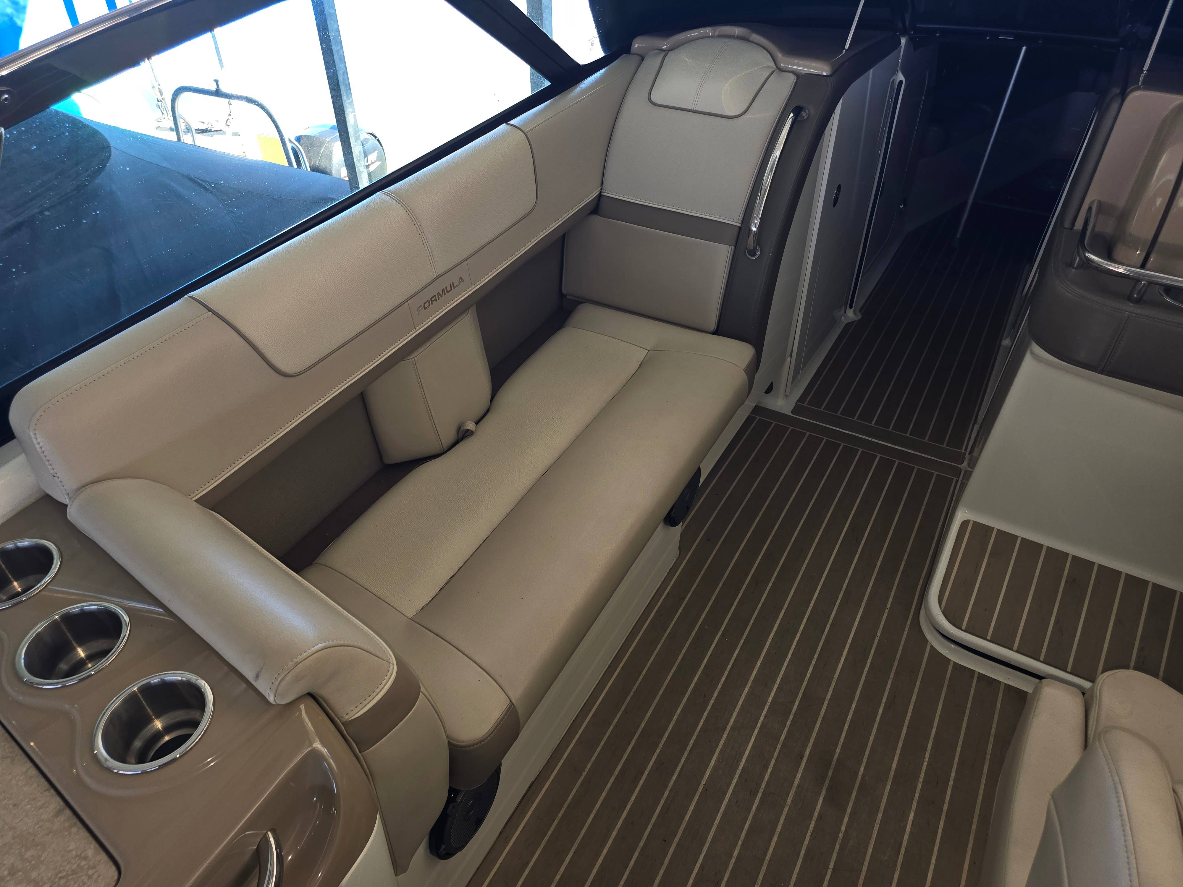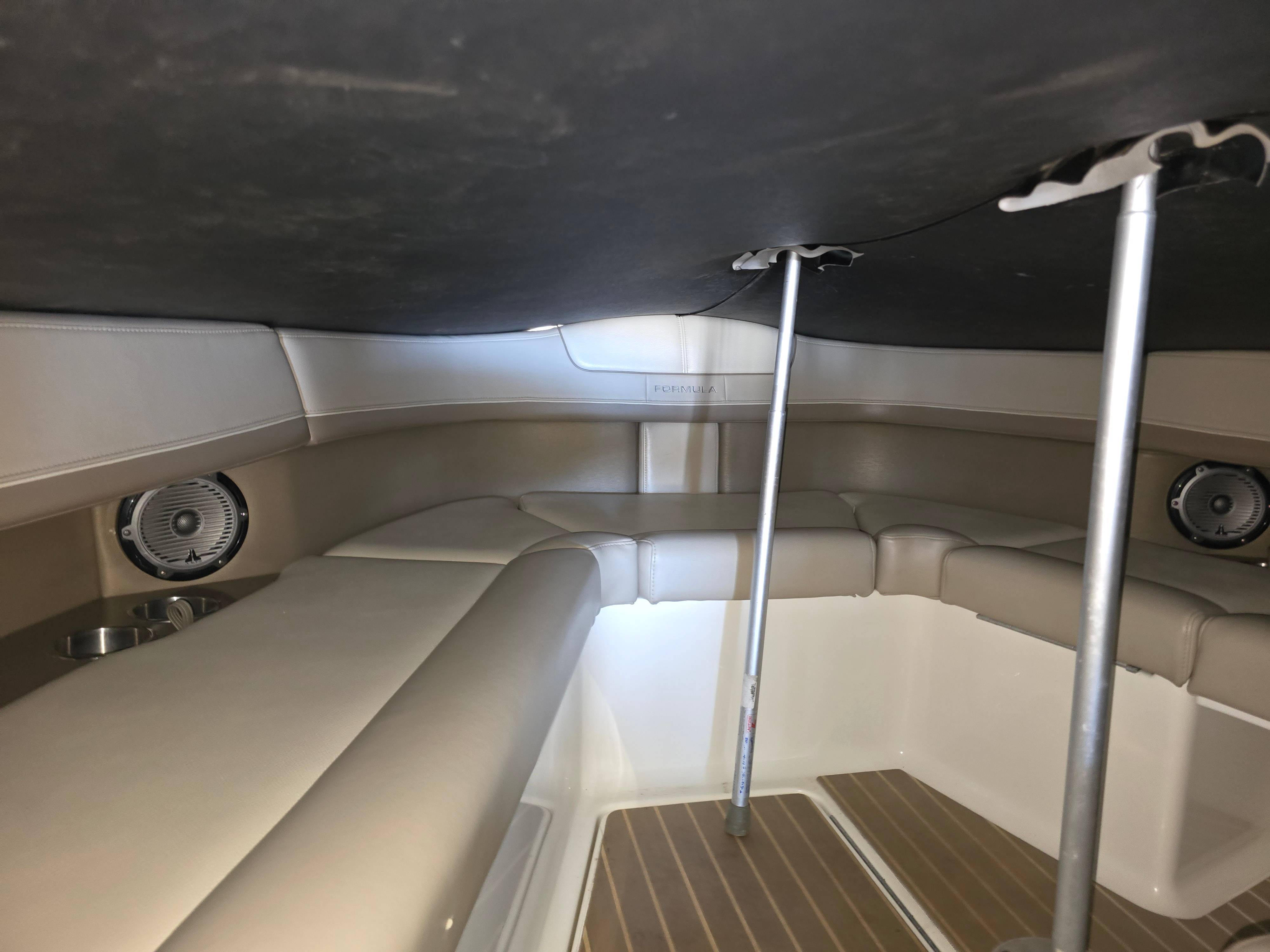 Formula has the best designed, best built pleasure boats on the water todat. Through 55 plus years of ongoing advancement in marine manufacturing, Formula's tradition of excellence continues to surpass expectations with the ultimate goal of providing consistently gratifying experiences on the water with family and friends Key Features May Include: Exterior NMMA Yacht Certification 10-year Structural Warranty Transferable 5-Year Formula Guard® Limited Protection Plan Imron® graphic A, B or C w/cockpit accent striping Pressure-treated Perma Panel™ structural hull matrix Foam-filled hull cavities Chemically bonded & thru-bolted deck-to-hull joint Heavy-duty PVC gunwale w/stainless steel insert Concealed fiberglass anchor locker Offshore bow rail Stainless steel hardware & 316L stainless steel welded rails Ten custom Formula logo-cast cleats Stainless steel fuel fill w/integral vent Polished stainless steel vent trim Two polished Bomar® cabin venting hatches w/screens Four polished stainless steel portlights w/screens Nonskid foredeck center walkway Continuous tinted, tempered curved-glass windshield w/stainless steel top frame & center walk-thru Windshield wiper Air horn Starboard transom trunk storage & two fenders Transom shower w/hot & cold controls Cockpit Continuous molded deck & cockpit liner Molded in-dash deck access steps w/316L stainless steel handrail Dash panels w/silver burl or wood finish & brushed metallic finish Complete Livorsi® illuminated instrumentation, domed w/chrome bezels Dash panel-mounted Ritchie® compass Digital depth sounder Garmin® GPS navigational system w/color chartplotter Livorsi chromed shifters/throttles w/in-handle outdrive trim switch Safety ignition stop switches w/tethers Dino™ tilt steering wheel w/silver burl or wood & brushed metallic insets Lockable under-dash storage compartment Bennett® trim tab switches & indicators Fingertip outdrive trim/trailer switches Auxiliary 12V outlet iPod™/MP3 port Port lounge w/line storage Fire extinguisher Battery parallel emergency switch Custom patterned cockpit carpet Cabin Sliding/locking cabin door w/screen Woodgrain-finish entry steps Woodgrain-finish flooring throughout cabin Custom décor pillows & draperies Hanging locker Demand water system Fire extinguisher 120V water heater w/heat exchanger Carbon monoxide detector Automatic cabin bilge pump w/high water alarm Aft cabin stateroom/full-size berth w/Sensus® memory foam mattress & full-width storage Engine Twin engine installation Motorized hatch lift Courtesy lighting Fume detector Automatic fire extinguisher Thru-bolted engine mounts Starting & auxillary marine batteries w/retainers 60-amp battery charger Active & passive galvanic corrosion protection systems Bilge blowers Automatic bilge pump Bilge high water alarm