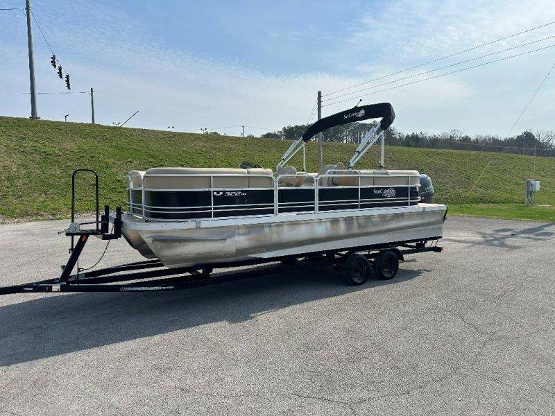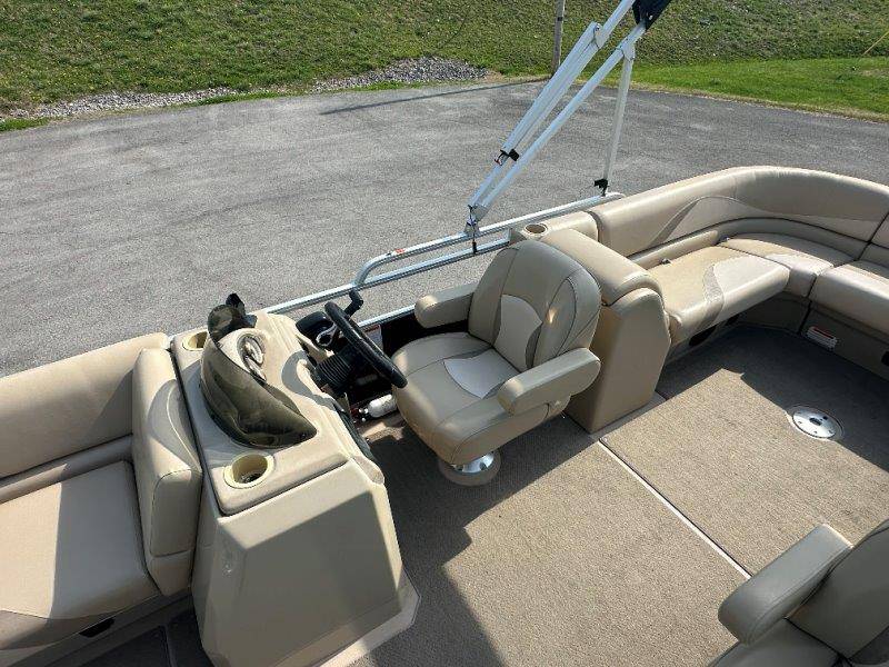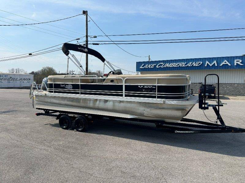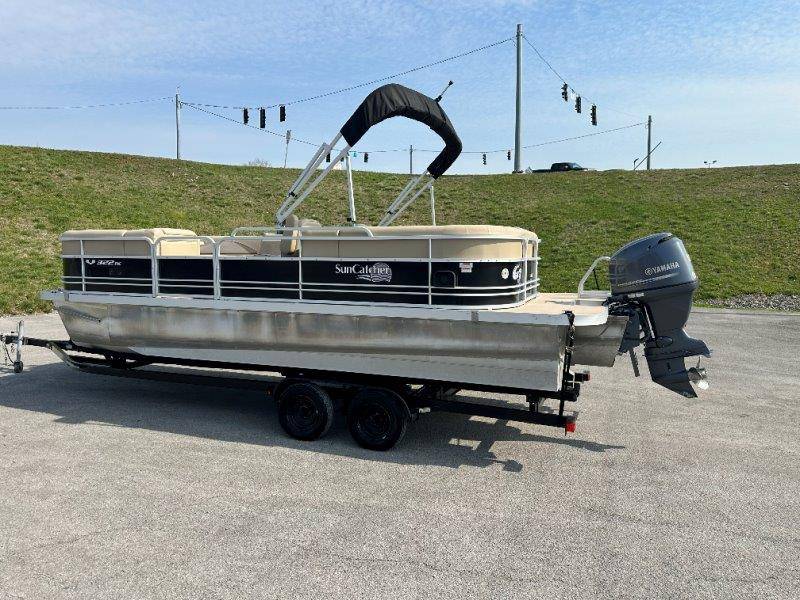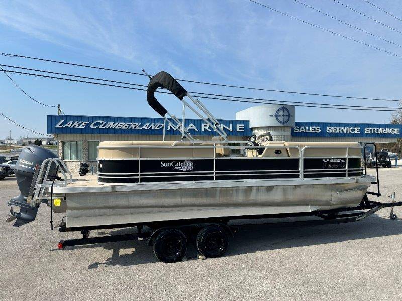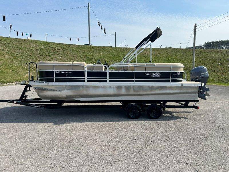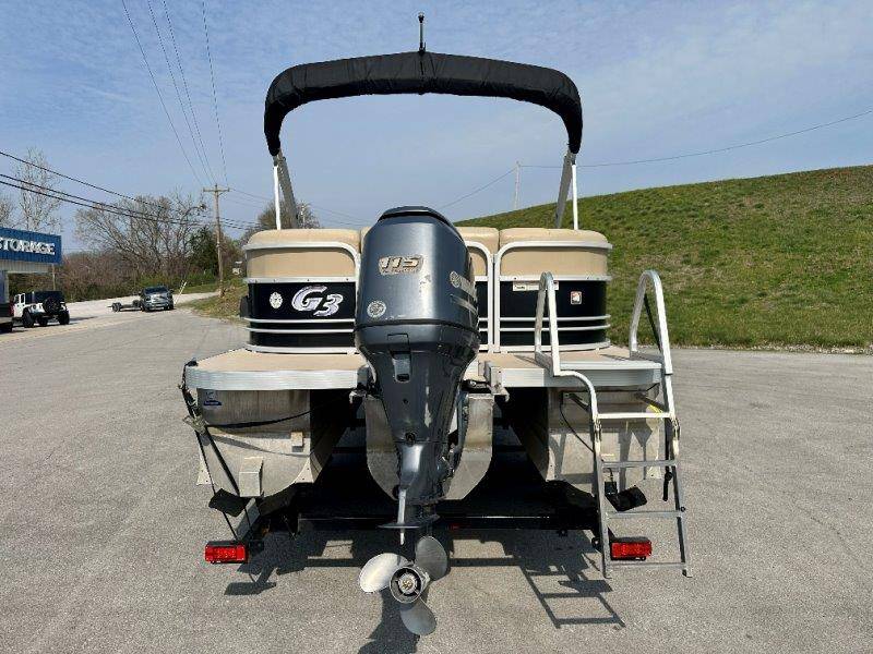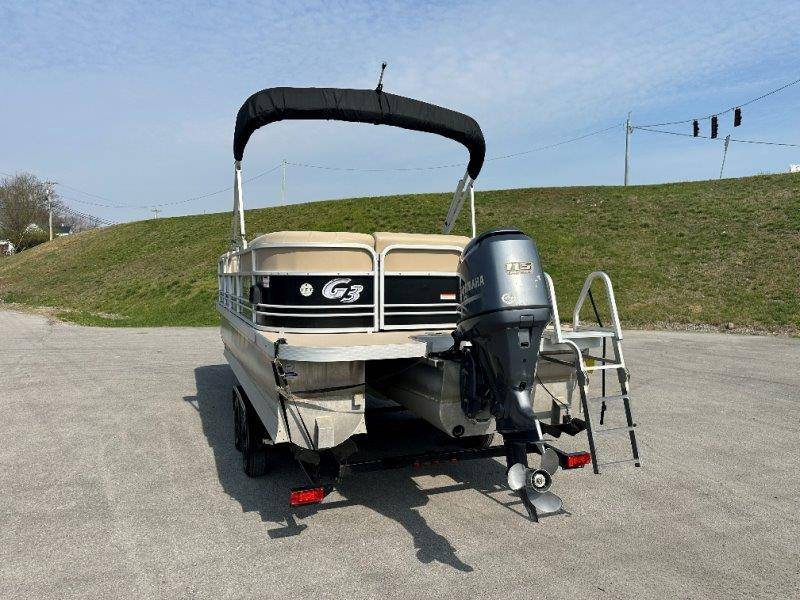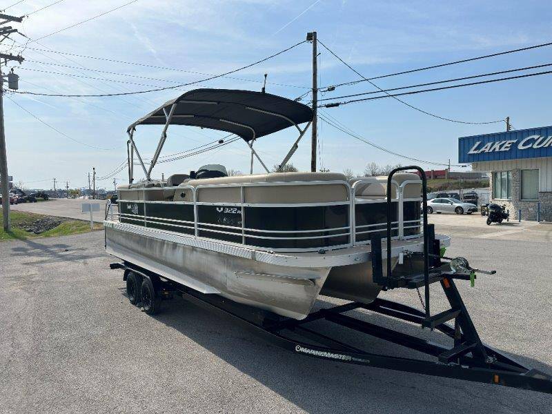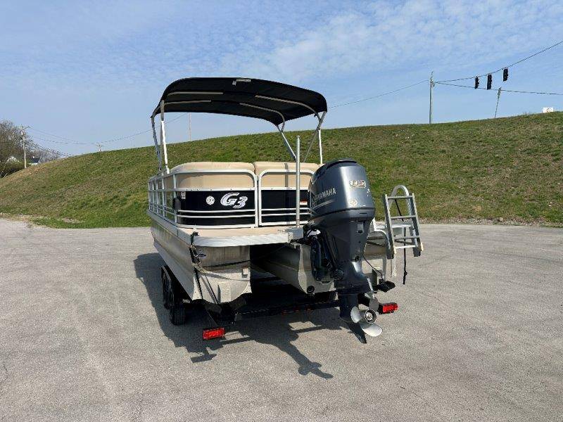 2014 G3 X322RC Yamaha F115LA Engine Length: 22'6" Beam: 8'6" Fuel Capacity: 37gal Capacity: 11-12 Person 3 25" Diameter Pontoons w/ Lifting Strakes and Performance Shield 2 Front-Facing Bow Lounges and 2 Rear-Facing Stern Lounges SeaStar Hydraulic Steering Sony Bluetooth Stereo Garmin Echo 100/200 FishFinder Pop-Up Changing Room 4-Step Boarding Ladder Marine Master Trailer