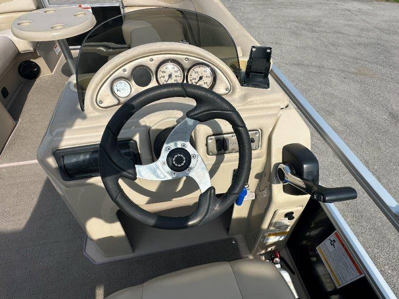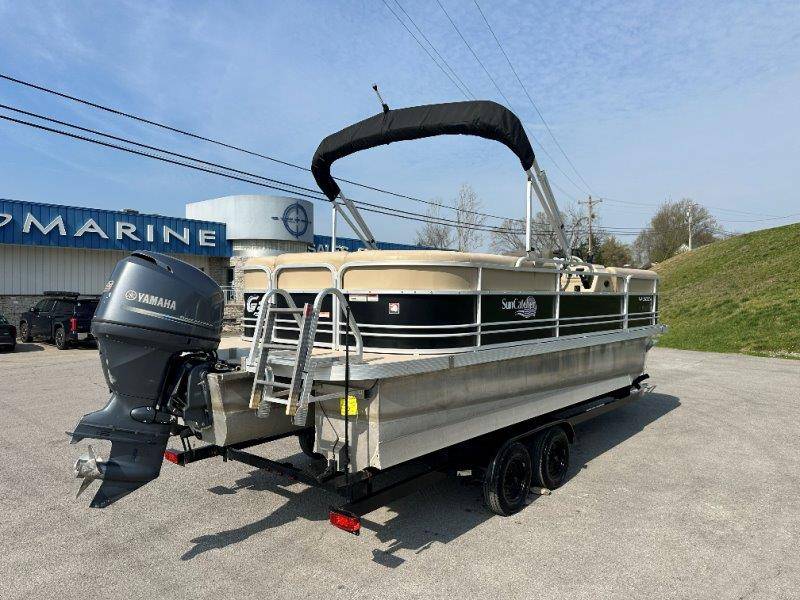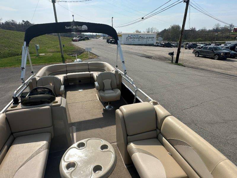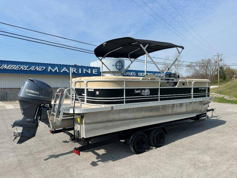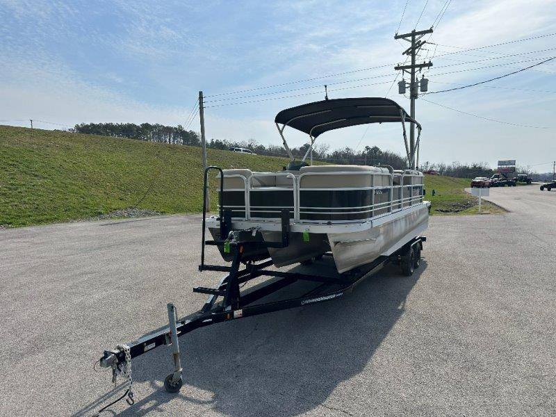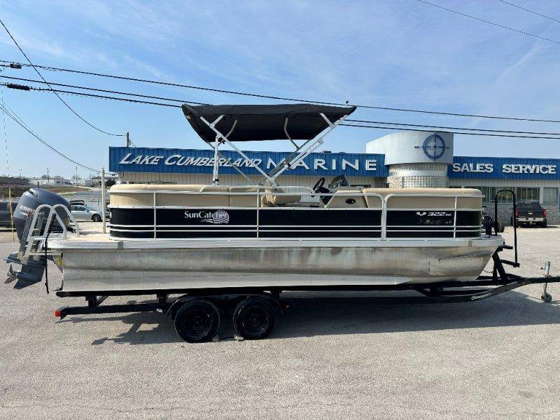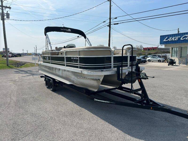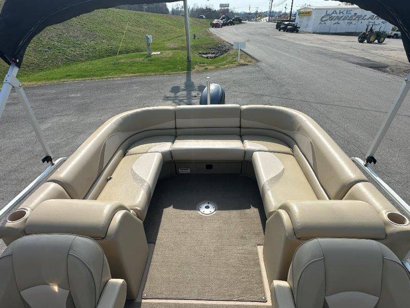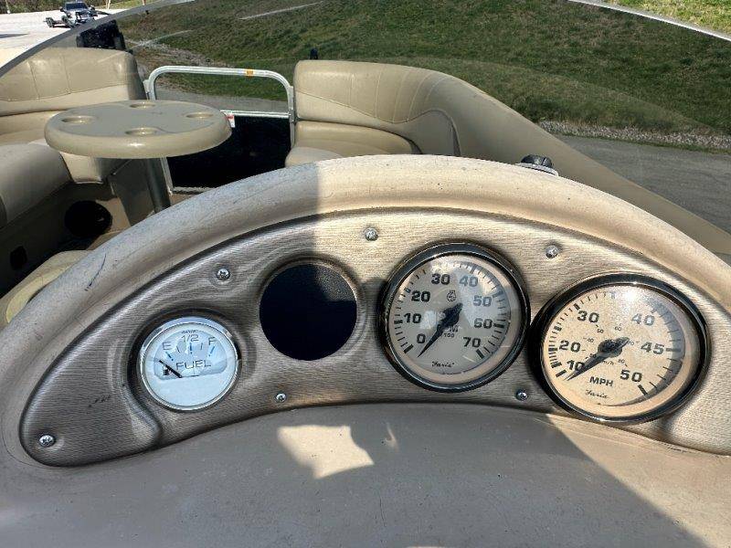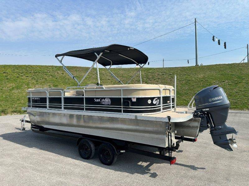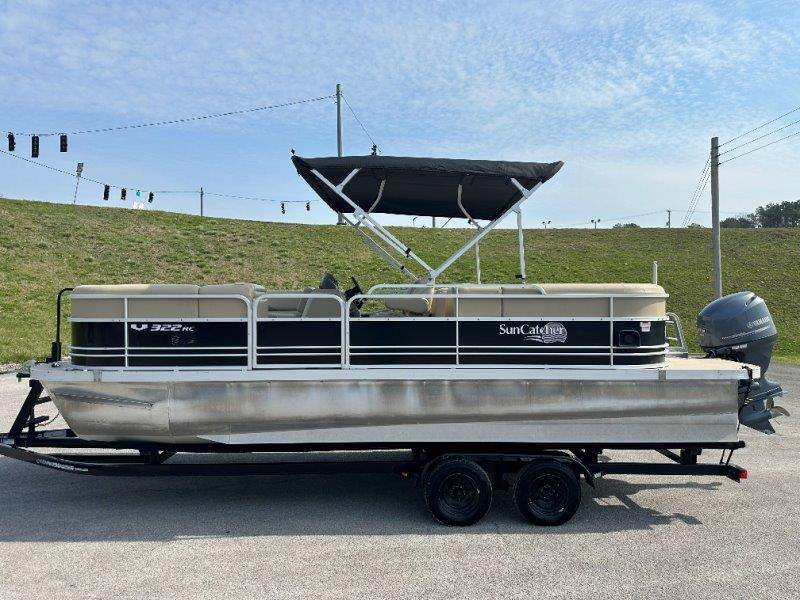 2014 G3 X322RC Yamaha F115LA Engine Length: 22'6" Beam: 8'6" Fuel Capacity: 37gal Capacity: 11-12 Person 3 25" Diameter Pontoons w/ Lifting Strakes and Performance Shield 2 Front-Facing Bow Lounges and 2 Rear-Facing Stern Lounges SeaStar Hydraulic Steering Sony Bluetooth Stereo Garmin Echo 100/200 FishFinder Pop-Up Changing Room 4-Step Boarding Ladder Marine Master Trailer