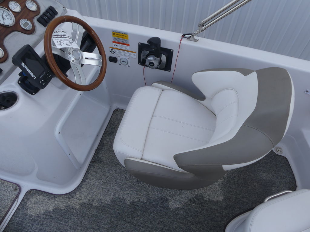 There’s no limit to the fun aboard the 20-foot DS 205, from fishing and tubing to skiing or socializing. This deck boat abounds with practical features and pampering touches -- like a padded sun lounge and Bimini top. Roomy enough to host a party.