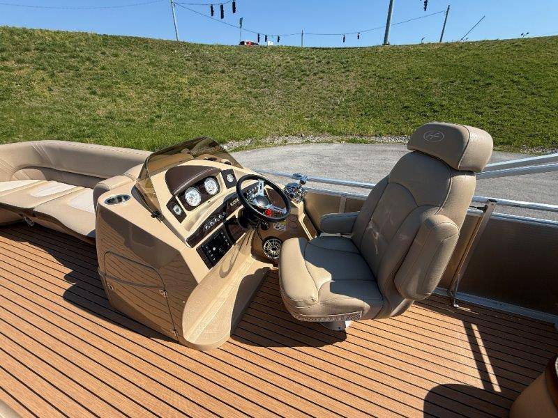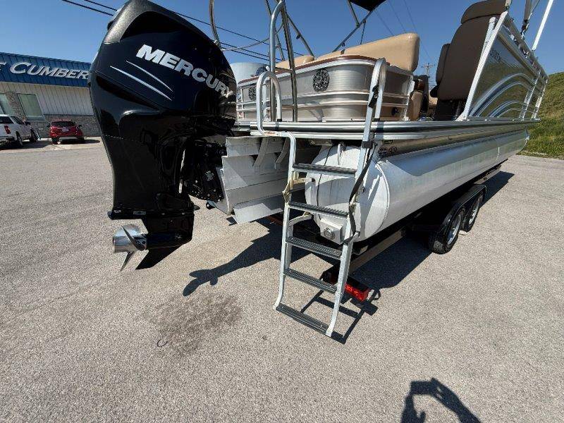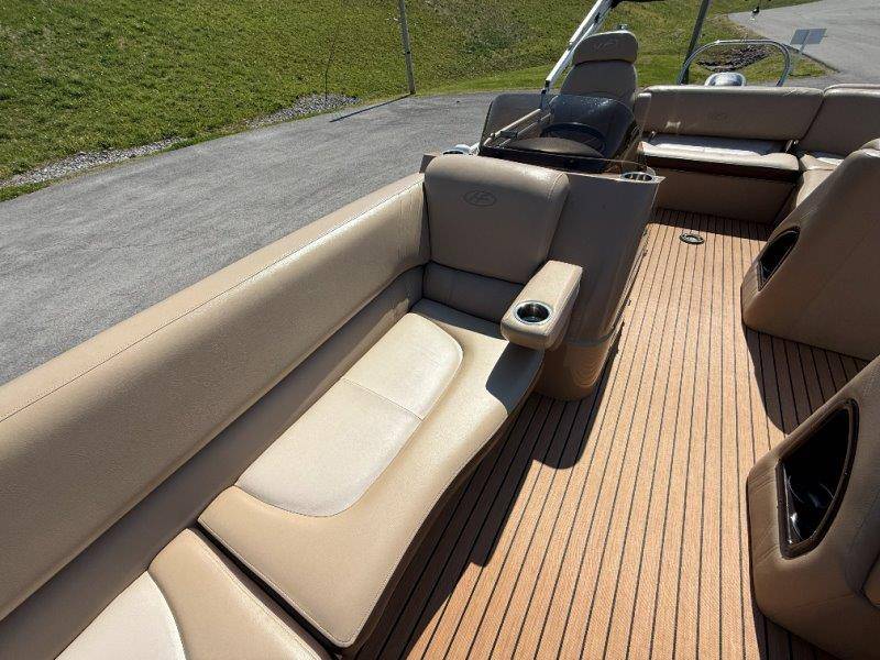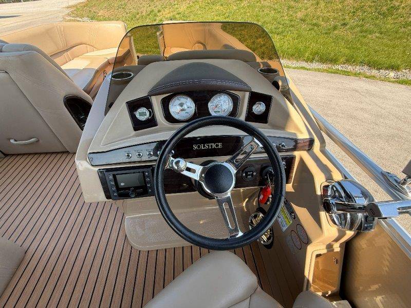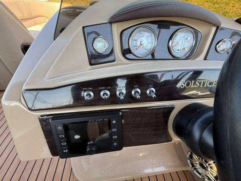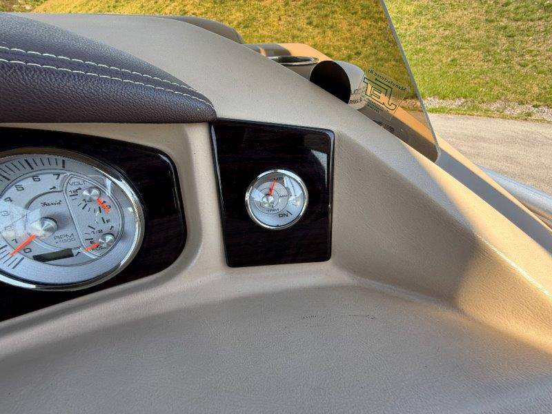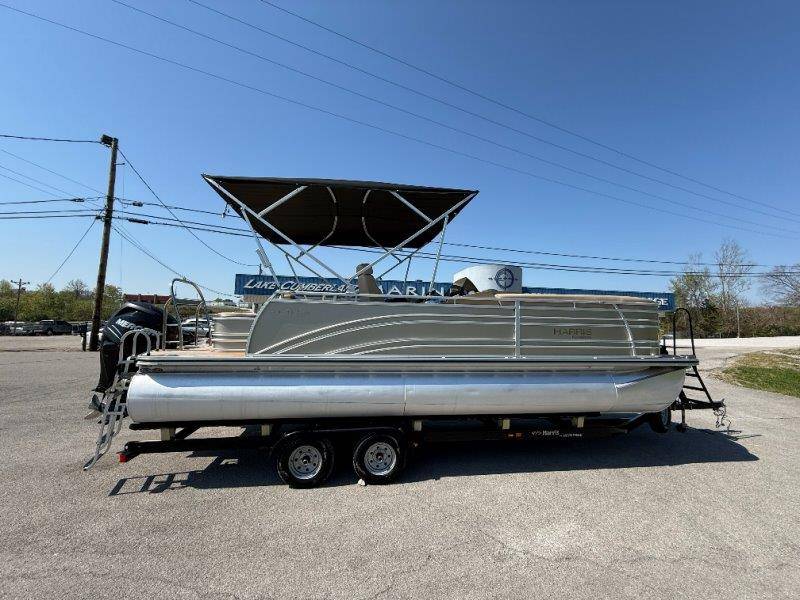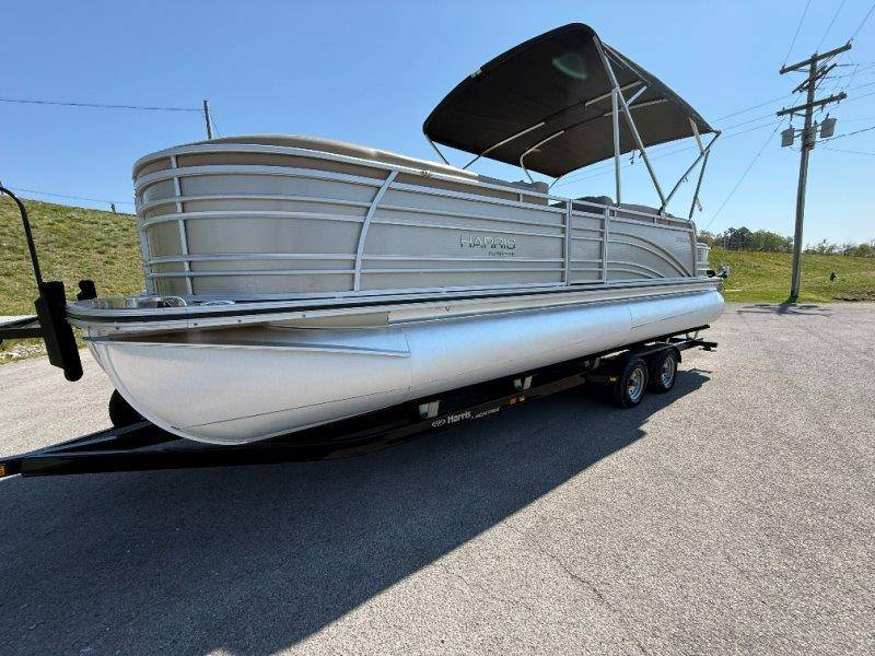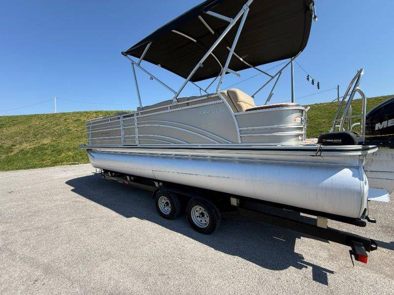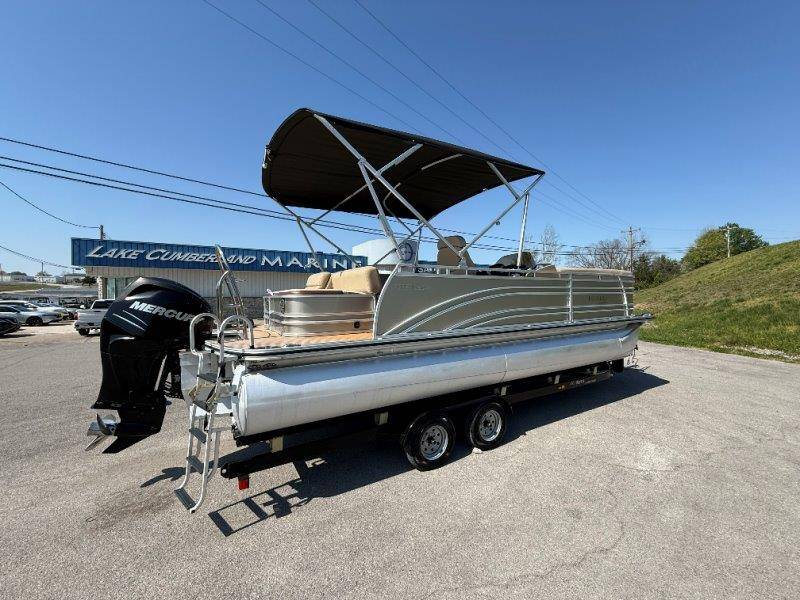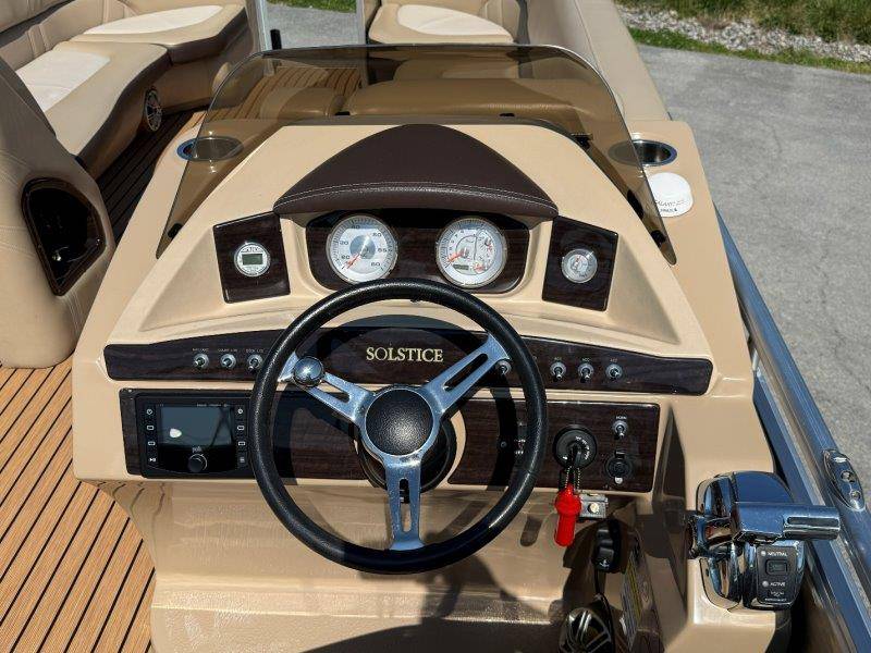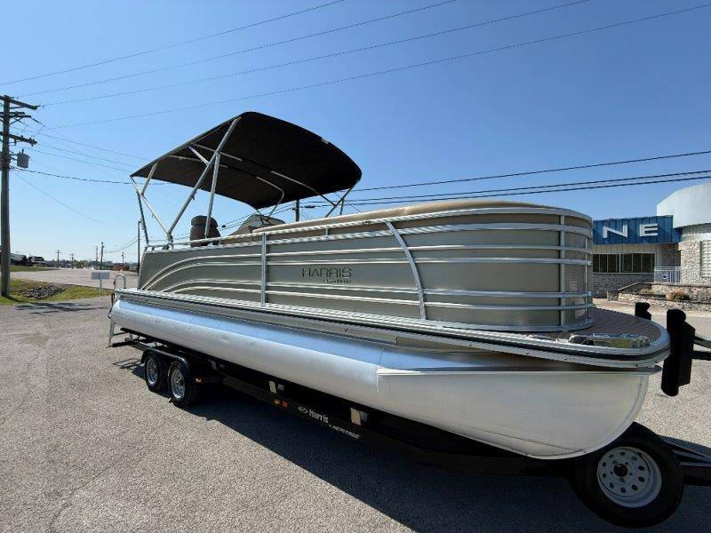 2014 Harris Solstice 240 Mercury 200 Verado Silver w/ Tan Interior Engine fully serviced, Oil Change, Fuel Filters, Impeller, Spark Plugs and lower unit gear lube. Stainless Prop Rear Boarding Ladder Ski Tow Bar Bimini Top with Boot Dual Batteries with Selector Switch Dinette Table Flip Up Changing Area Polk Bluetooth Head Unit Rear Flip Lounger RPM, Volt, Fuel, MPH, & Trim Gauges Depth Finder Oversized Captains Helm Seat Interior Courtesy Lighting Docking Lights 2014 Heritage Dual Axle Trailer with Spare $44,999 Plus Sales Tax Financing Available