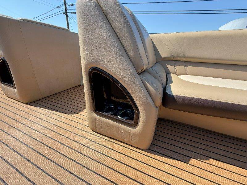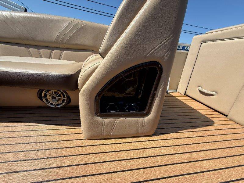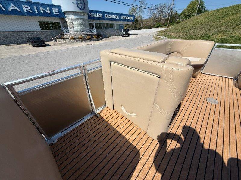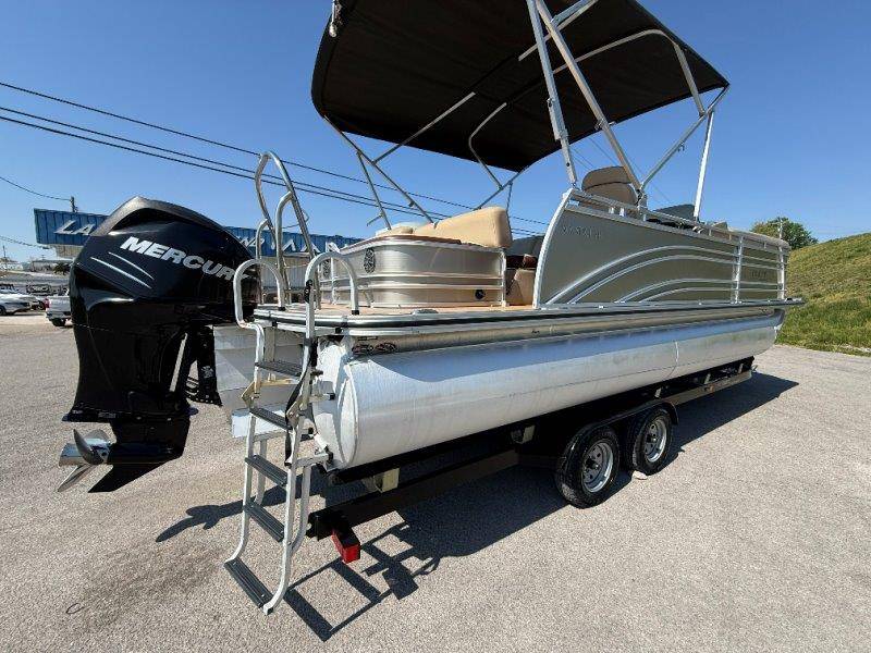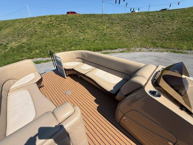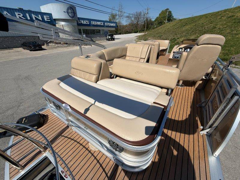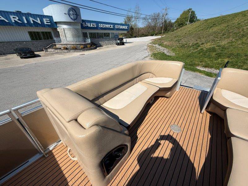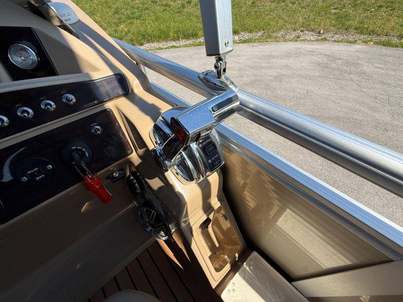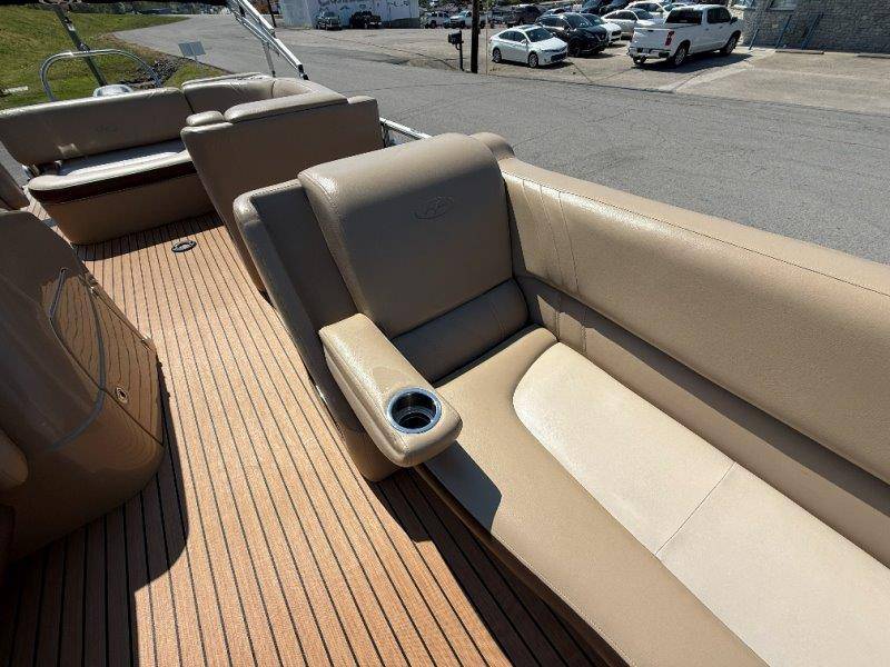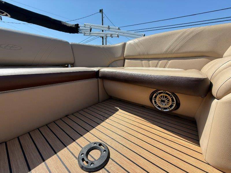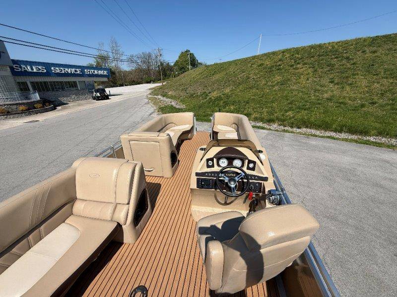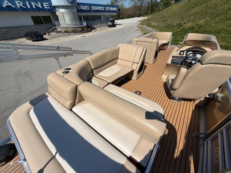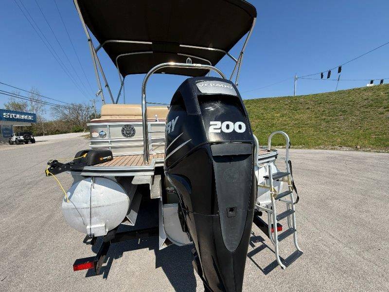 2014 Harris Solstice 240 Mercury 200 Verado Silver w/ Tan Interior Engine fully serviced, Oil Change, Fuel Filters, Impeller, Spark Plugs and lower unit gear lube. Stainless Prop Rear Boarding Ladder Ski Tow Bar Bimini Top with Boot Dual Batteries with Selector Switch Dinette Table Flip Up Changing Area Polk Bluetooth Head Unit Rear Flip Lounger RPM, Volt, Fuel, MPH, & Trim Gauges Depth Finder Oversized Captains Helm Seat Interior Courtesy Lighting Docking Lights 2014 Heritage Dual Axle Trailer with Spare $44,999 Plus Sales Tax Financing Available