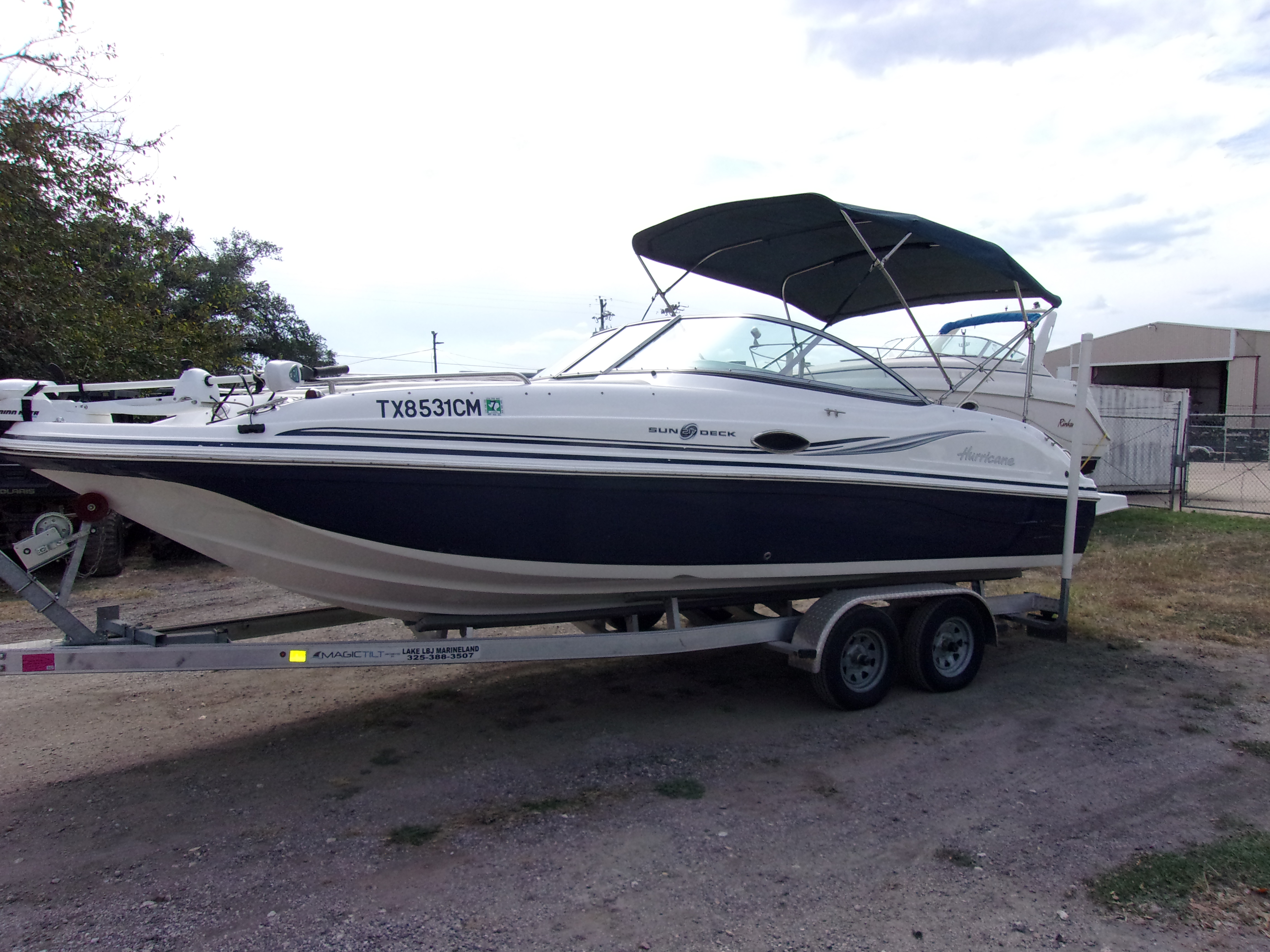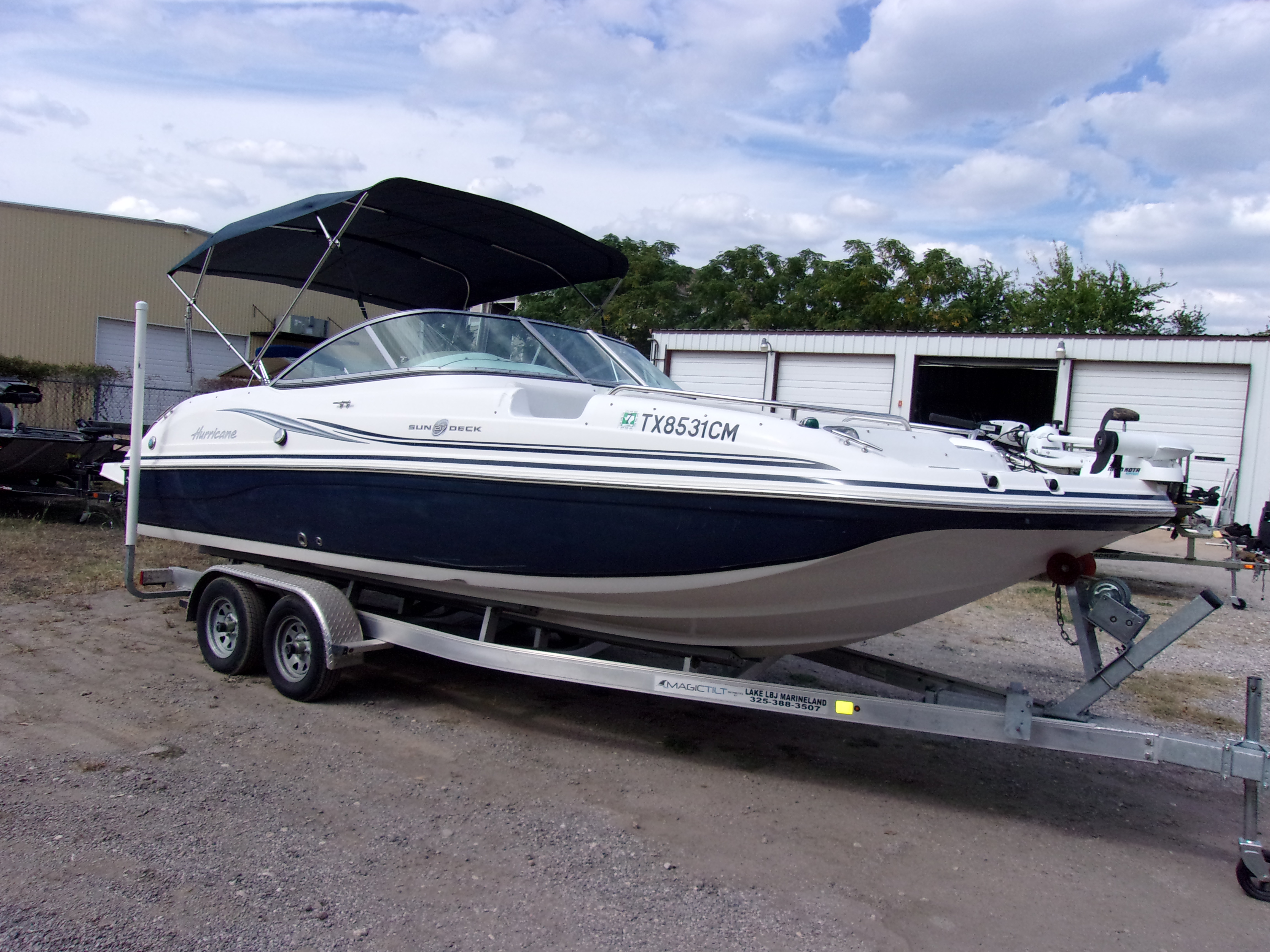 2014 Hurricane 217 Sun Deck, Mercruiser 5.0 MPI, 260 HP, 182 Hours, Bimini Top, Snap-In Carpet, AM/FM Bluetooth, Minn Kota Riptide 12 Volt 55# Trolling Motor, Snap-In Cover, Includes Tandem Axle Trailer.