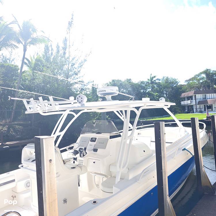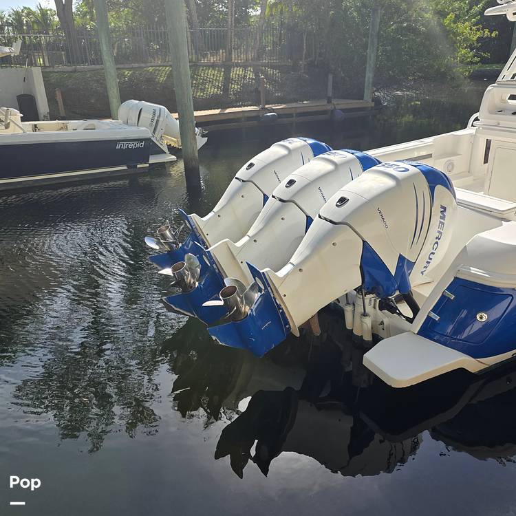 This beautiful 2014 Intrepid 375 Walkaround is the quintessential boat for South FL. She's power by triple Mercury 350 Verado engines. A great layout for intracoastal dinner cruises, fishing amenities, the best hull side door in the industry for easy boarding, the sandbar, or diving, and the highly respected Intrepid quality and ride.