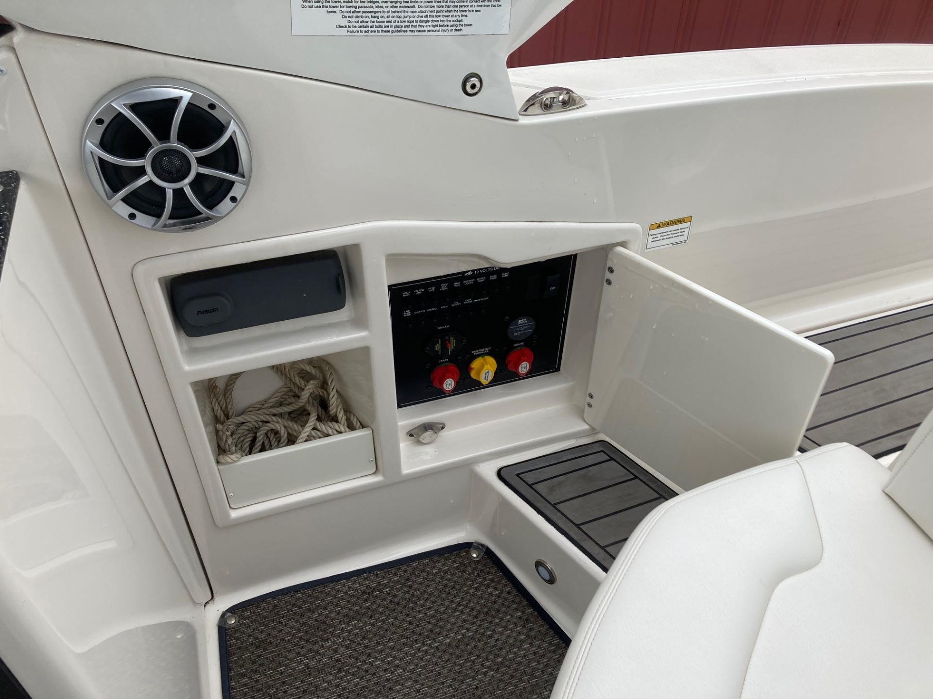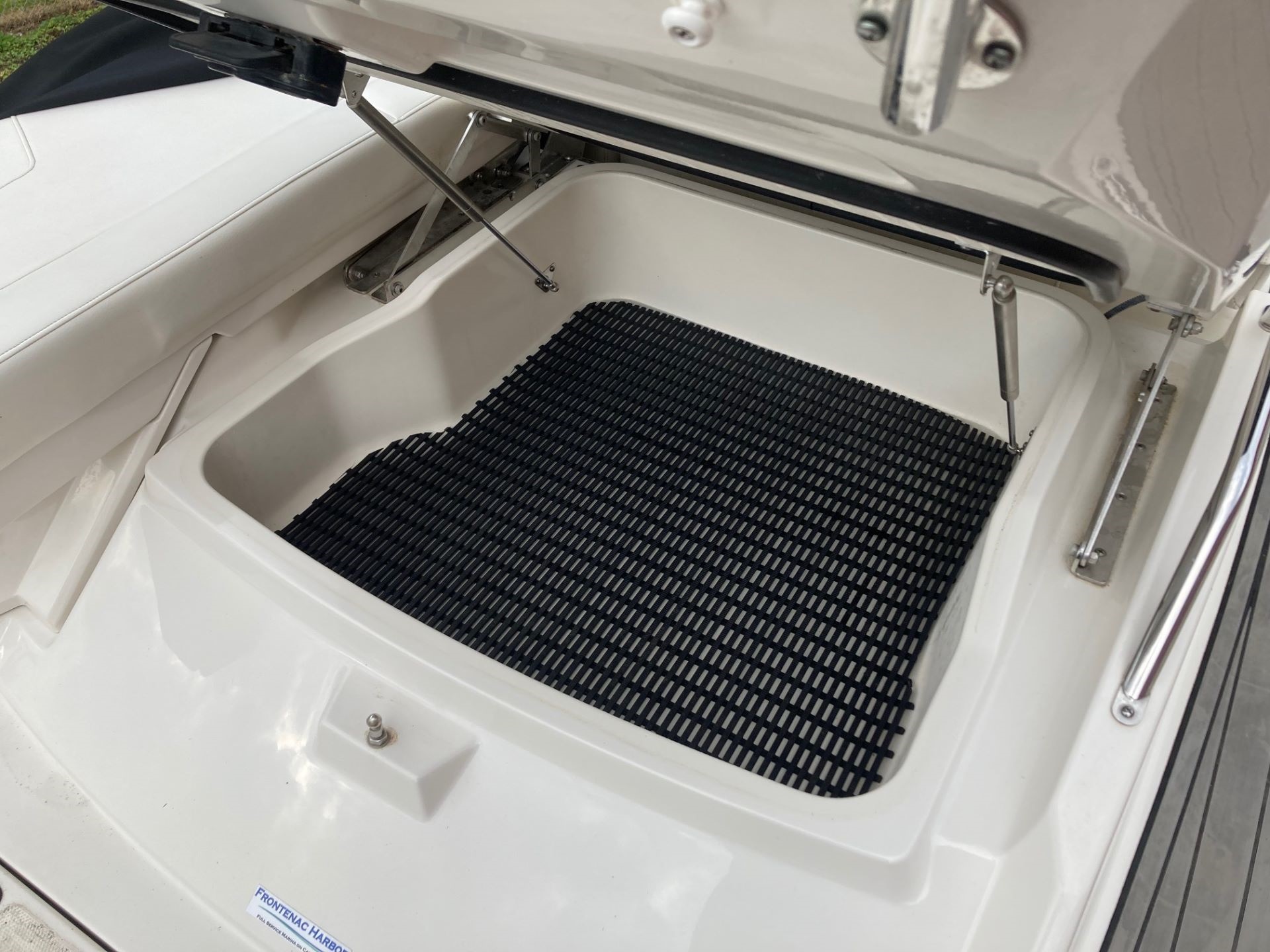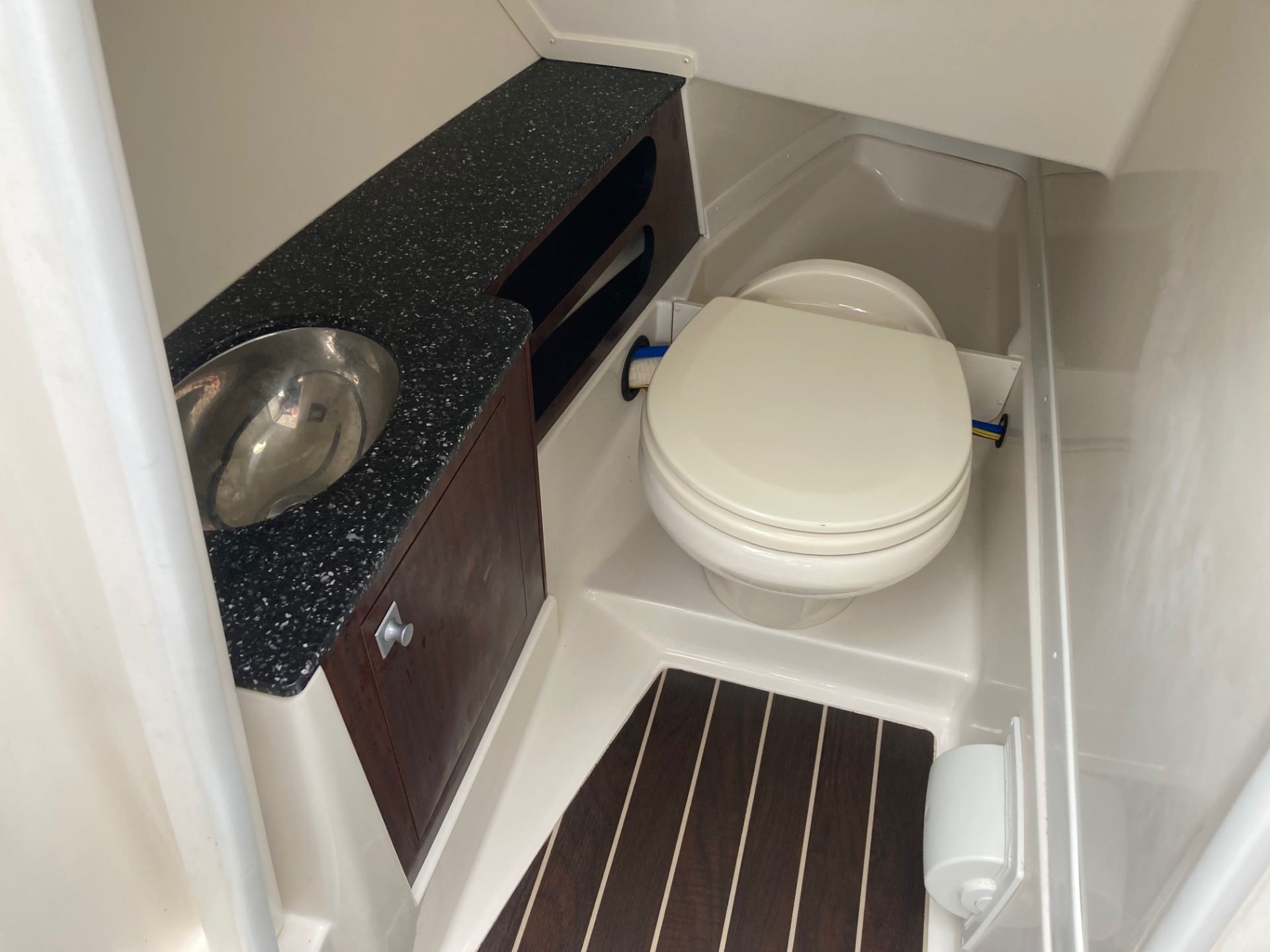 With a stable and comfortable 9 foot beam, the 288 comes standard with a roomy head compartment, and a huge aft seat stretching across the stern complete with flip-up backrest for lounging.