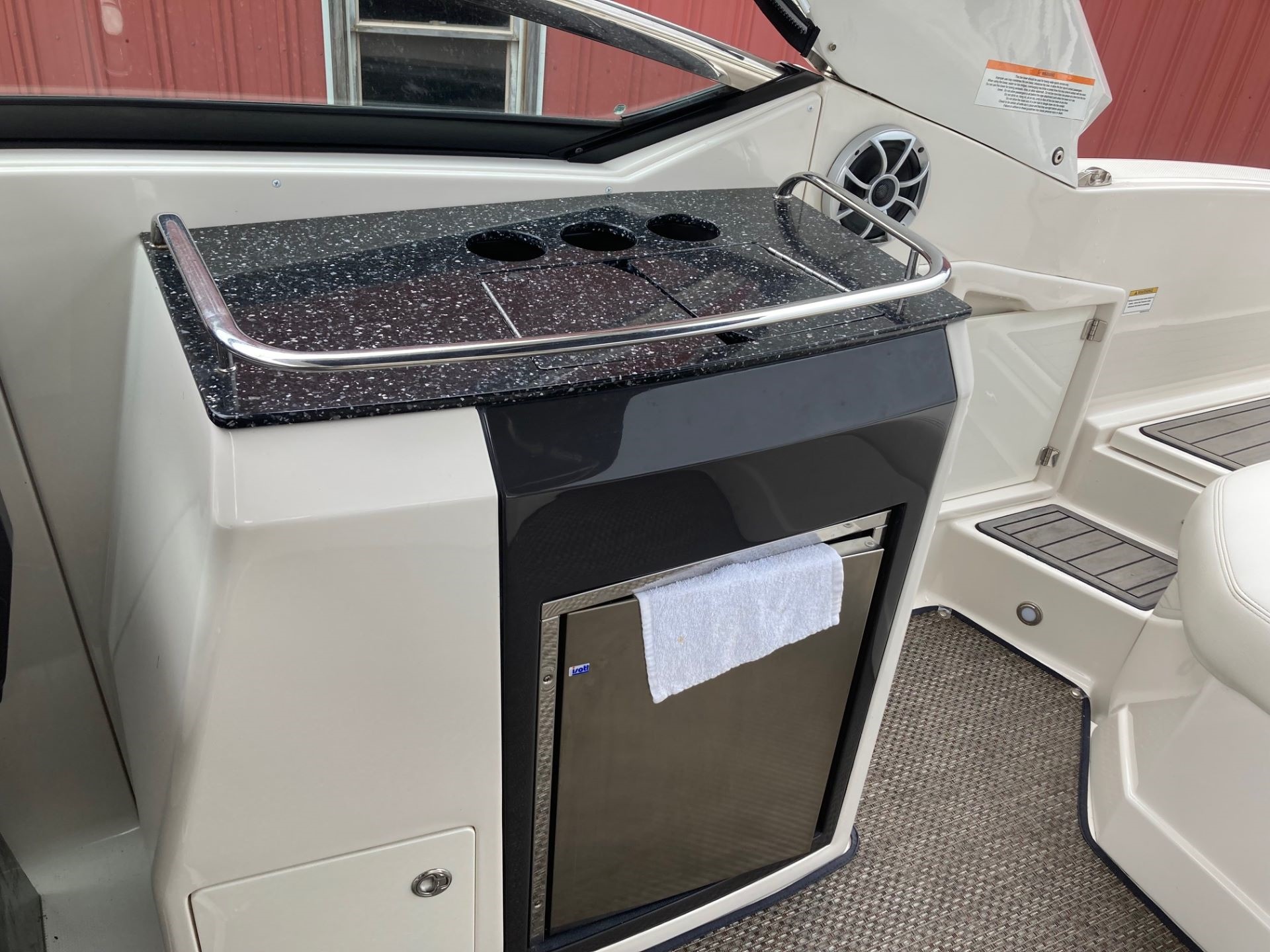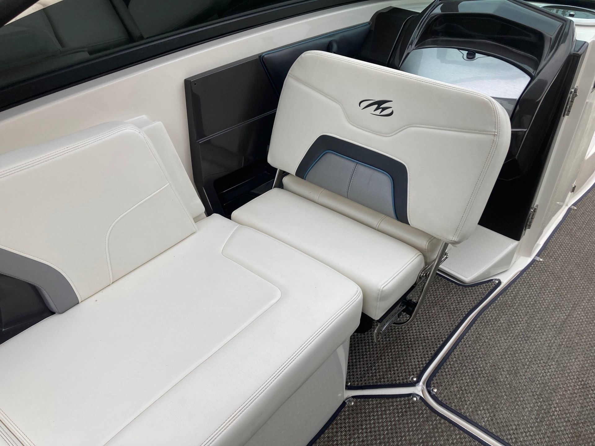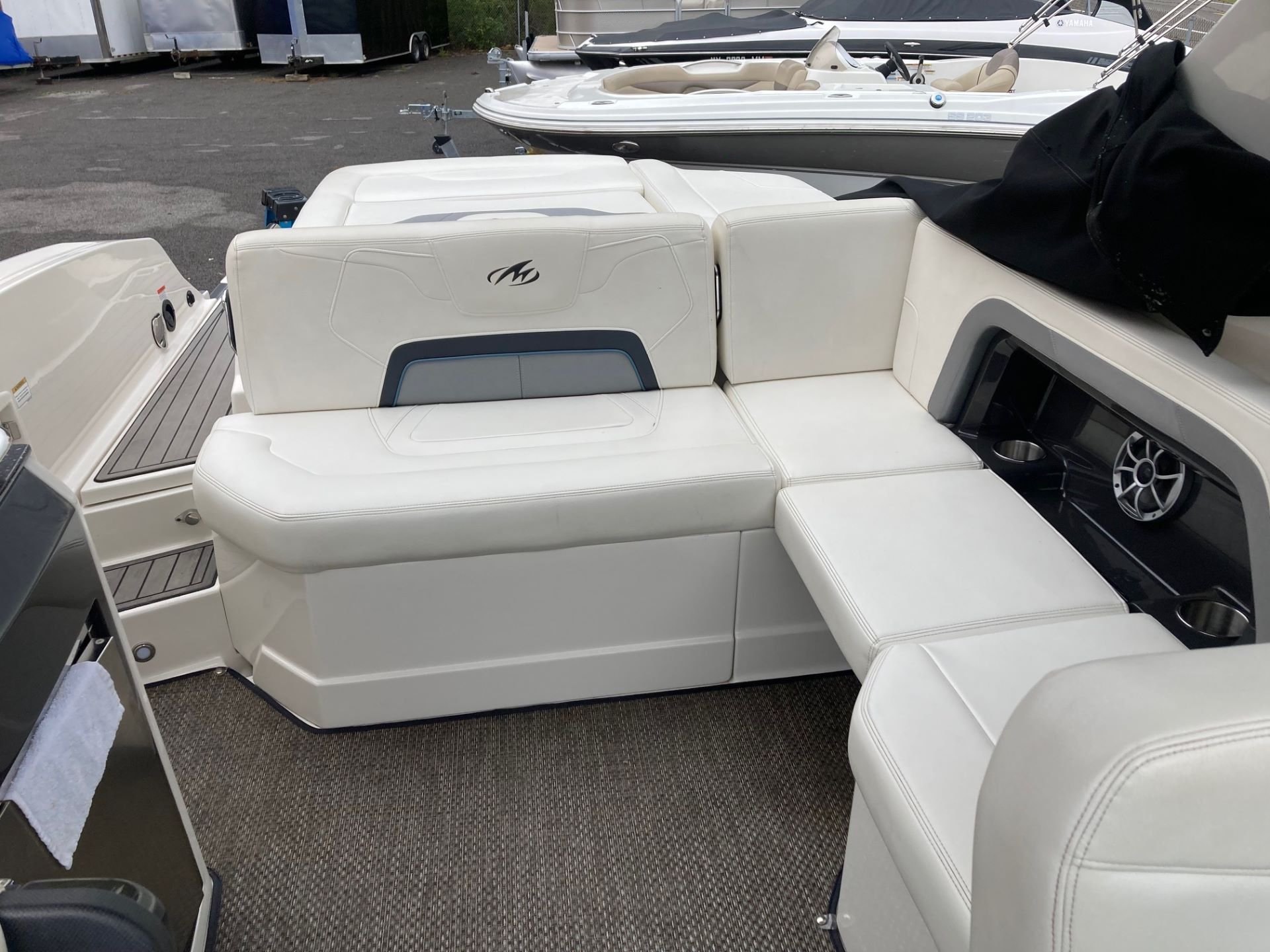 With a stable and comfortable 9 foot beam, the 288 comes standard with a roomy head compartment, and a huge aft seat stretching across the stern complete with flip-up backrest for lounging.