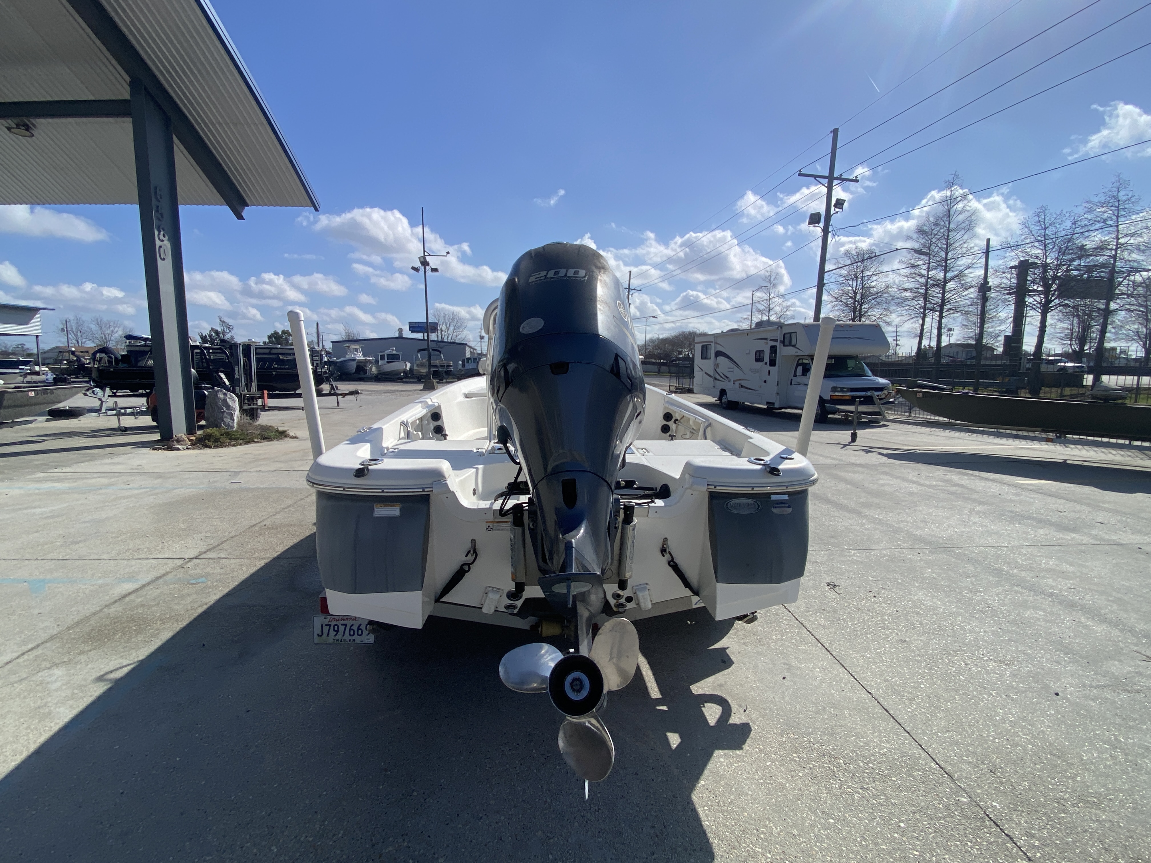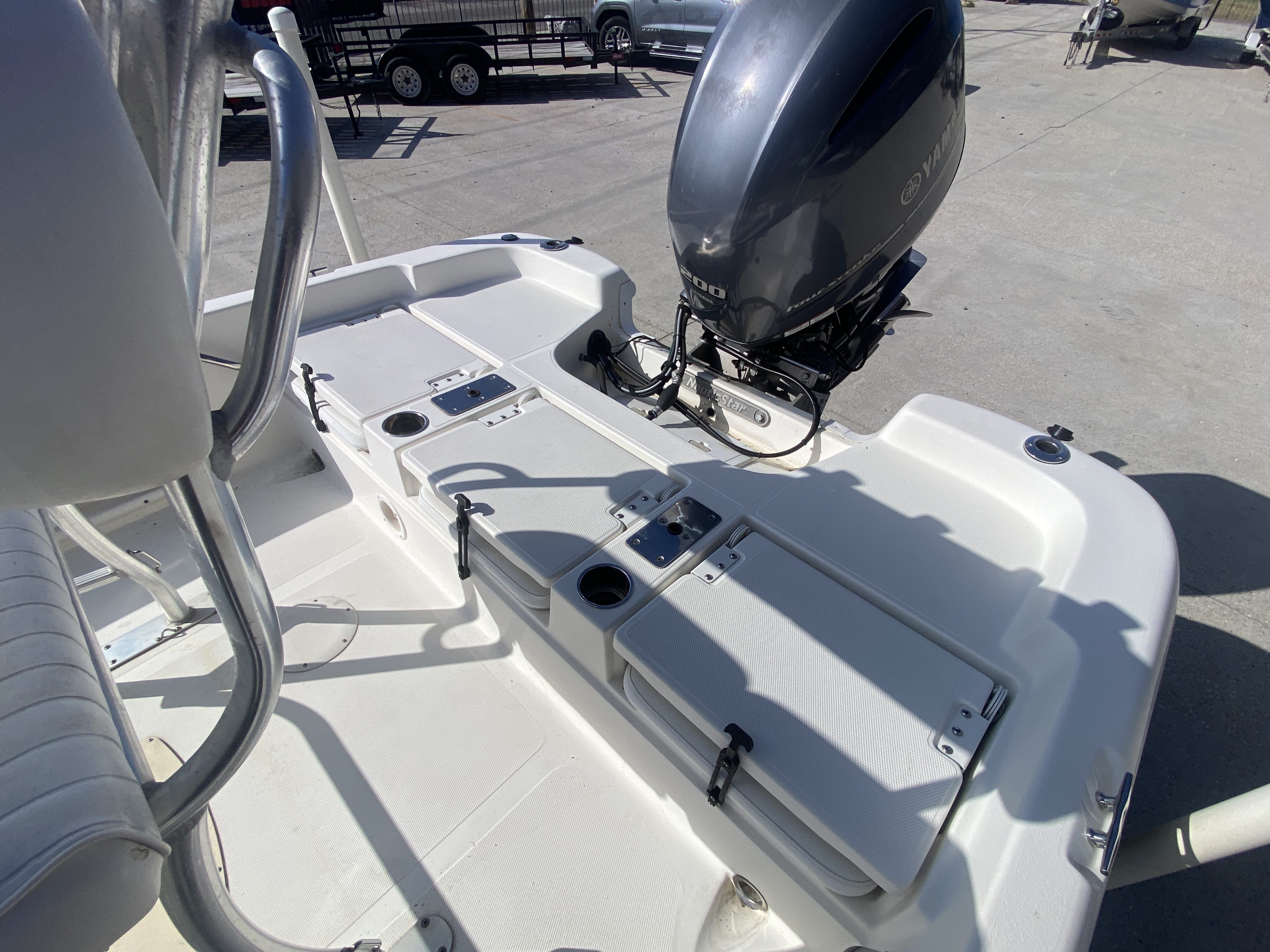 Powered by a Yamaha 200 HP Four-Stroke Outboard – Reliable, fuel-efficient, and powerful, this four-stroke engine delivers strong hole shot, smooth mid-range performance, and dependable offshore and inshore capability.
