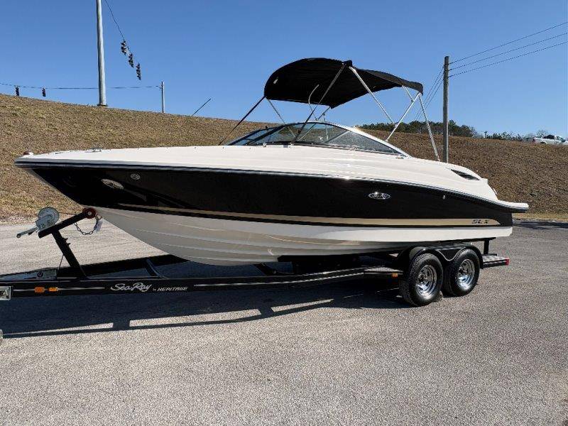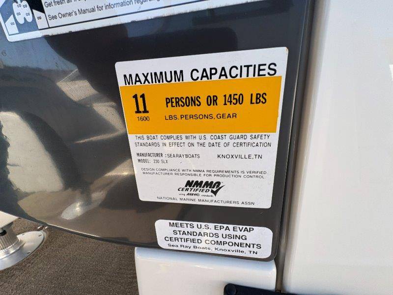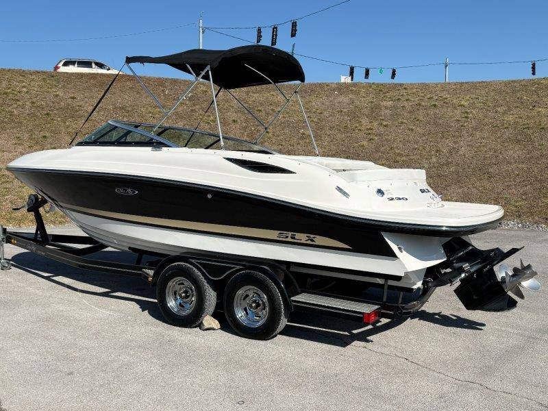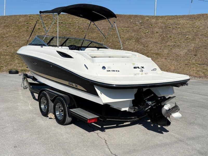 2014 Sea Ray 230 SLX Mercruiser 350 Mag 300 hp Bravo 3 Heritage custom trailer Cockpit and bow cover Bimini top Clarion sound system Ski tow eye Built in cooler Bow anchor locker Bucket seats Sunpad Snap in carpet In floor storage