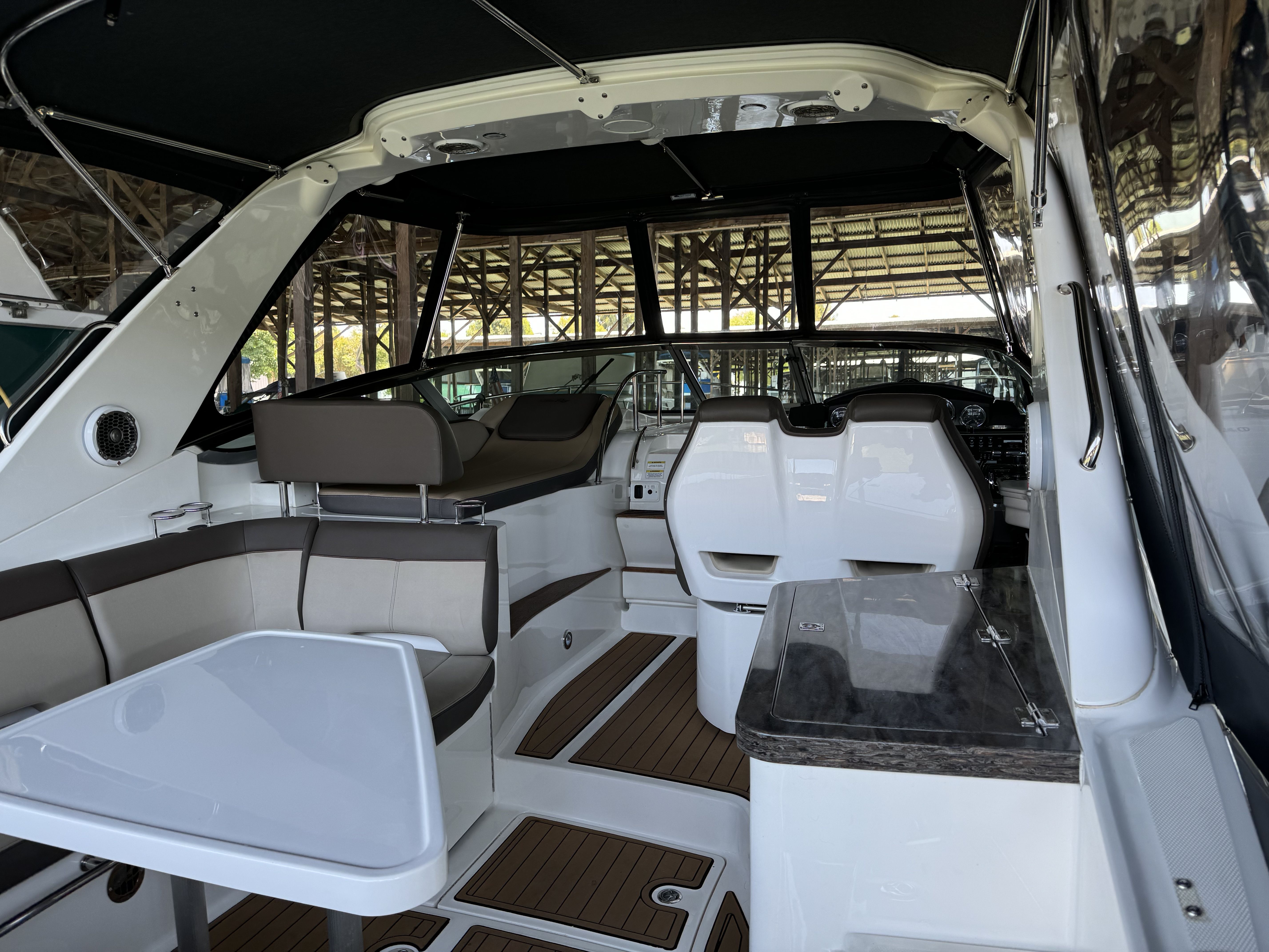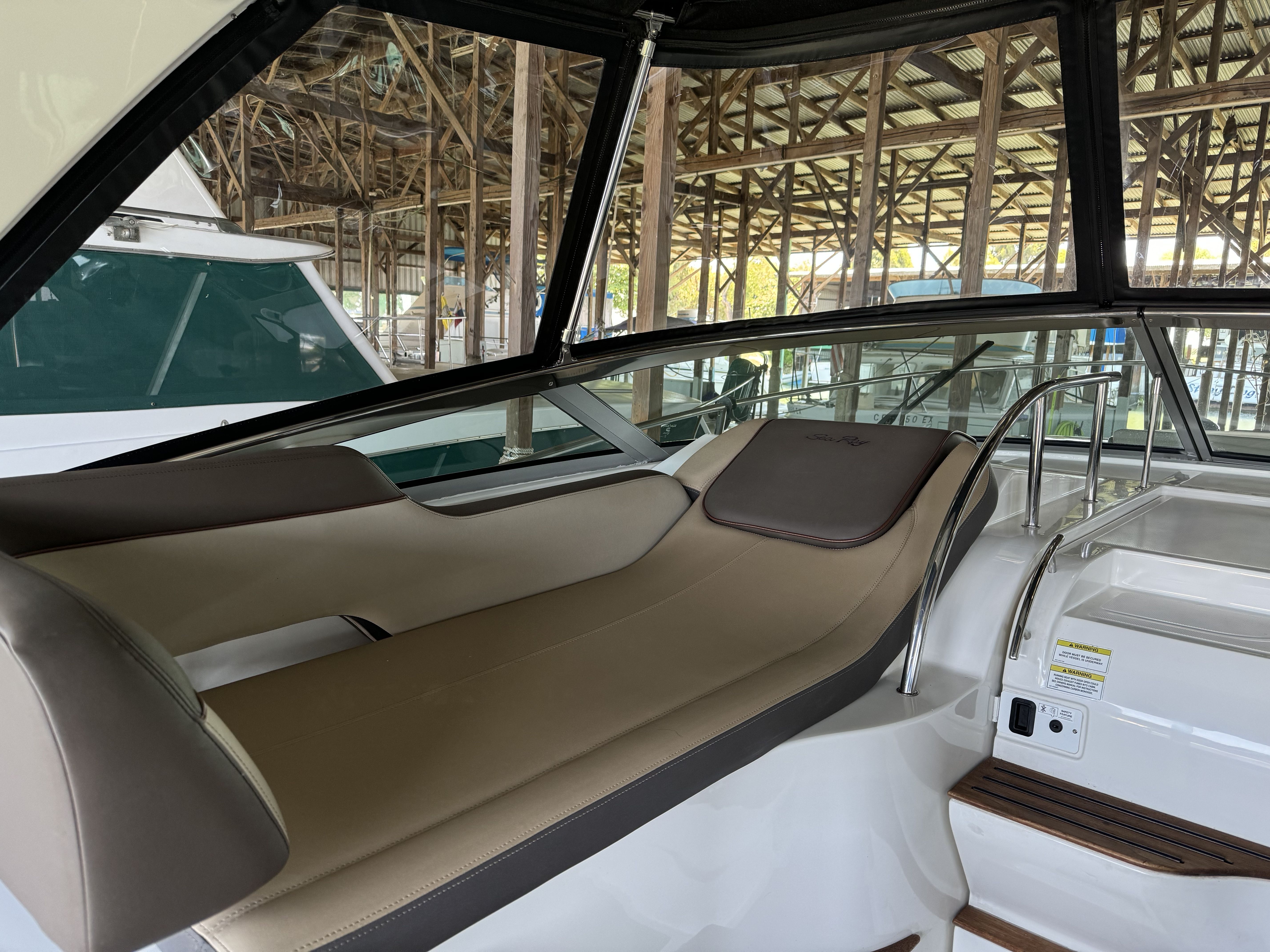 Meticulously Maintained, Highly Optioned and Outfitted. Kept In Fresh water and under cover. Fully Serviced, Maintained, Turnkey and Ready to GO with Joystick Docking and position hold. Pride of Ownership shows throughout, both cosmetically and mechanically with records to back it up. Every option from Sea Ray and then some. Excellent boat with all the right features for comfort, entertaining and control. Great boat to start your boating adventures with or move up into. Key Features: Axius Joystick docking with position hold, Upgraded 8.2L engine package, Kohler Generator, A/C with heat throughout vessel, Near new Camper Back Fully enclosed cockpit, Raymarine Touch Screen all in one Plotter/Radar/Sounder, Completed full annual service 06/2024, Built in BBQ and Fresh water sink with prep area at Transom, Classy and clean SeaDek throughout cockpit and swim step, Optional extended swim-platform.