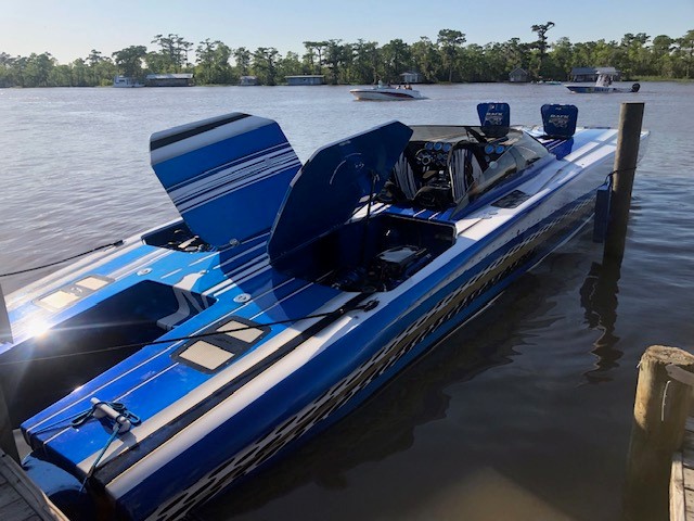 Here's an iconic one up for grabs-one of the good ones that's been proven time and time again. Perfectly set up, completely dialed in, and extremely fast 2014 388 - 1 of 1 2013 Skater Tilt Trailer The only 388 ever made with a 5' bustle Motors purchased new from Mercury with Dual Fuel 1100/1350 Merc Turbo Motors, Installed in 2023 - currently with only 50 hours on them An absolute must see - pretty unbelievable Completely redone Alcantara interior, seats, and stero by Island Audio in 2021. To my knowledge, it's the only boat our there with automatic opening and closing storage compartment doors This boat has been meticulously maintained with an open checkbook - no corners cut