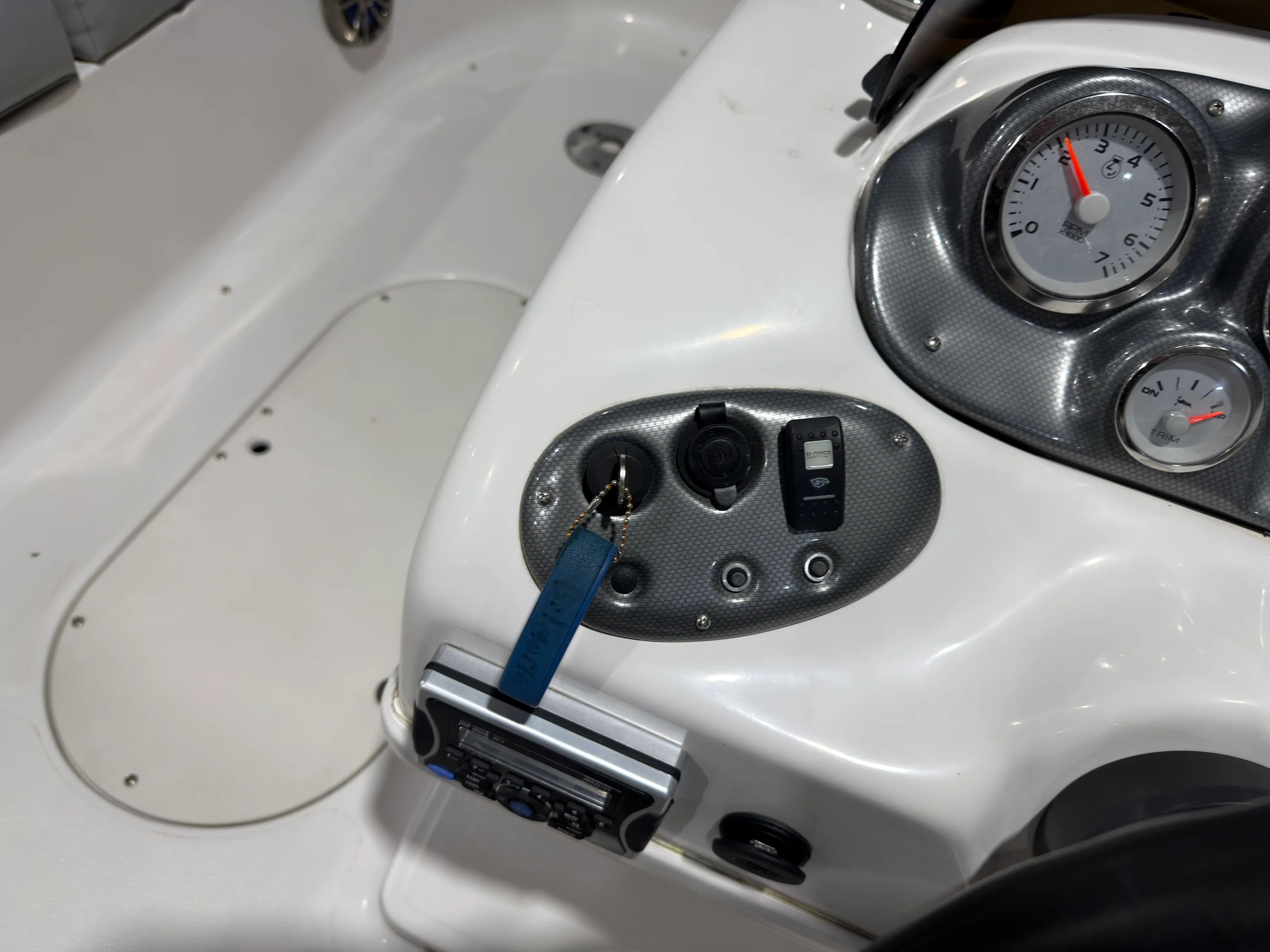 Key features of this boat include a spacious, open cockpit layout that provides ample seating for family and friends, as well as plenty of storage for gear. The well-designed helm offers easy access to all controls, ensuring a comfortable driving experience. High-quality upholstery and premium finishes enhance the overall luxurious feel, making it an ideal choice for those looking to enjoy both relaxation and excitement.