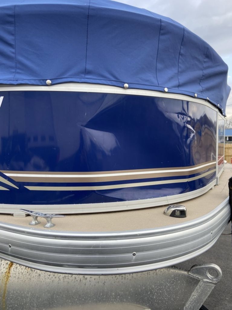 The 2014 SUN TRACKER PARTY BARGE 22 DLX is a roomy, family-friendly pontoon built for easy cruising, relaxing, and making the most of every lake day. With its open lounge-style layout, comfortable wraparound seating, and smart storage throughout, the 22 DLX gives you the space and versatility that made SUN TRACKER’s PARTY BARGE series a longtime favorite. Measuring 22' 2" in length with an 8' 6" beam, this model is rated for up to 10 passengers, giving you the right balance of comfort, stability, and performance for entertaining, sunset cruises, or a full day on the water. Factory features include a 9' Bimini top, pop-up changing room, LED navigation lighting, dual-latching gates, and durable aluminum pontoon construction.