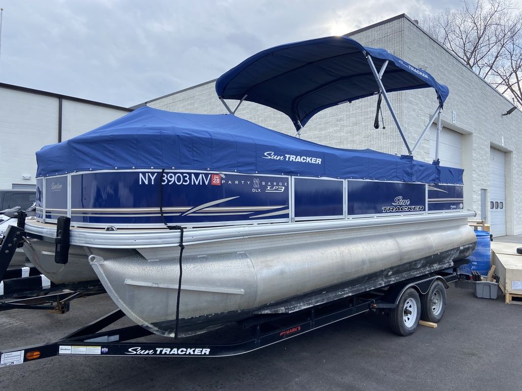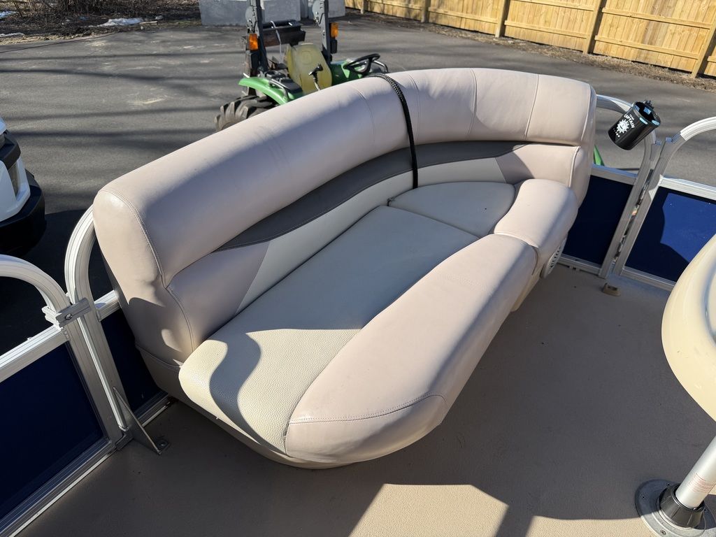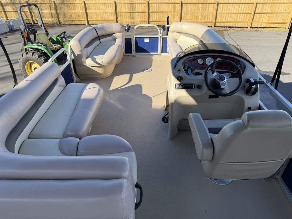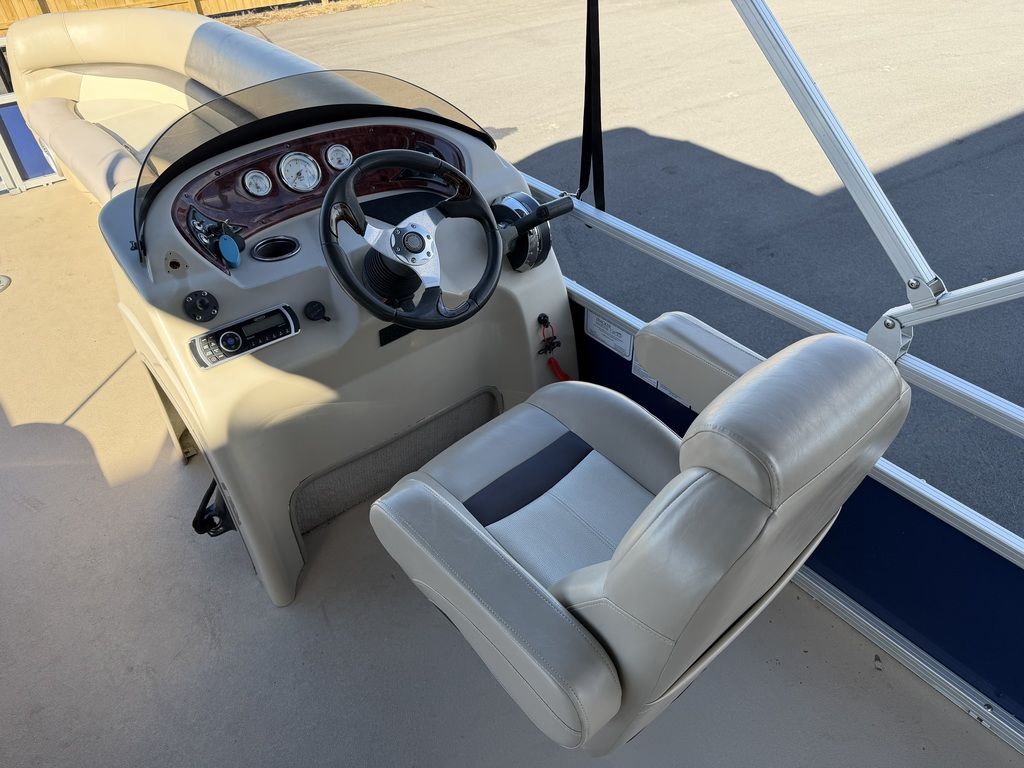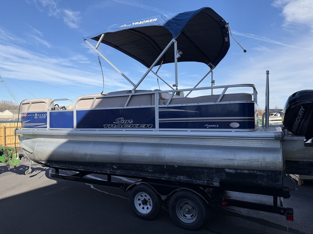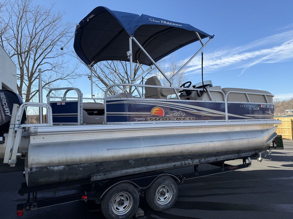 The 2014 SUN TRACKER PARTY BARGE 22 DLX is a roomy, family-friendly pontoon built for easy cruising, relaxing, and making the most of every lake day. With its open lounge-style layout, comfortable wraparound seating, and smart storage throughout, the 22 DLX gives you the space and versatility that made SUN TRACKER’s PARTY BARGE series a longtime favorite. Measuring 22' 2" in length with an 8' 6" beam, this model is rated for up to 10 passengers, giving you the right balance of comfort, stability, and performance for entertaining, sunset cruises, or a full day on the water. Factory features include a 9' Bimini top, pop-up changing room, LED navigation lighting, dual-latching gates, and durable aluminum pontoon construction.