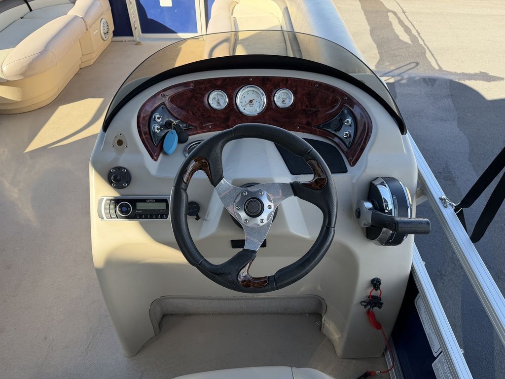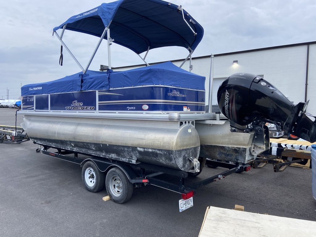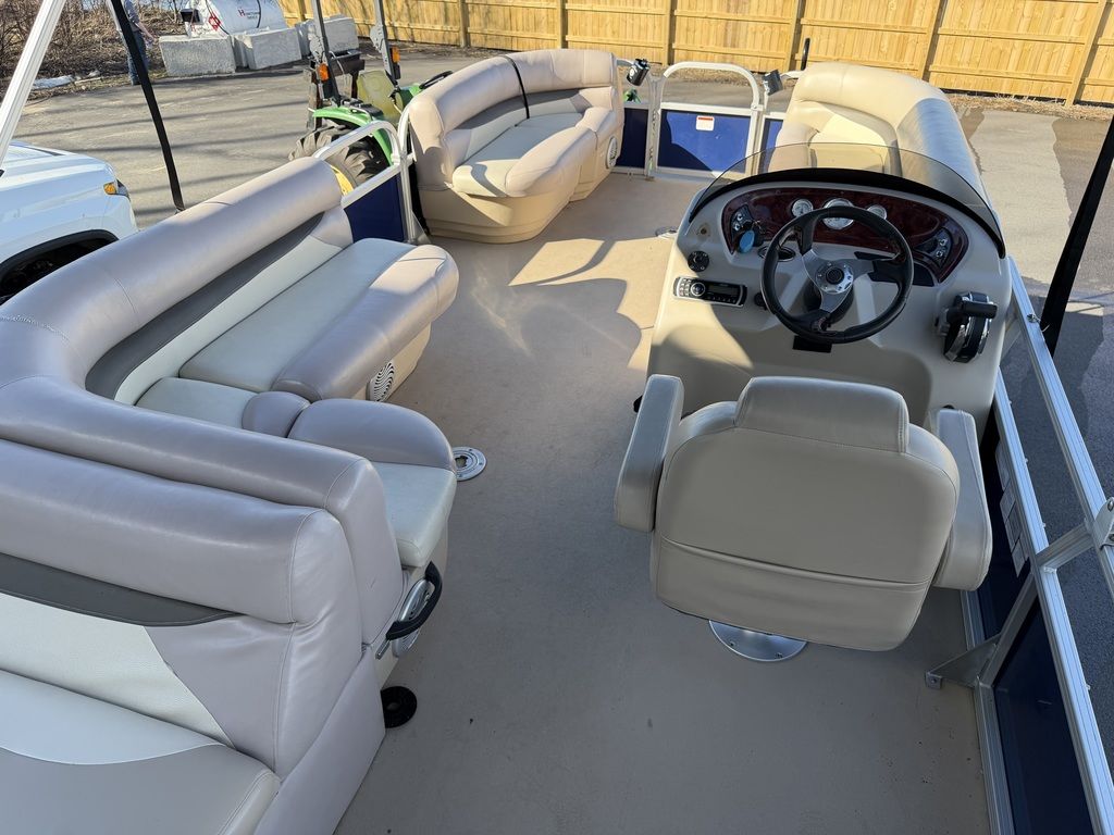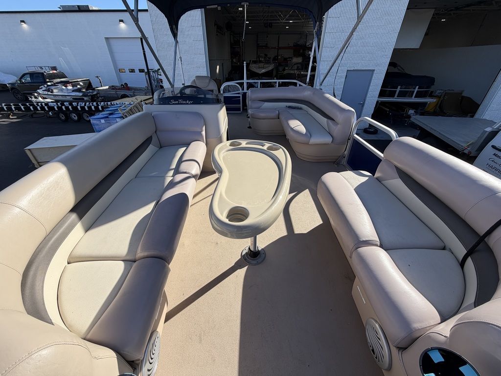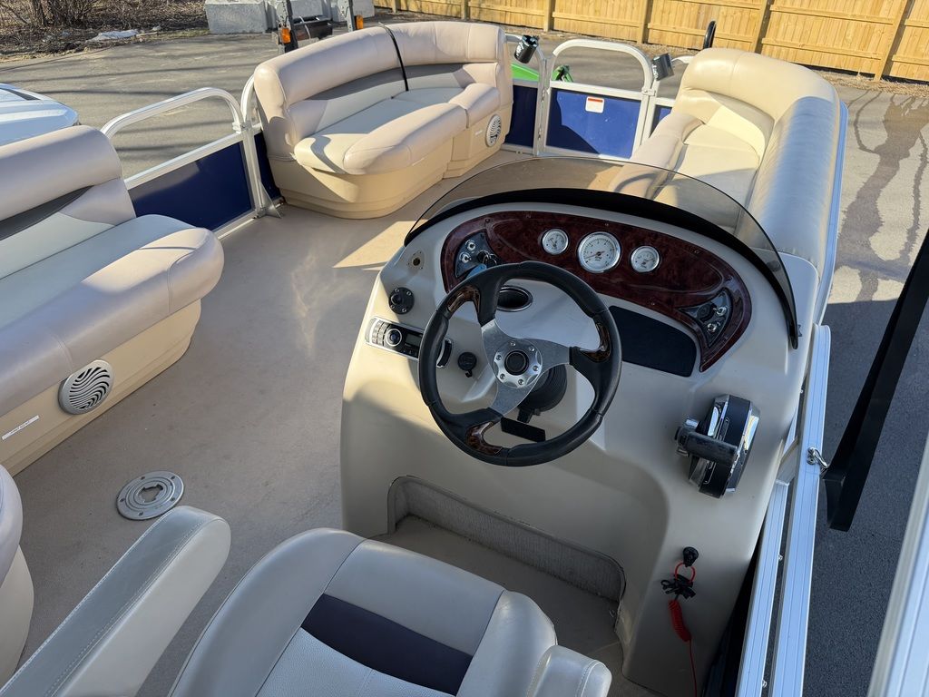 The 2014 SUN TRACKER PARTY BARGE 22 DLX is a roomy, family-friendly pontoon built for easy cruising, relaxing, and making the most of every lake day. With its open lounge-style layout, comfortable wraparound seating, and smart storage throughout, the 22 DLX gives you the space and versatility that made SUN TRACKER’s PARTY BARGE series a longtime favorite. Measuring 22' 2" in length with an 8' 6" beam, this model is rated for up to 10 passengers, giving you the right balance of comfort, stability, and performance for entertaining, sunset cruises, or a full day on the water. Factory features include a 9' Bimini top, pop-up changing room, LED navigation lighting, dual-latching gates, and durable aluminum pontoon construction.