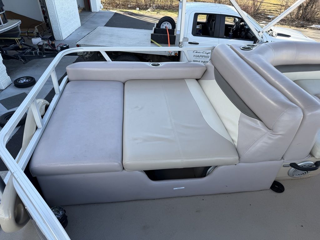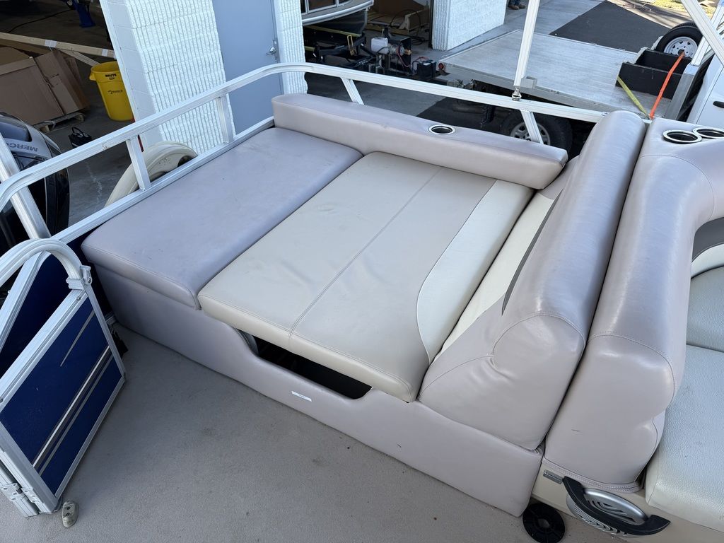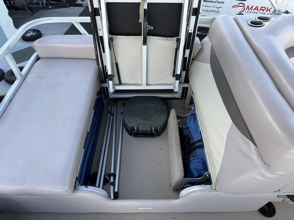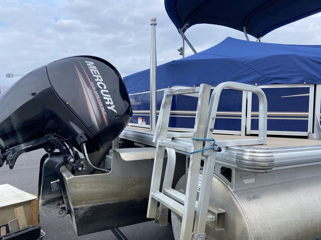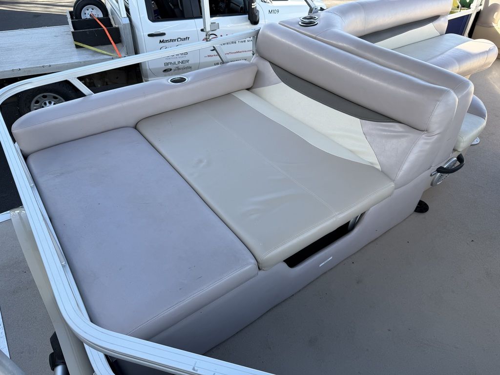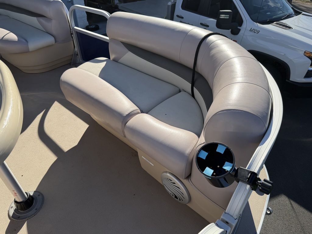 The 2014 SUN TRACKER PARTY BARGE 22 DLX is a roomy, family-friendly pontoon built for easy cruising, relaxing, and making the most of every lake day. With its open lounge-style layout, comfortable wraparound seating, and smart storage throughout, the 22 DLX gives you the space and versatility that made SUN TRACKER’s PARTY BARGE series a longtime favorite. Measuring 22' 2" in length with an 8' 6" beam, this model is rated for up to 10 passengers, giving you the right balance of comfort, stability, and performance for entertaining, sunset cruises, or a full day on the water. Factory features include a 9' Bimini top, pop-up changing room, LED navigation lighting, dual-latching gates, and durable aluminum pontoon construction.