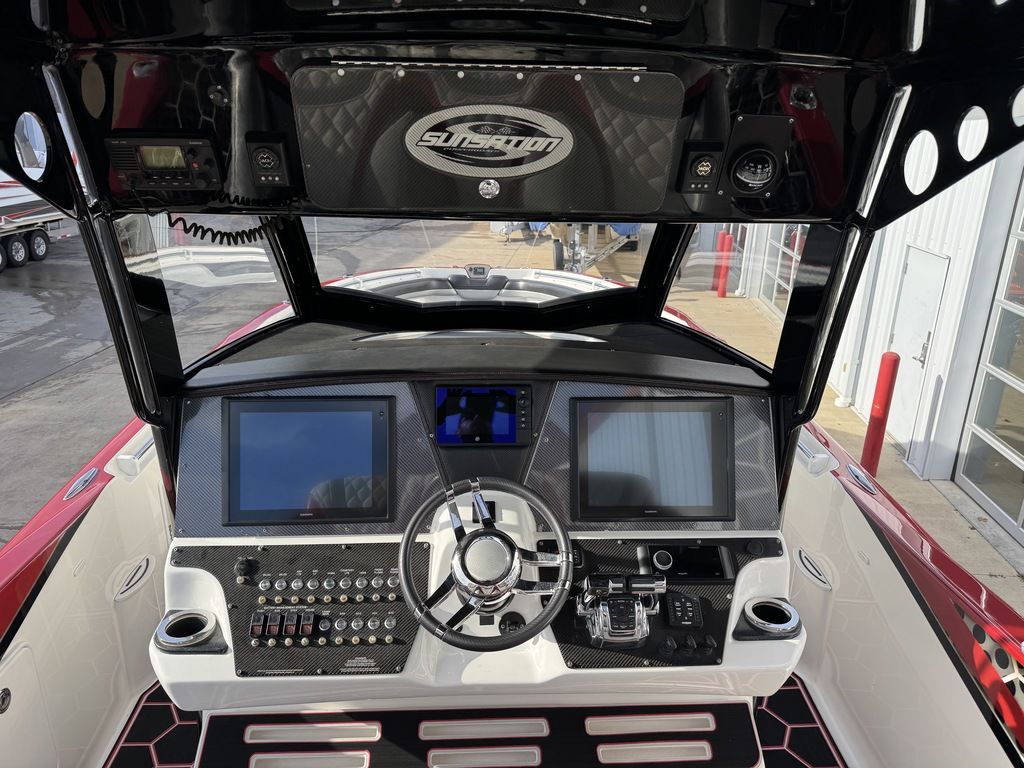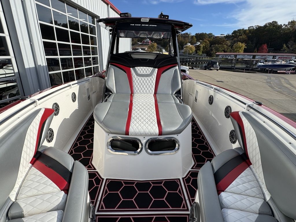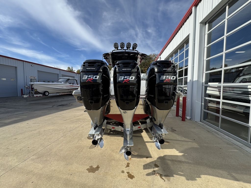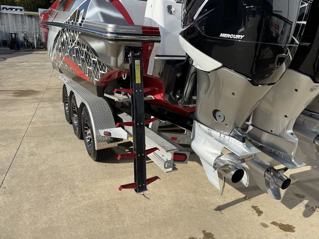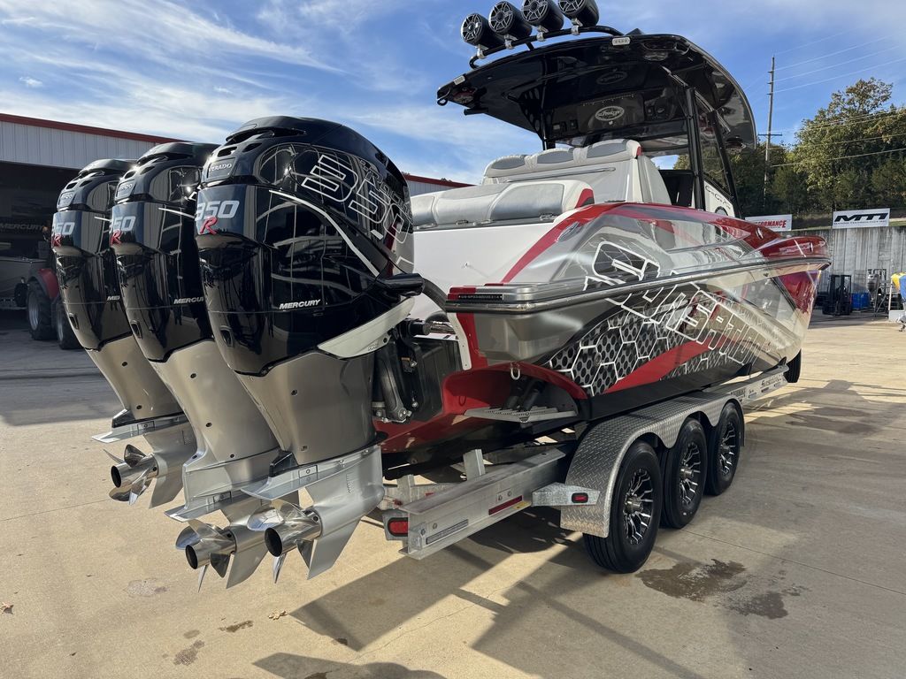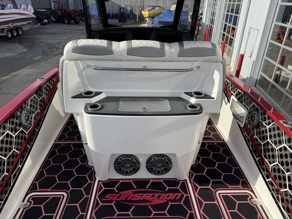 2014 Sunsation 34 CCX repowered with triple Mercury Racing 350R's w/ 753 Hours, additional battery, electric battery switch on dash, cabin bed filler cushions, cabin windows, Cabin TV, depth sounder, LED custom lighting package, sea deck flooring, Isotta steering wheel, swim ladder, porcelain toilet with pumpout and holding tank, trim tab indicators, Kplanes, windlass anchor with 185' line, 15' chain, Black hull bottom, battery charger w/ Shore power, canvas package, full covers and T-Top cover, (2) Garmin touch screens, Mitcher T custom paint, LED underwater lights, Rod holders midship and rear gunnel, HUGE JL Audio Stereo w/ Fusion Head Unit, transom washdown, Phoenix triple axle Trailer Included.