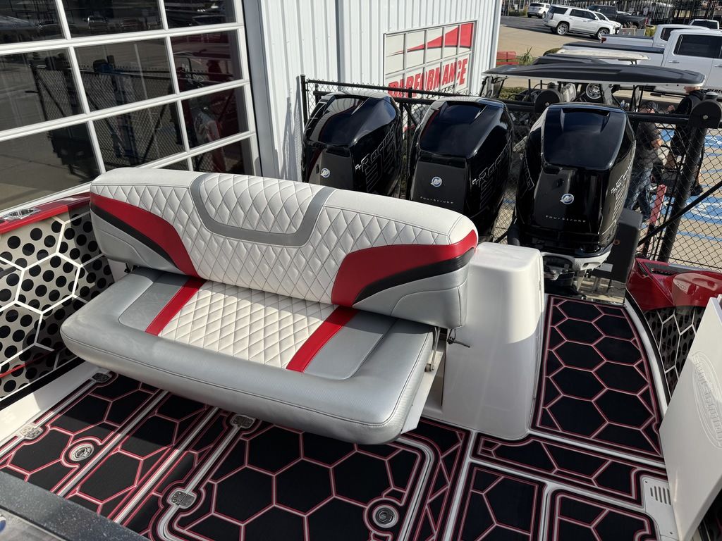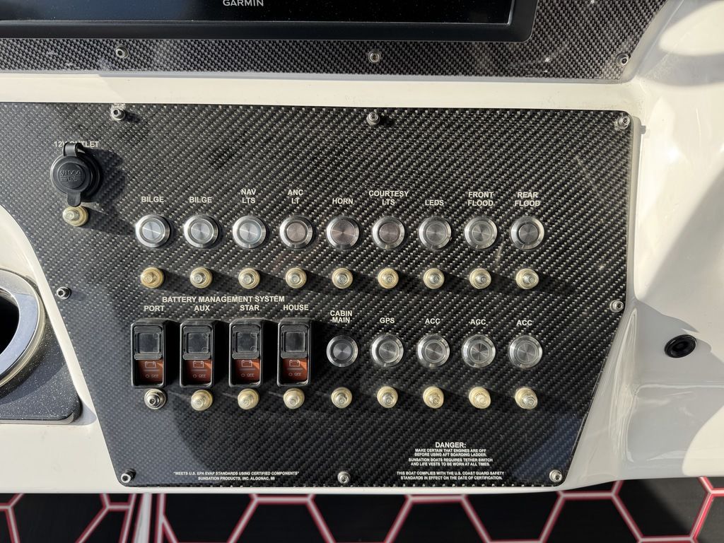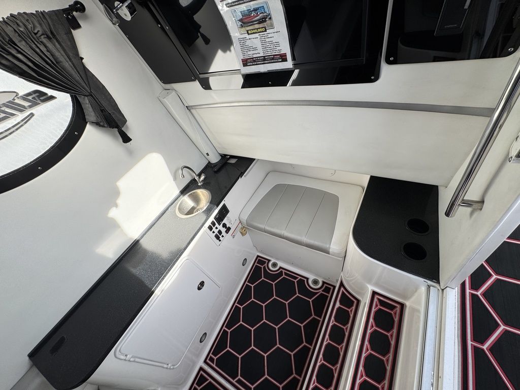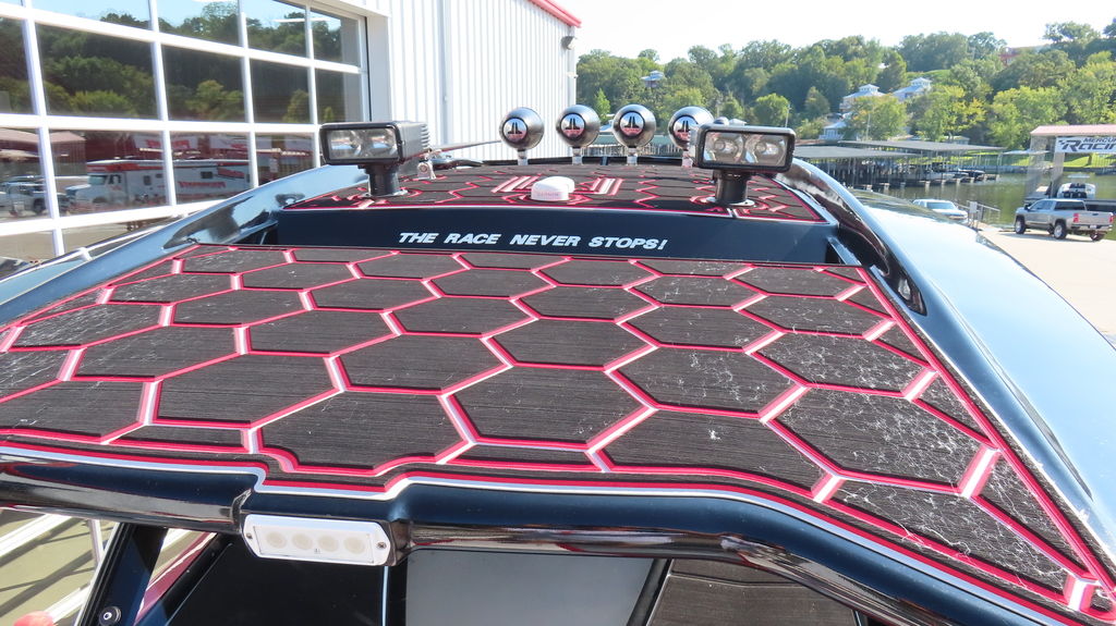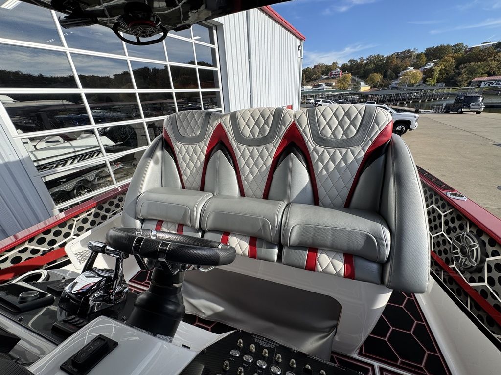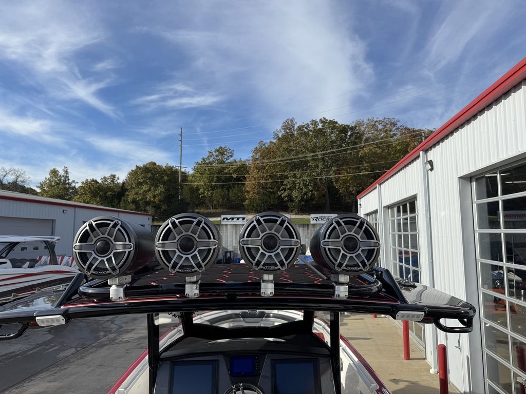 2014 Sunsation 34 CCX repowered with triple Mercury Racing 350R's w/ 753 Hours, additional battery, electric battery switch on dash, cabin bed filler cushions, cabin windows, Cabin TV, depth sounder, LED custom lighting package, sea deck flooring, Isotta steering wheel, swim ladder, porcelain toilet with pumpout and holding tank, trim tab indicators, Kplanes, windlass anchor with 185' line, 15' chain, Black hull bottom, battery charger w/ Shore power, canvas package, full covers and T-Top cover, (2) Garmin touch screens, Mitcher T custom paint, LED underwater lights, Rod holders midship and rear gunnel, HUGE JL Audio Stereo w/ Fusion Head Unit, transom washdown, Phoenix triple axle Trailer Included.