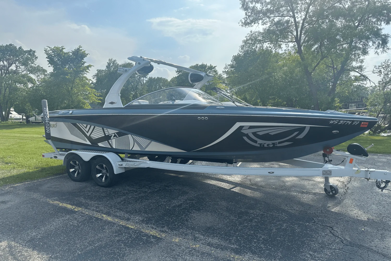 Experience performance and style with the 2014 Tige Zl - a 21.5-footwake boat built toimpress both new riders and seasoned pros. Powered by Tige's innovative Convex V hull and TAPS (Tige Adjustable Performance System) technology, the Zl delivers a customizable wake experience like no other. Whether you're into wakeboarding, surfing, or just cruising, the Zl adapts instantly to fit your style and skill level. Thismodel boasts a sleek, aggressive design paired with luxury interiortouches, seating up to 14 passengers comfortably. With plush upholstery, plenty of storage, and a premium sound system, it's designed for all-day fun on the water. The 2014 Zl also includes a collapsible tower, ballast system, and precision handling - making it the ultimate blend of function and flair. Turn heads at the dock and create unforgettable memories on the water. The Tige Zl is more than a boat - it's your summer lifestyle