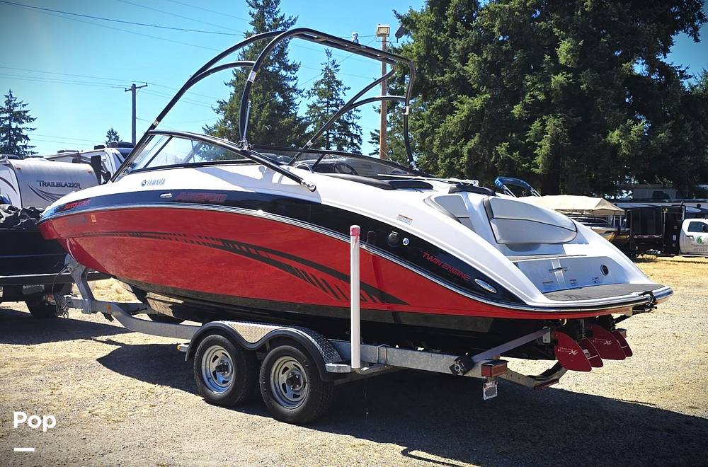 The 2014 Yamaha AR240 High Output Jet Boat is a 24-foot performance-driven vessel built for watersports and family adventures alike. This beautiful high-performance Bowrider is well maintained by the original owner and features a custom-fit storage cover, Bimini top, and a water bladder giving you 35 gallons of fresh water with an electric pump.
