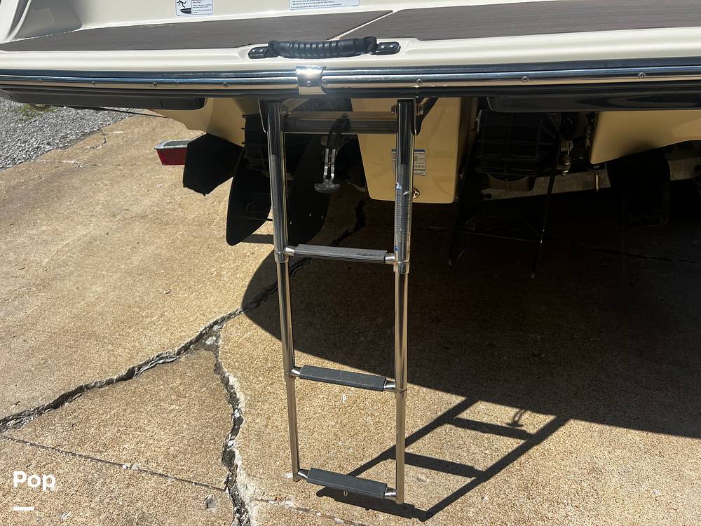 Other standout features include a Clarion stereo system with a transom head unit for easy control, a spacious portside storage compartment that can accommodate a porta-potty or serve as a changing room, and plenty of additional storage throughout.