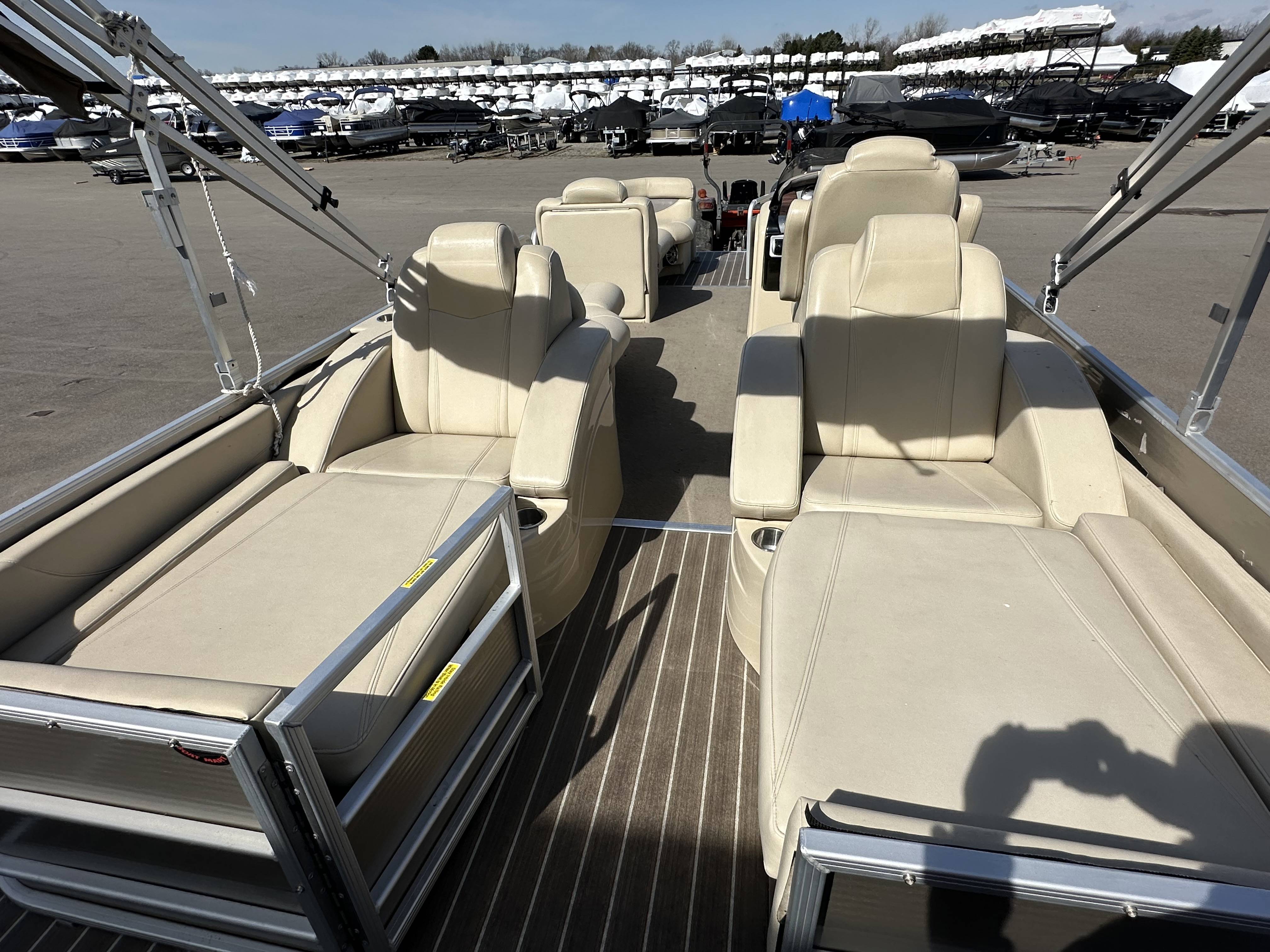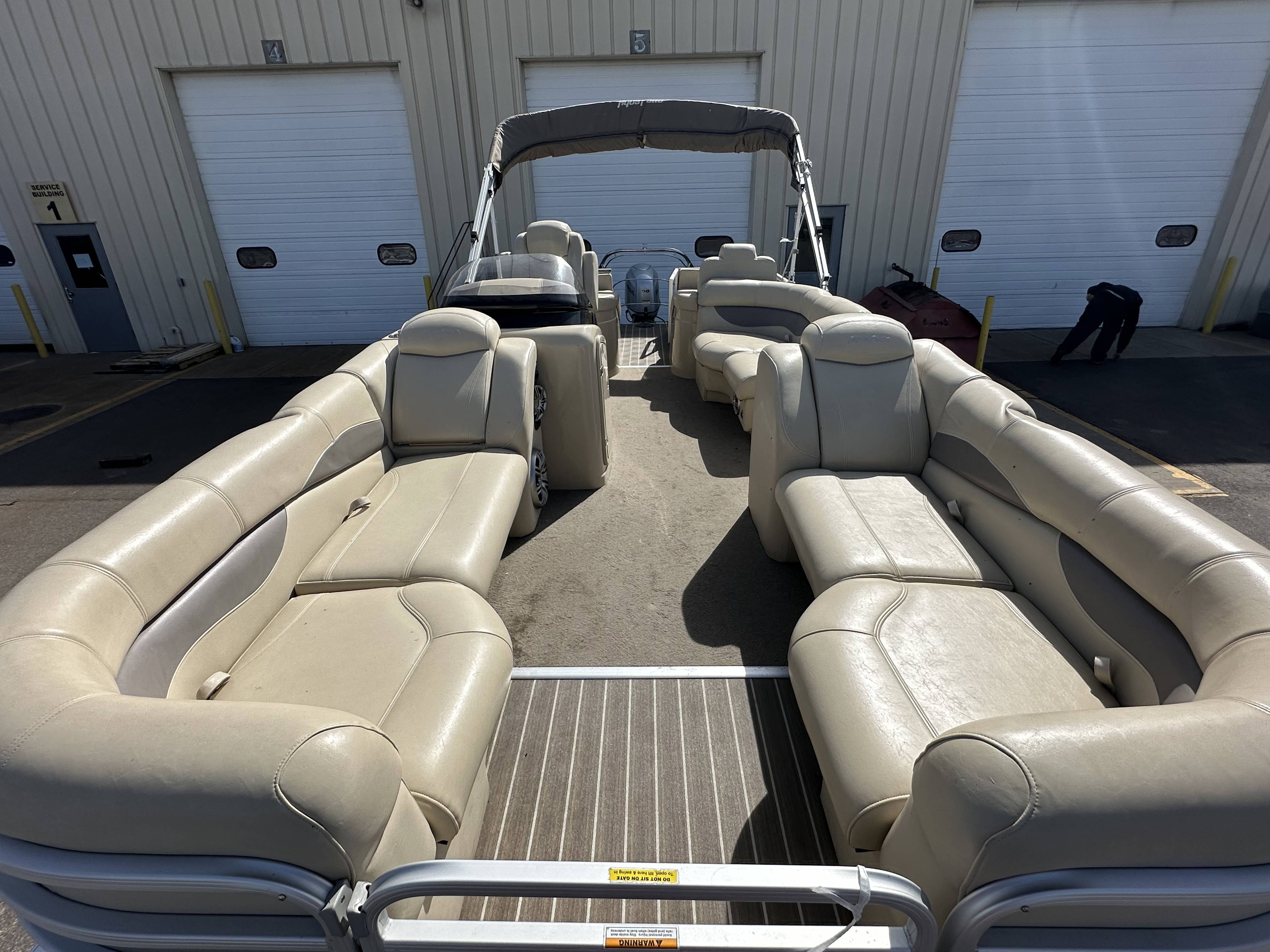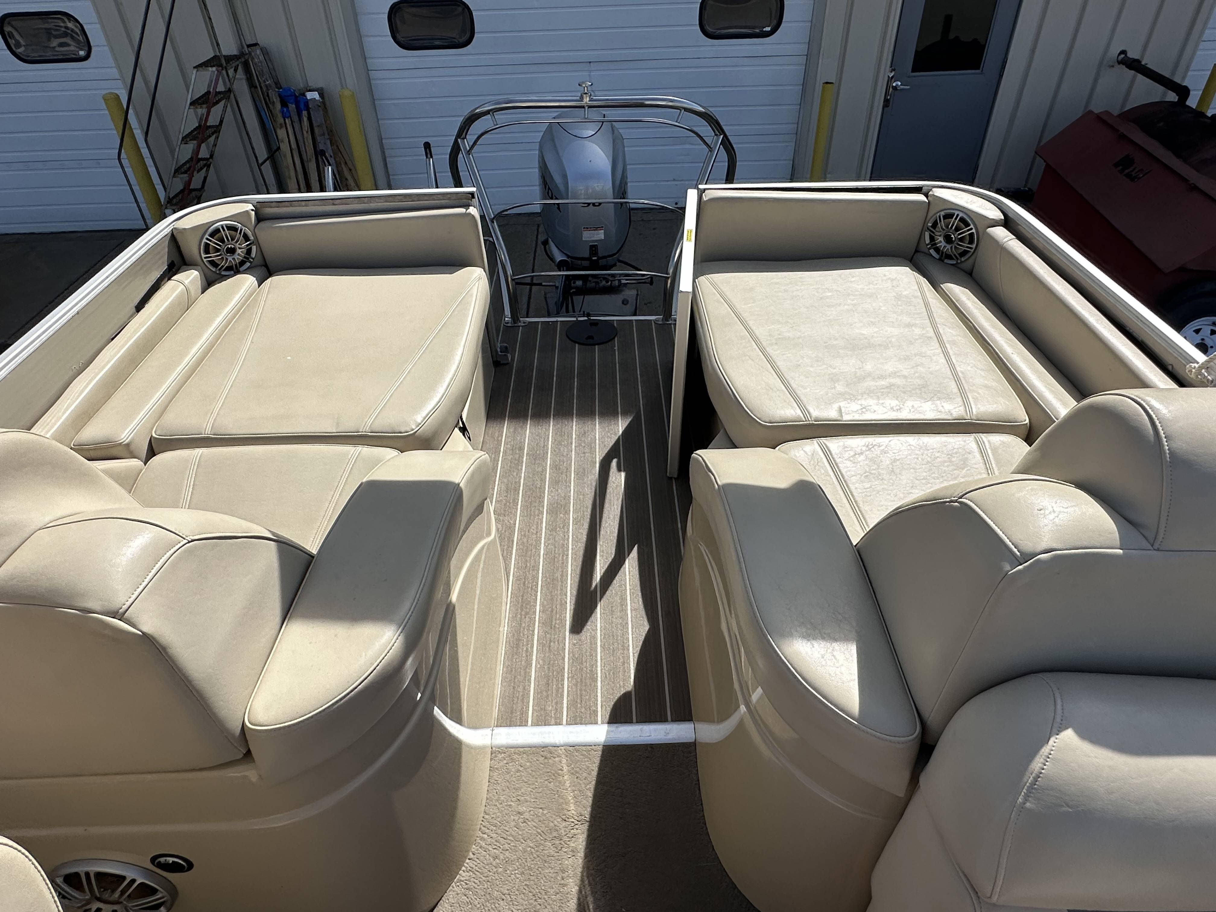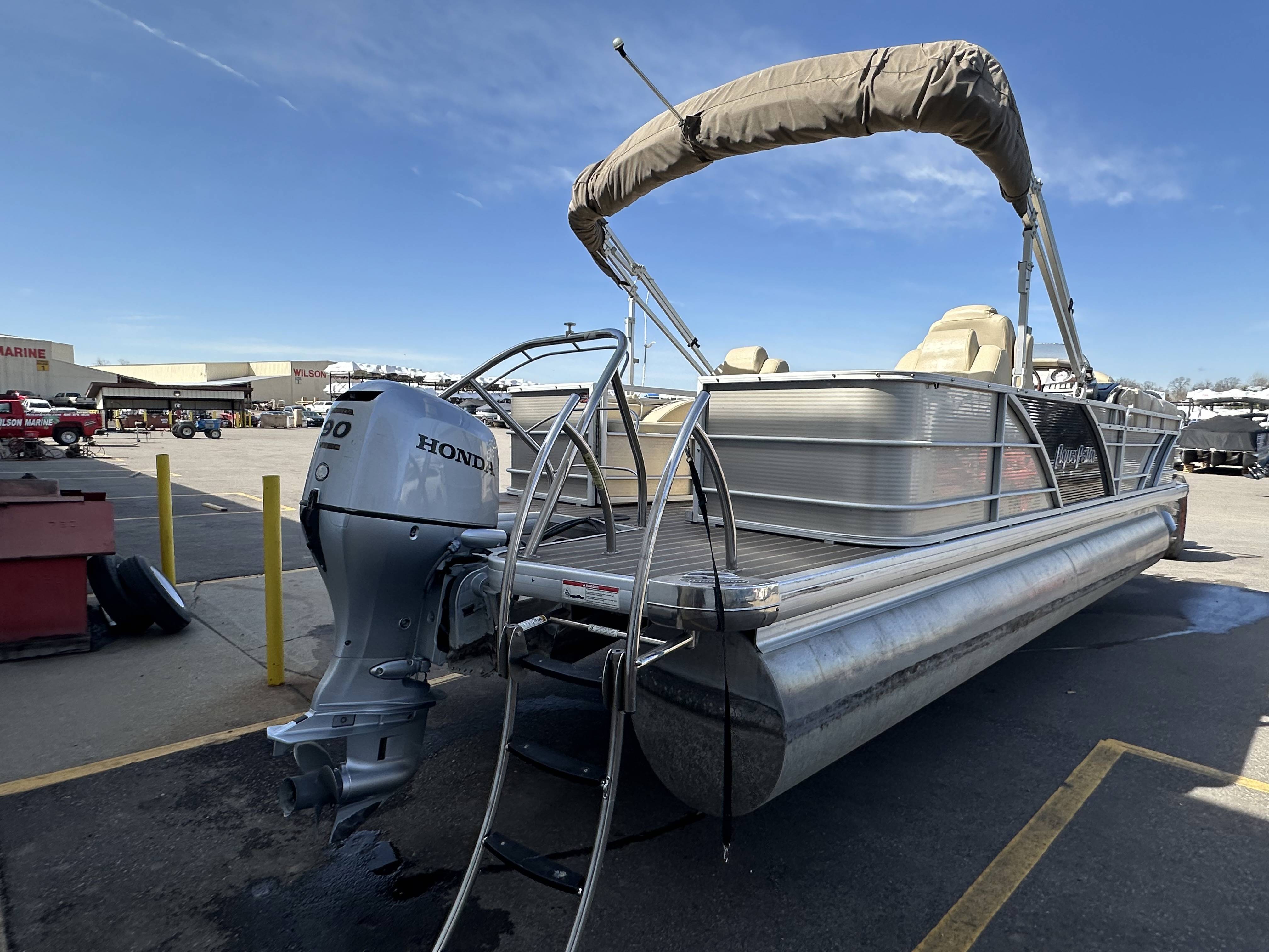 2015 Aqua Patio 240SL with Honda 90 4-strokeRear loungers! Boat is in very good condition! Comes with full mooring cover, bimini top, front and rear vinyl flooring, swim ladder, ski tow bar and much more!Call 800-875-2620 for additional information or to schedule an appointment to view the boat today!