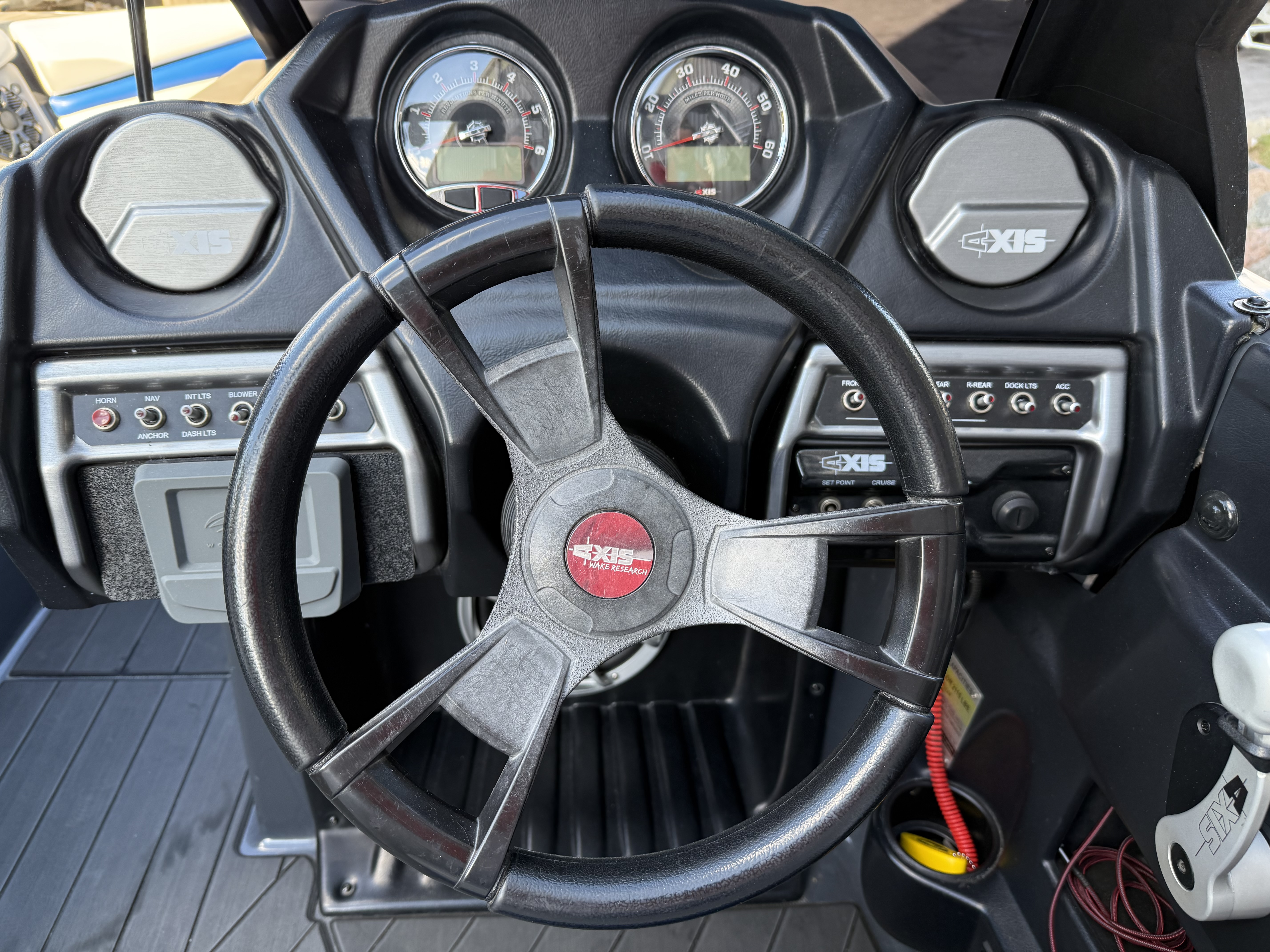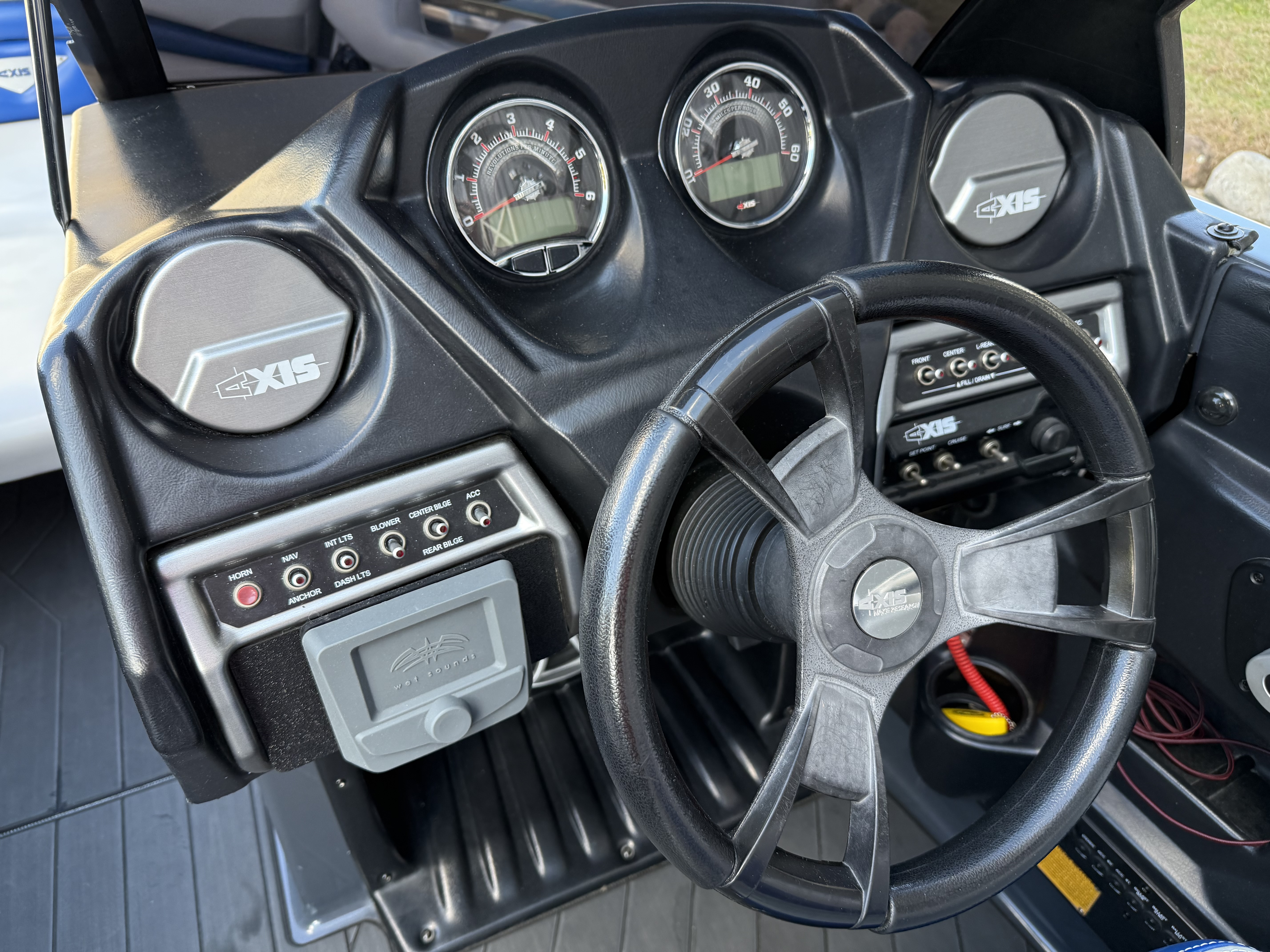 Inside, you’ll find Axis’s signature spacious lounge-style cockpit, wraparound seating, and ample storage for boards and gear. The tower with board racks and speakers keeps everything organized and the energy high, while the helm layout puts total control right at your fingertips.