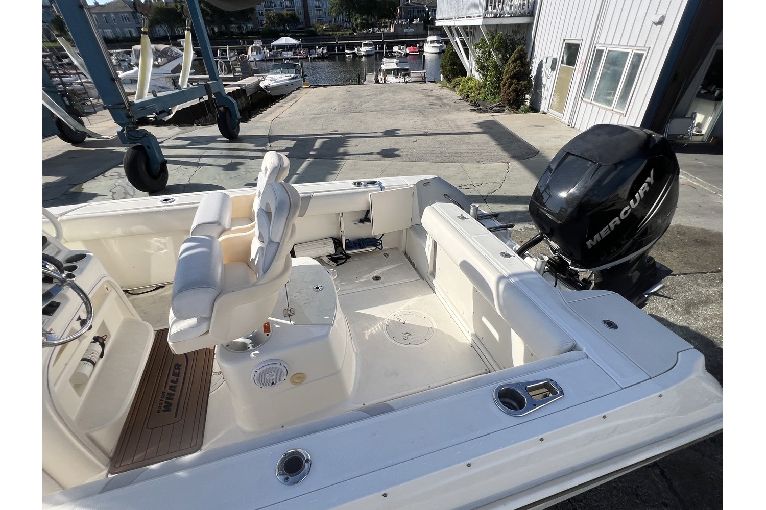 Introducing the 2015 Boston Whaler 220 Outrage, a remarkable center console boat designed for both adventure and comfort. With an overall length of approximately 22.4 feet, this vessel showcases a robust fiberglass hull with a deep Vee shape, ensuring excellent performance and stability on the water. Powered by a Mercury Verado outboard engine delivering 225 horsepower, it promises exhilarating speed and responsiveness. The boat accommodates up to 10 passengers, making it perfect for family outings or fishing trips with friends. Equipped with essential features, the 220 Outrage is ready for any adventure. Its thoughtful design and durable construction reflect Boston Whaler's commitment to quality and safety. Whether you're cruising along the coast or navigating through choppy waters, this boat offers a blend of performance and comfort that is sure to impress. Experience the thrill of the open water with the Boston Whaler 220 Outrage.