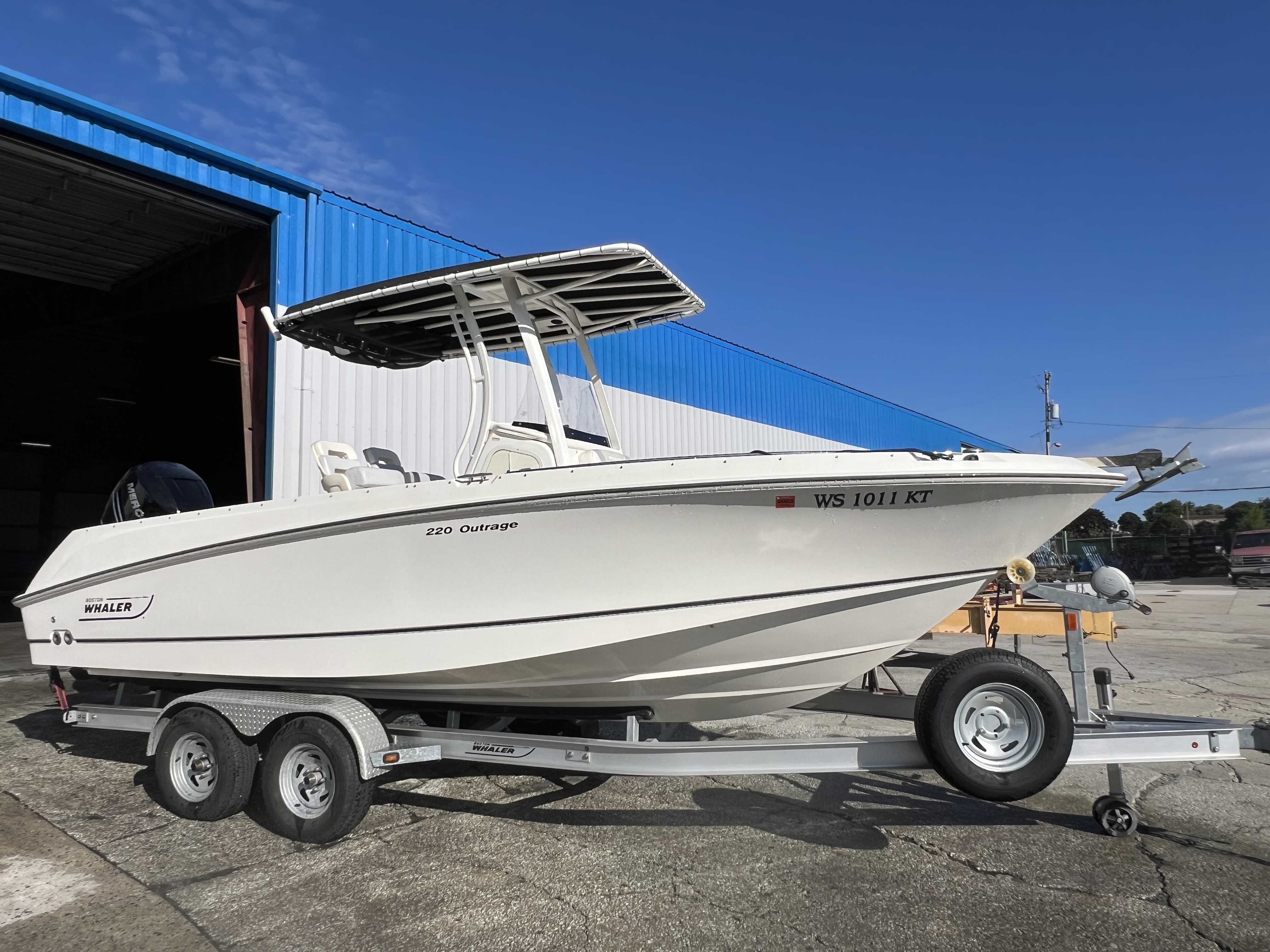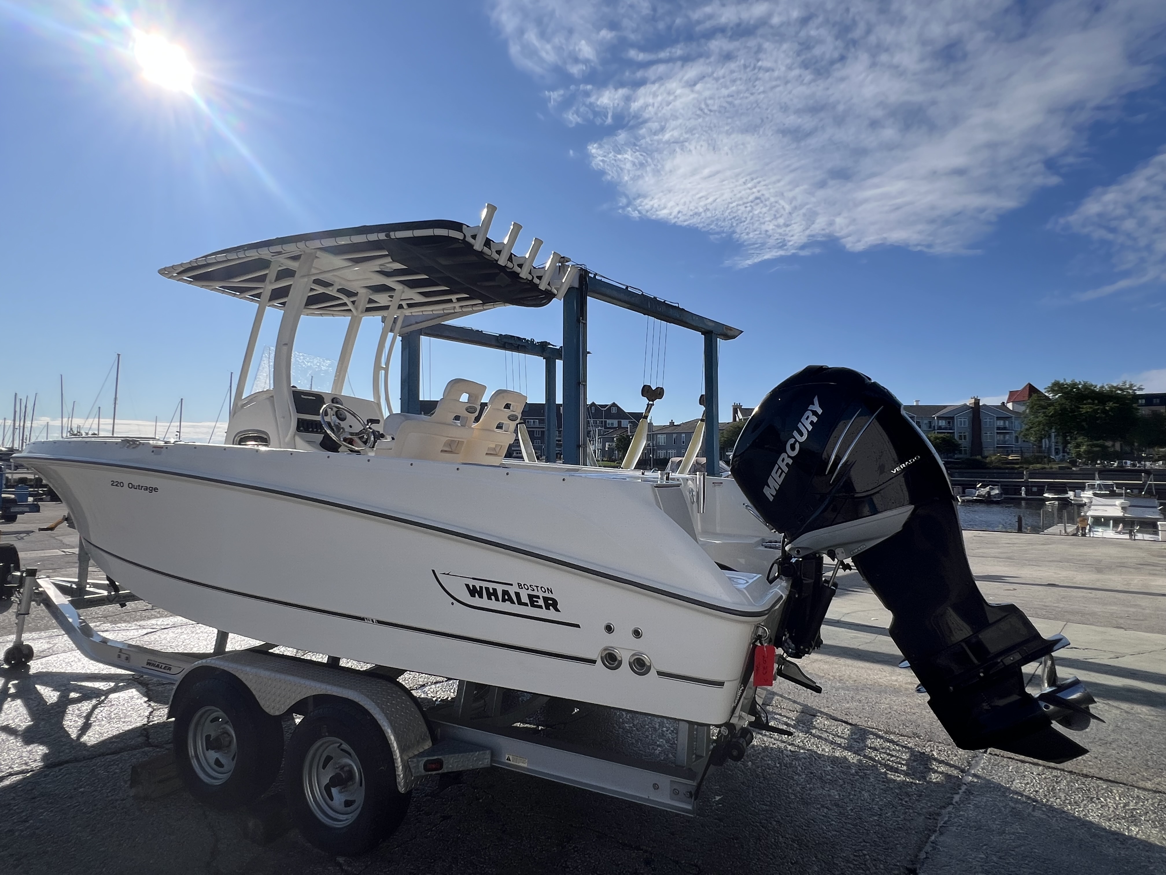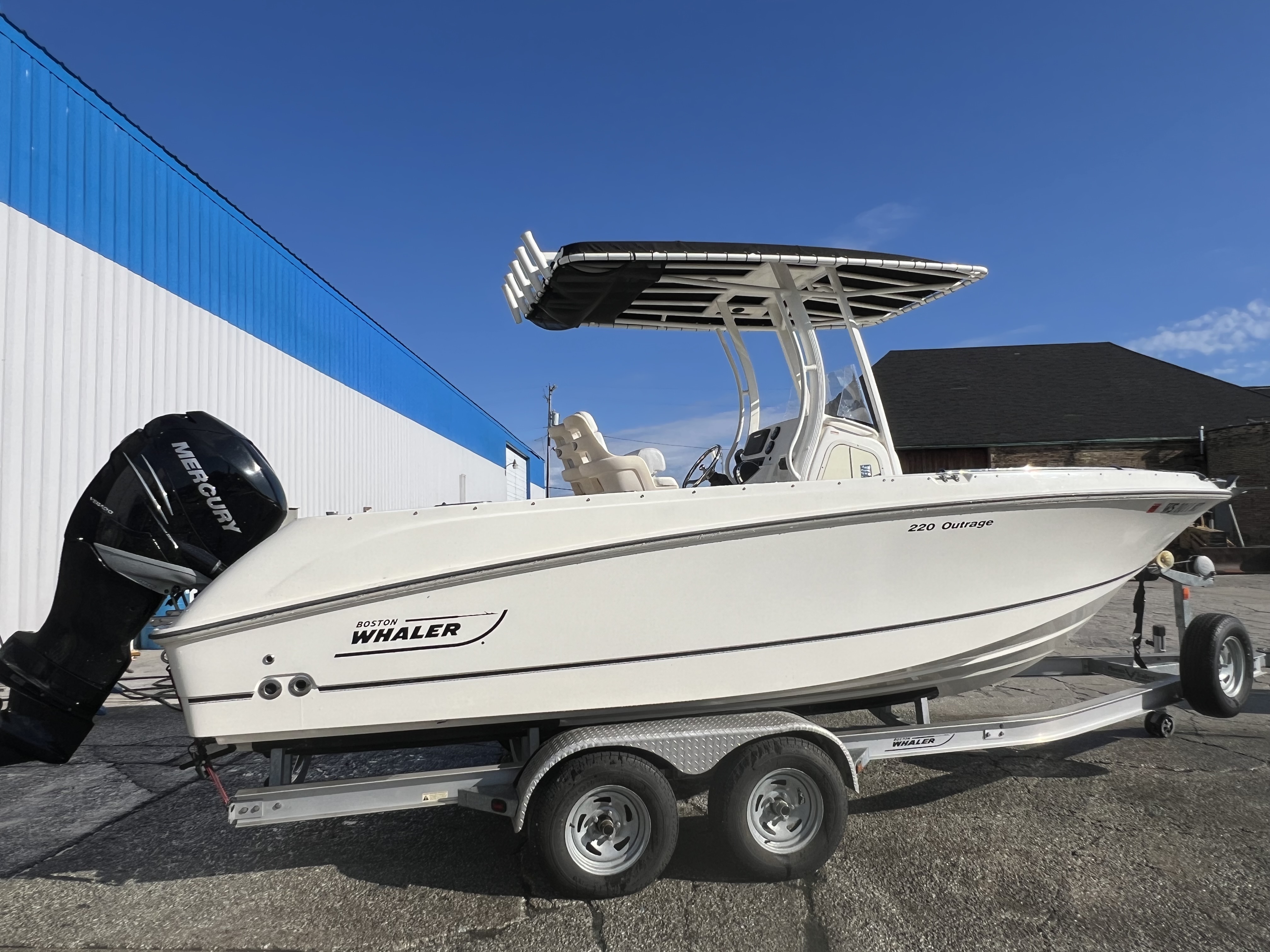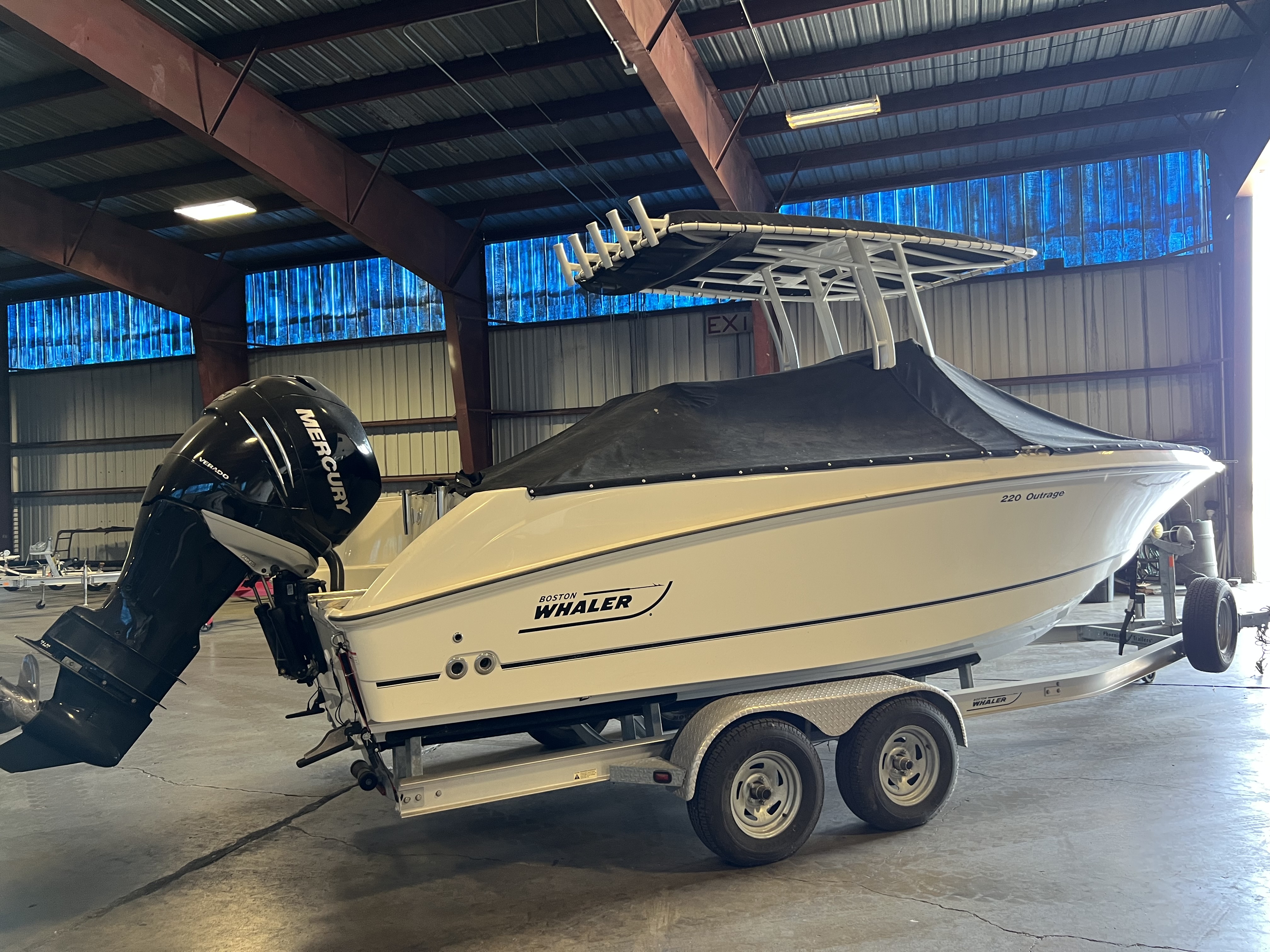 Introducing the 2015 Boston Whaler 220 Outrage, a remarkable center console boat designed for both adventure and comfort. With an overall length of approximately 22.4 feet, this vessel showcases a robust fiberglass hull with a deep Vee shape, ensuring excellent performance and stability on the water. Powered by a Mercury Verado outboard engine delivering 225 horsepower, it promises exhilarating speed and responsiveness. The boat accommodates up to 10 passengers, making it perfect for family outings or fishing trips with friends. Equipped with essential features, the 220 Outrage is ready for any adventure. Its thoughtful design and durable construction reflect Boston Whaler's commitment to quality and safety. Whether you're cruising along the coast or navigating through choppy waters, this boat offers a blend of performance and comfort that is sure to impress. Experience the thrill of the open water with the Boston Whaler 220 Outrage. Max HP: 300 hp (224 kW)