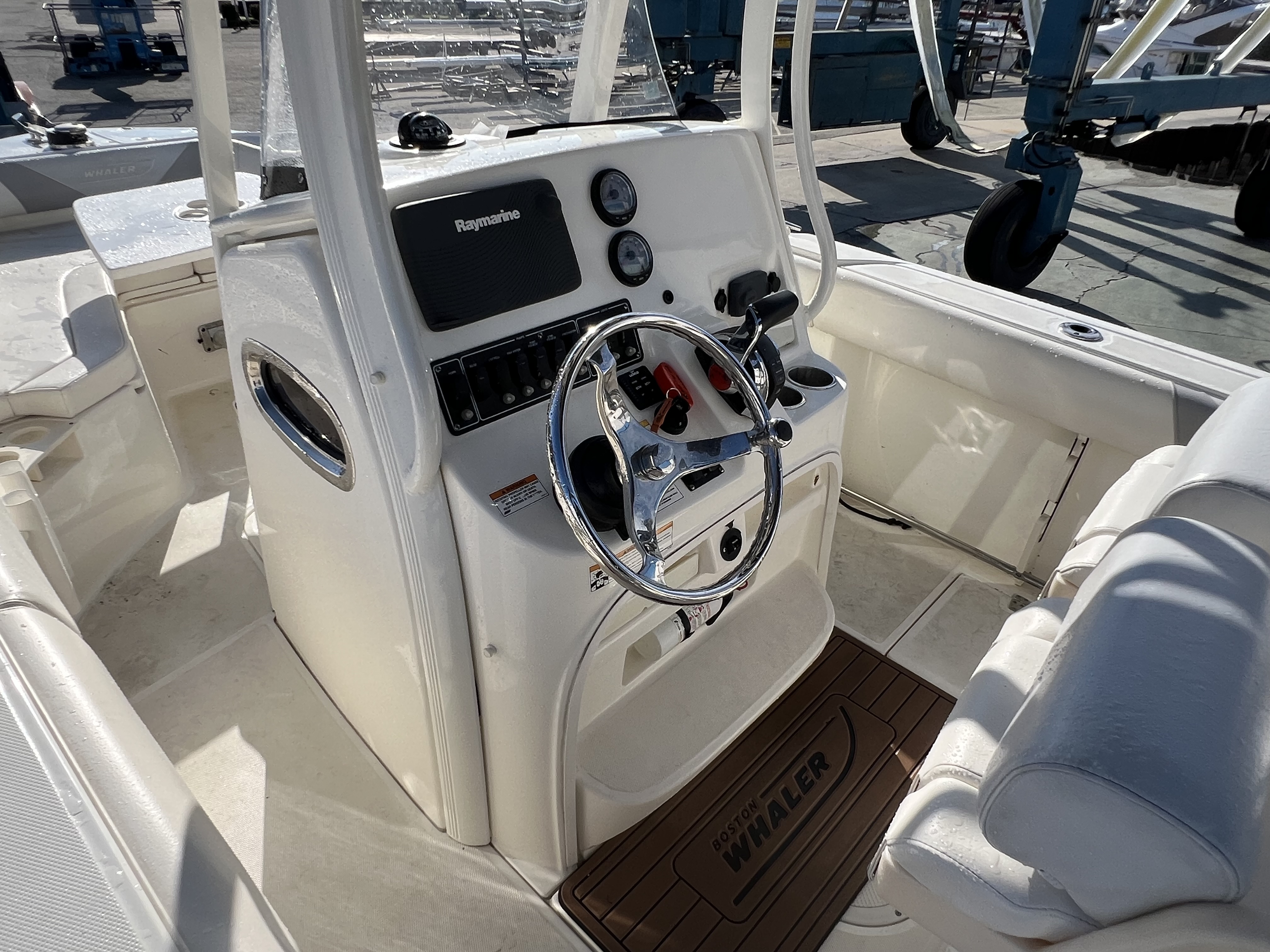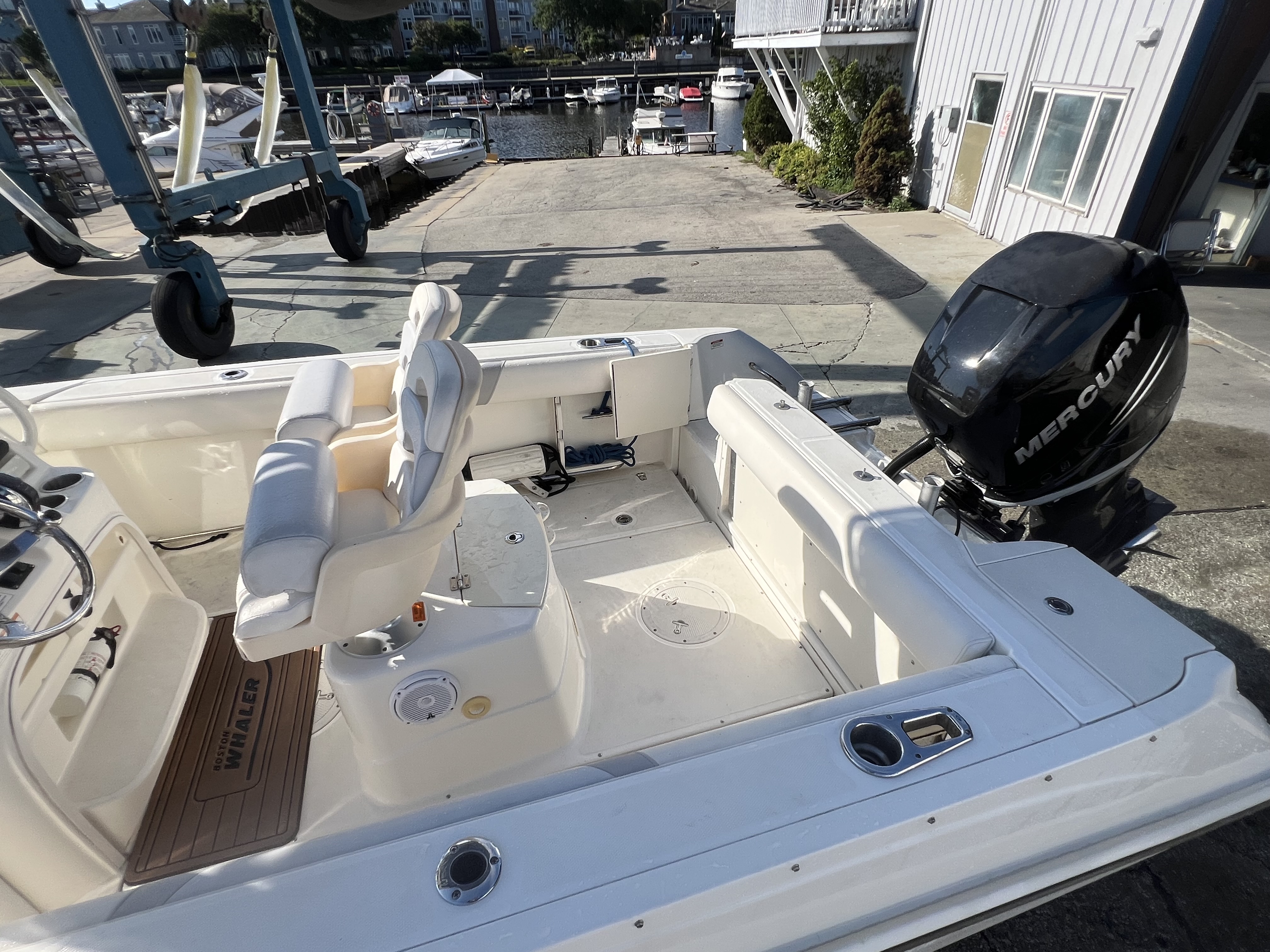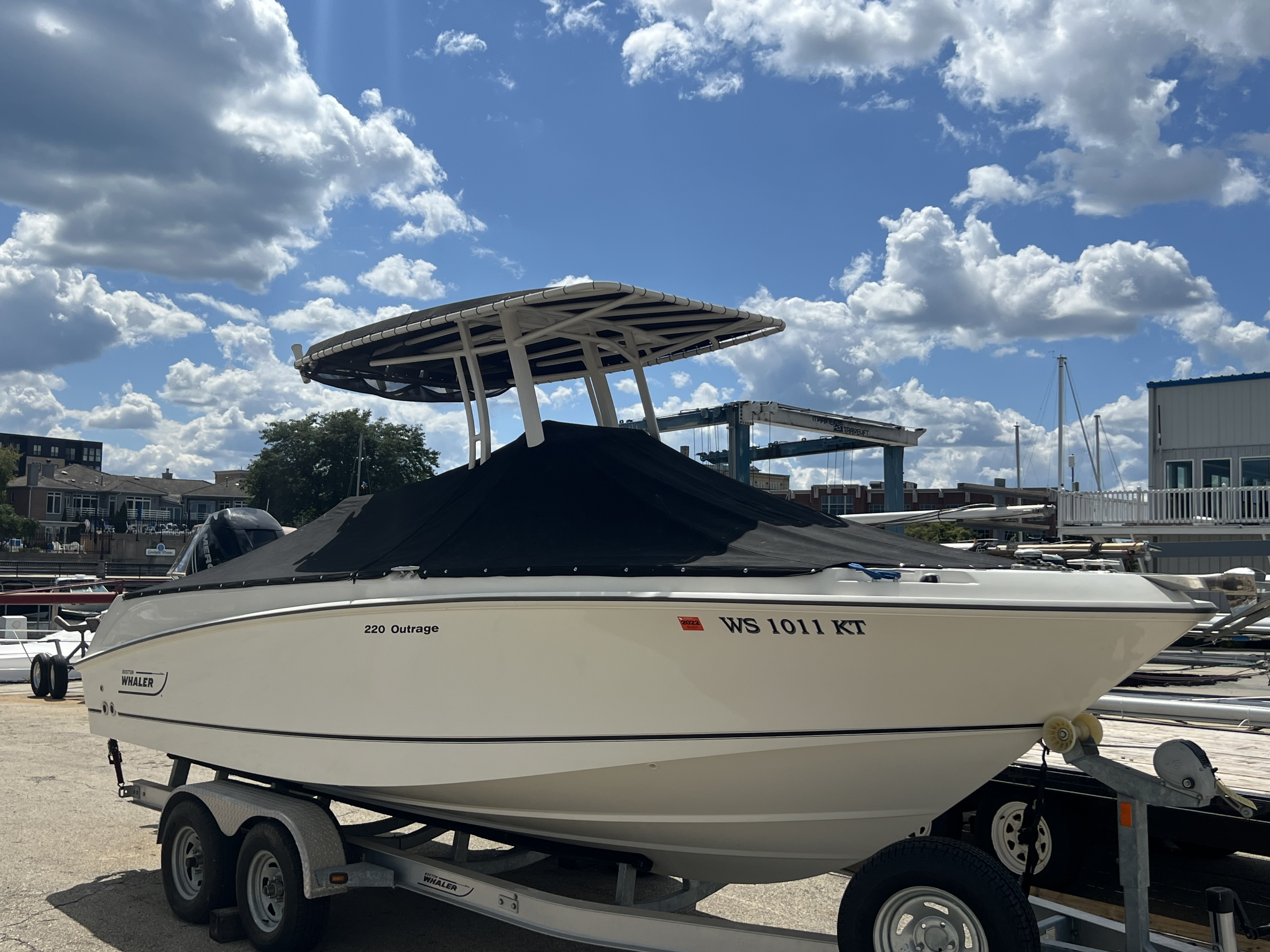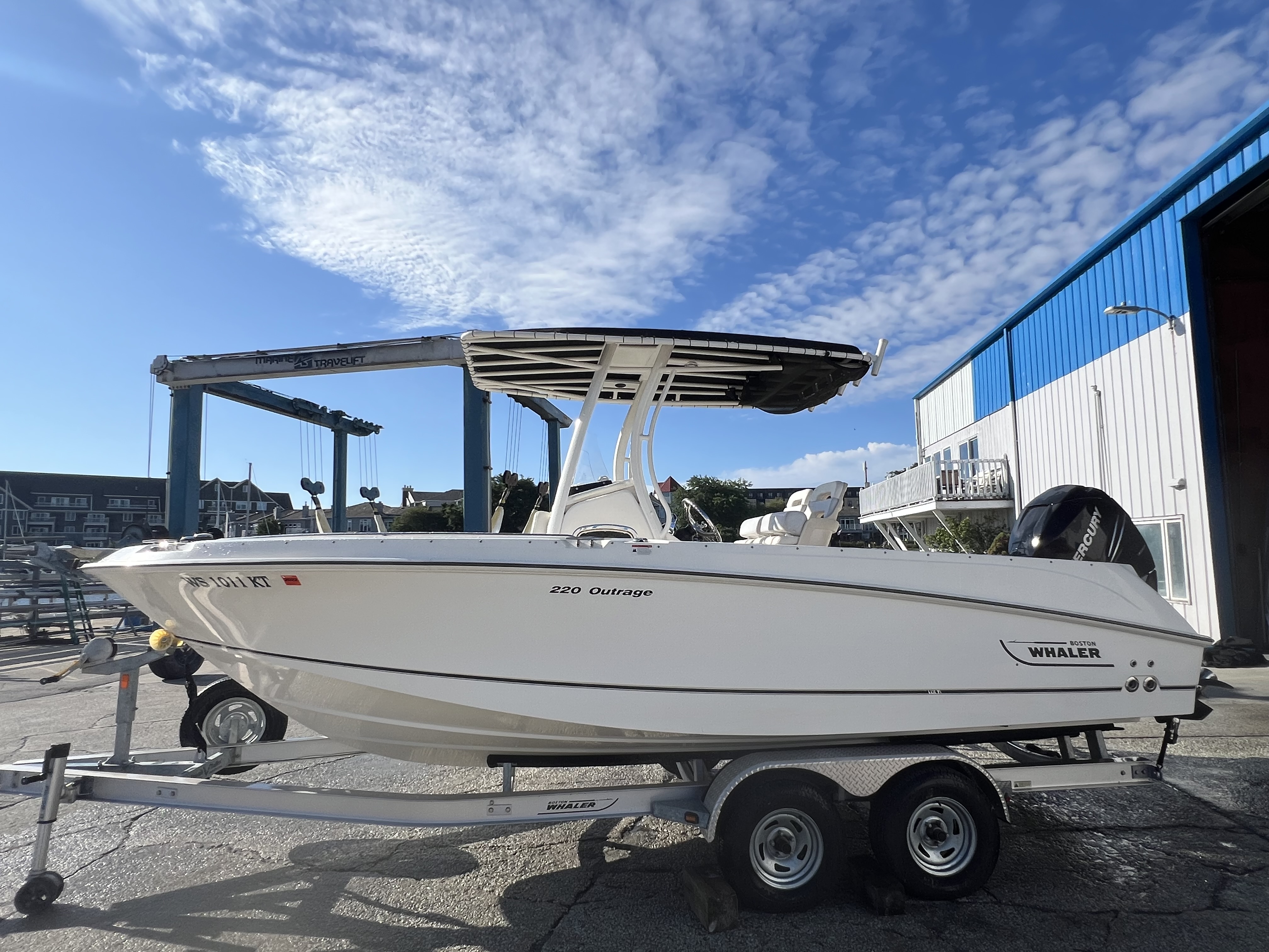 Introducing the 2015 Boston Whaler 220 Outrage, a remarkable center console boat designed for both adventure and comfort. With an overall length of approximately 22.4 feet, this vessel showcases a robust fiberglass hull with a deep Vee shape, ensuring excellent performance and stability on the water. Powered by a Mercury Verado outboard engine delivering 225 horsepower, it promises exhilarating speed and responsiveness. The boat accommodates up to 10 passengers, making it perfect for family outings or fishing trips with friends. Equipped with essential features, the 220 Outrage is ready for any adventure. Its thoughtful design and durable construction reflect Boston Whaler's commitment to quality and safety. Whether you're cruising along the coast or navigating through choppy waters, this boat offers a blend of performance and comfort that is sure to impress. Experience the thrill of the open water with the Boston Whaler 220 Outrage. Max HP: 300 hp (224 kW)