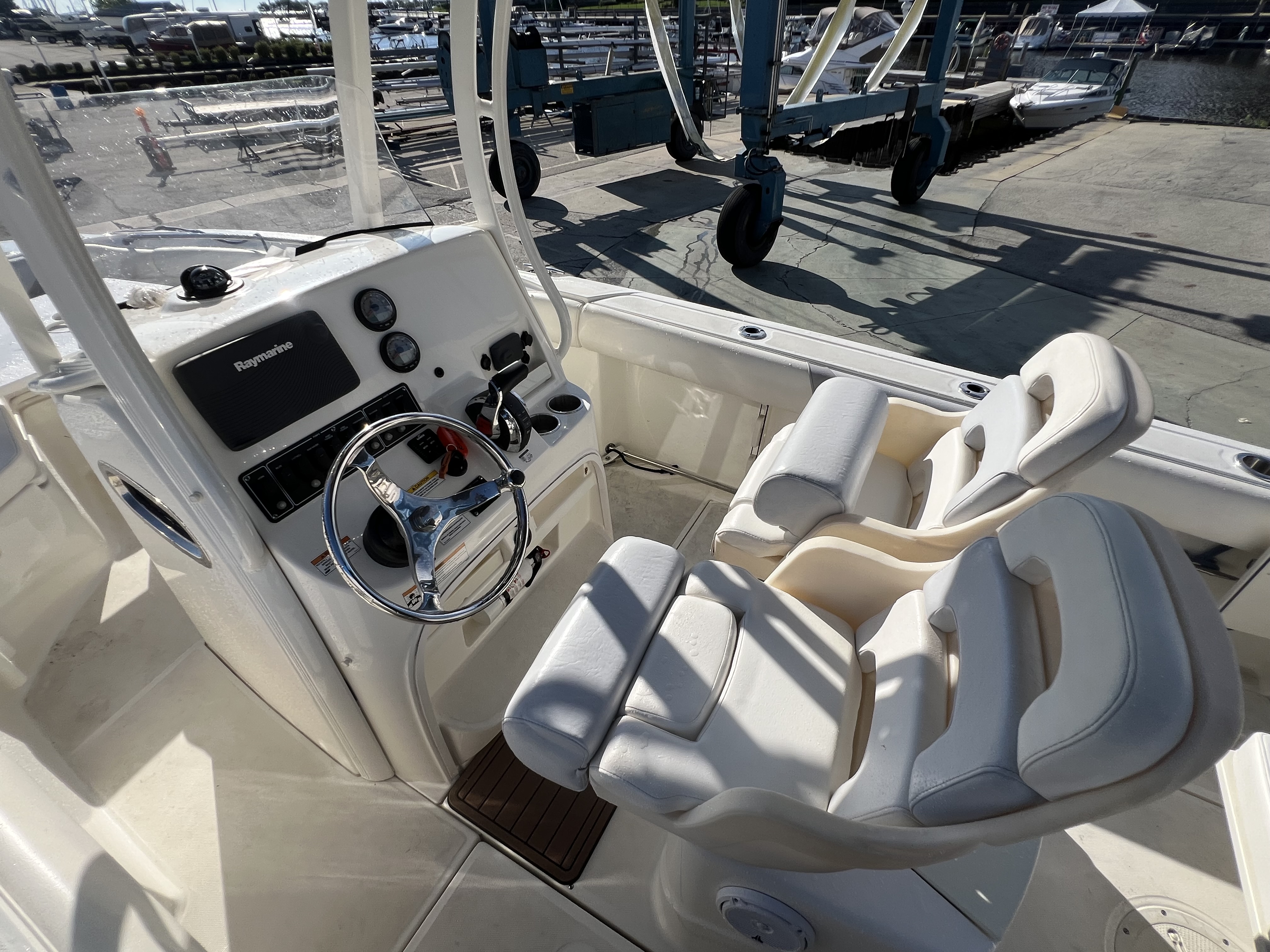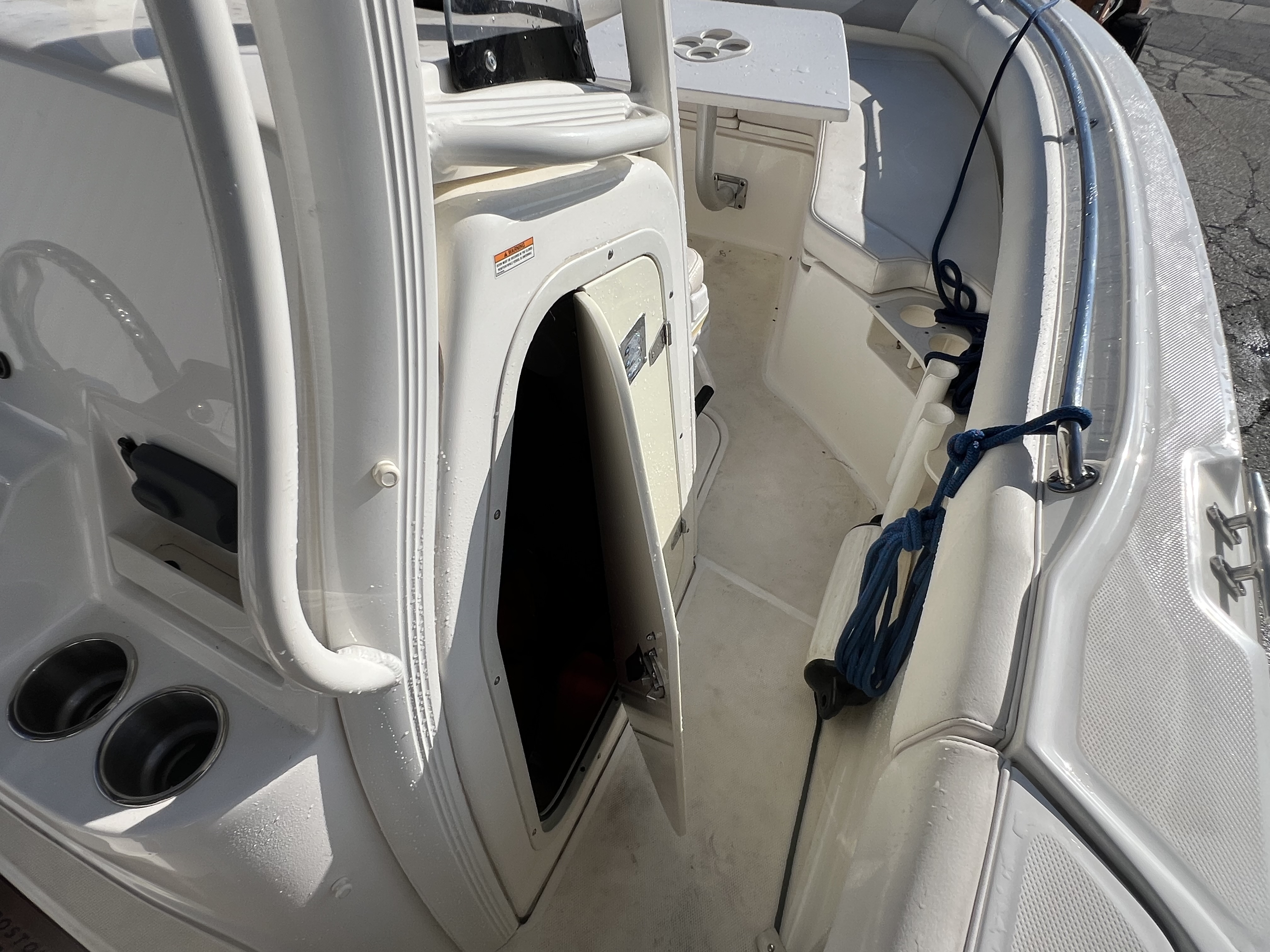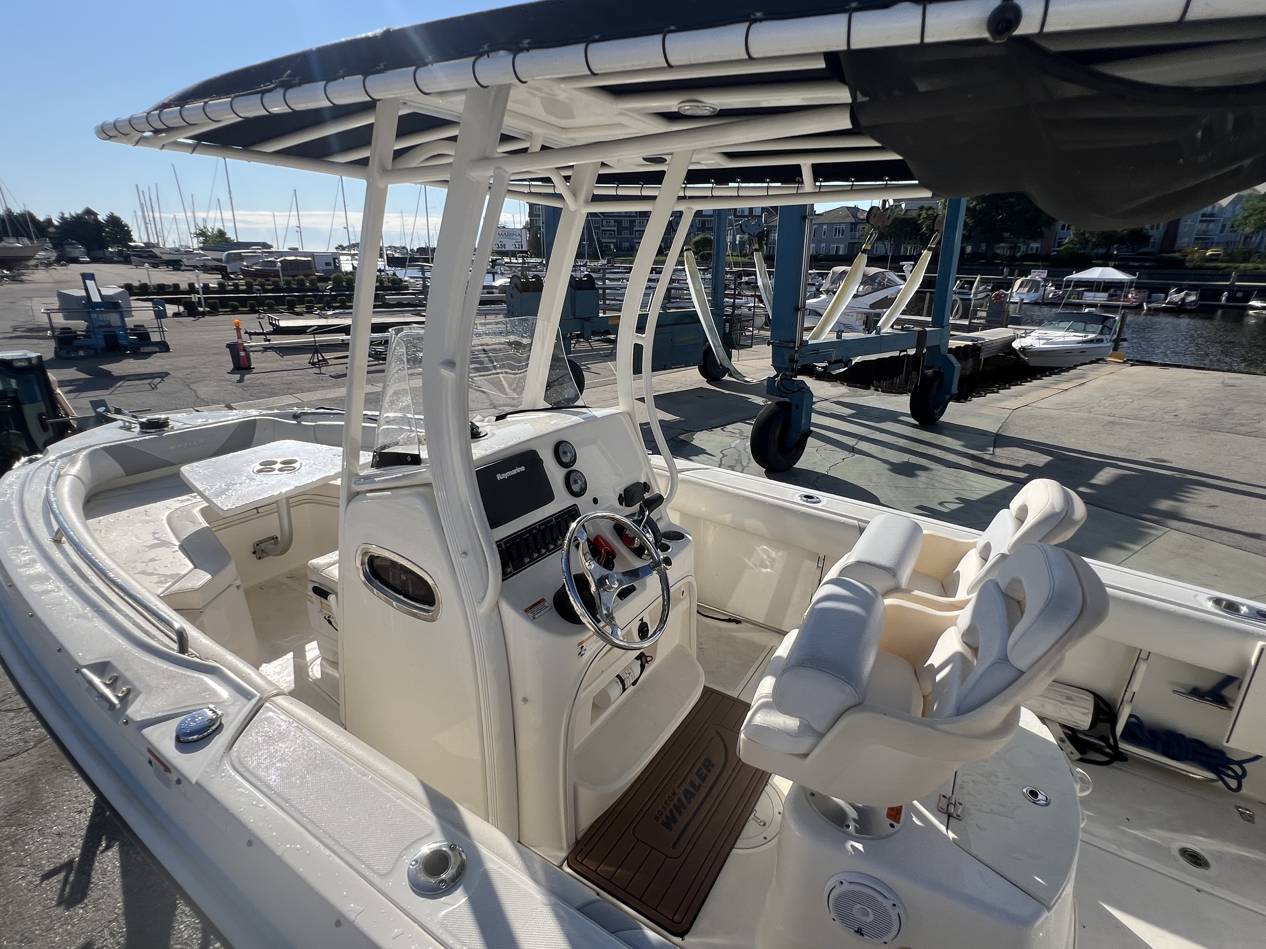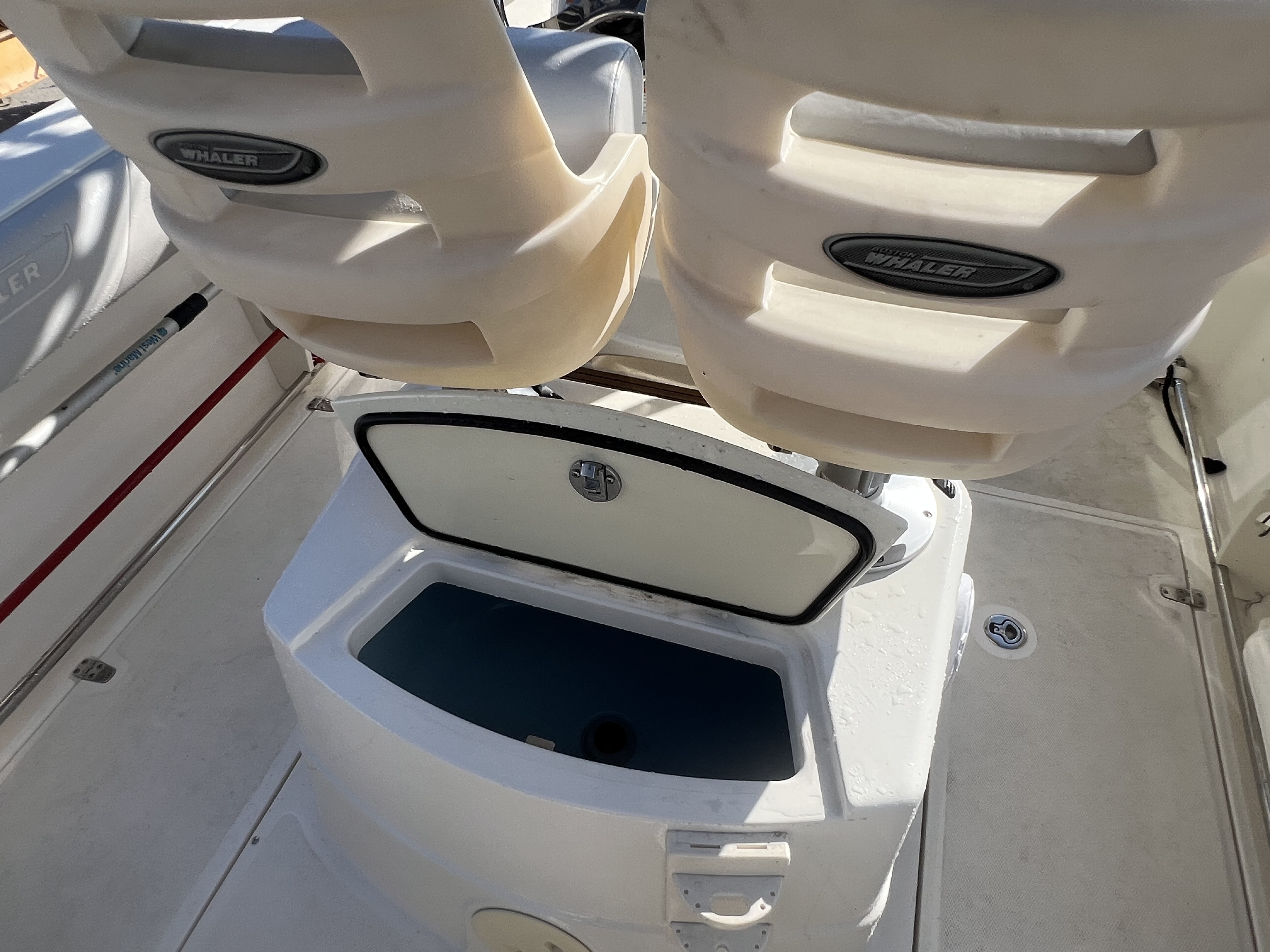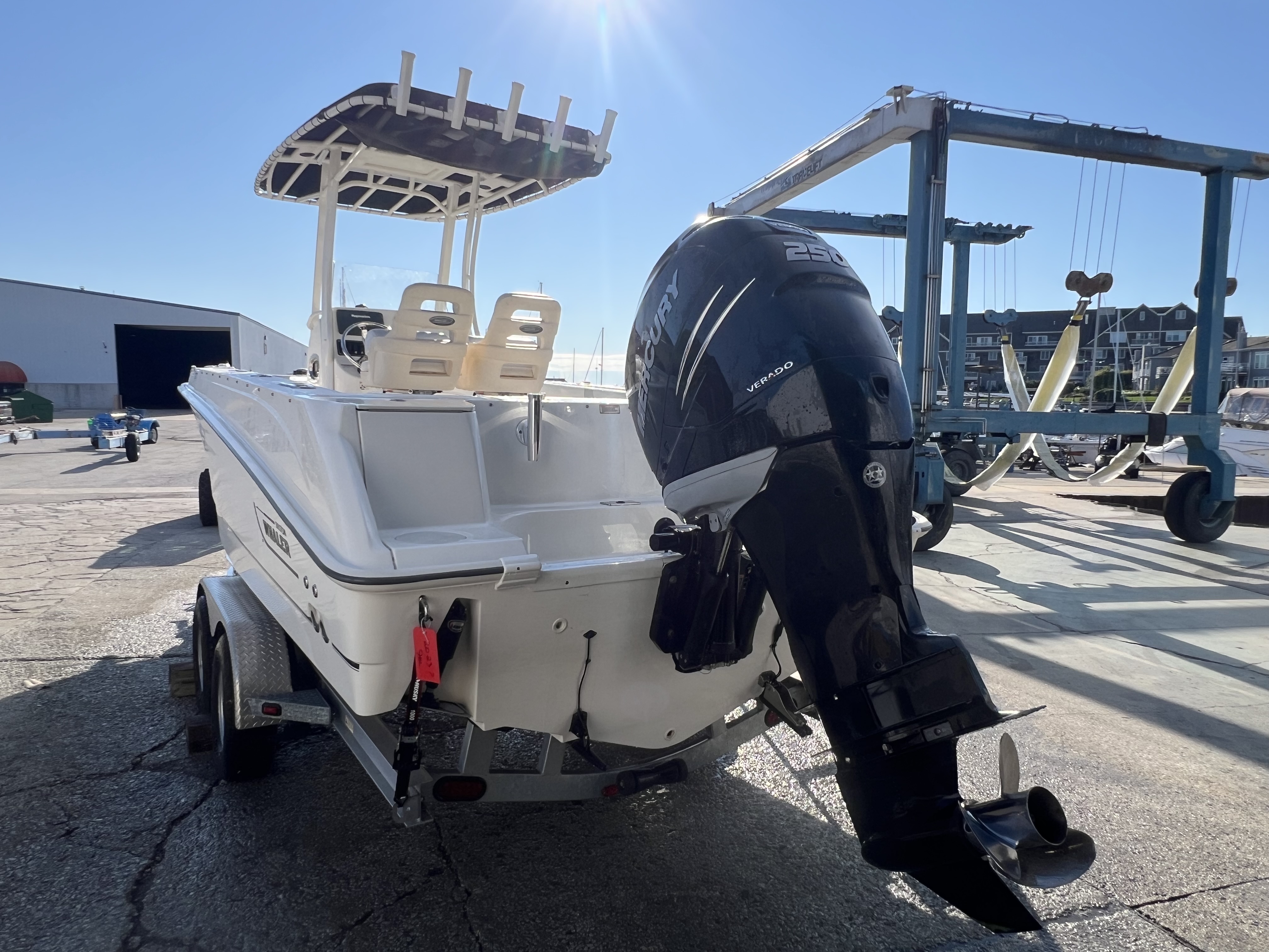 Introducing the 2015 Boston Whaler 220 Outrage, a remarkable center console boat designed for both adventure and comfort. With an overall length of approximately 22.4 feet, this vessel showcases a robust fiberglass hull with a deep Vee shape, ensuring excellent performance and stability on the water. Powered by a Mercury Verado outboard engine delivering 225 horsepower, it promises exhilarating speed and responsiveness. The boat accommodates up to 10 passengers, making it perfect for family outings or fishing trips with friends. Equipped with essential features, the 220 Outrage is ready for any adventure. Its thoughtful design and durable construction reflect Boston Whaler's commitment to quality and safety. Whether you're cruising along the coast or navigating through choppy waters, this boat offers a blend of performance and comfort that is sure to impress. Experience the thrill of the open water with the Boston Whaler 220 Outrage. Max HP: 300 hp (224 kW)
