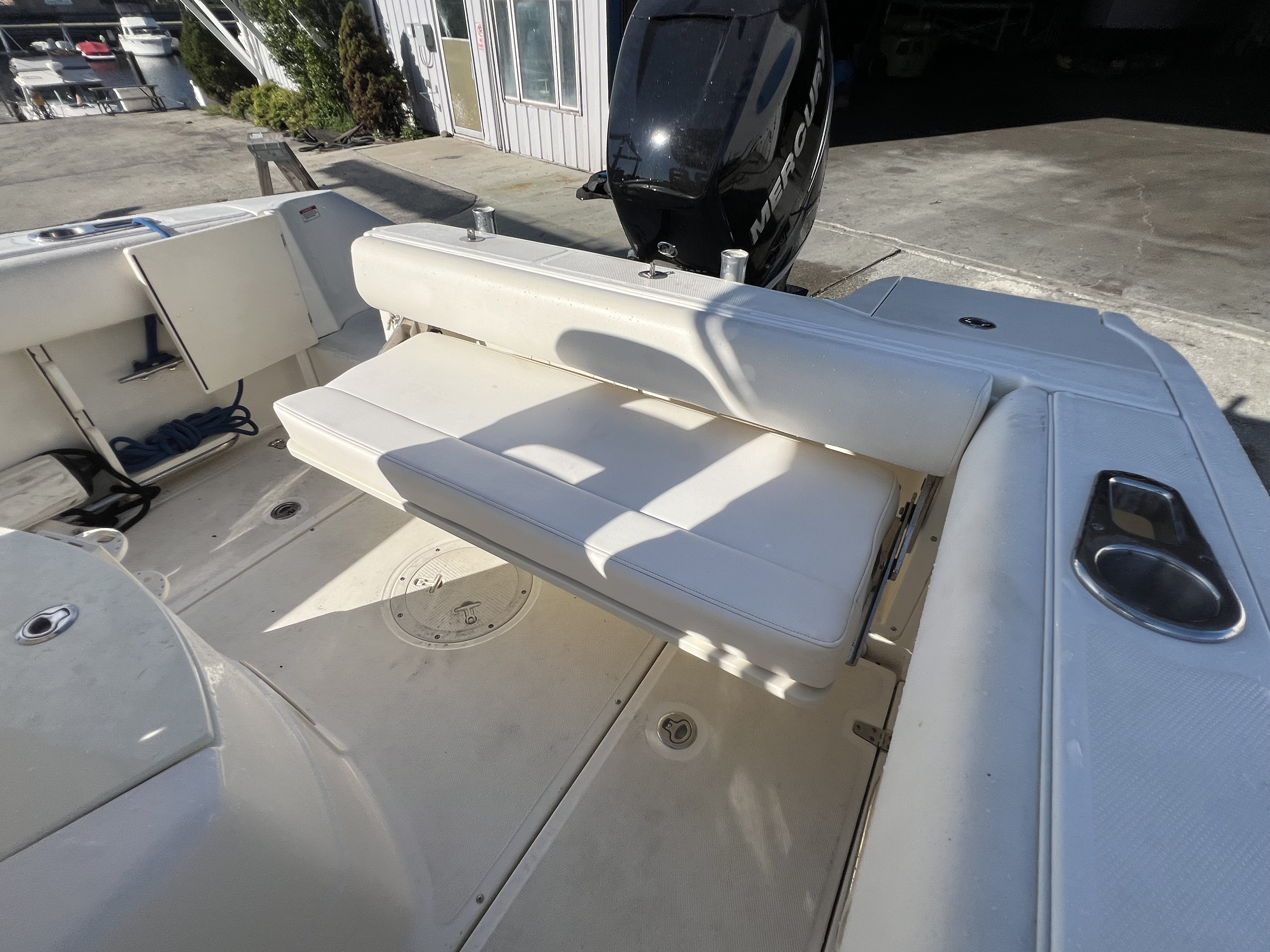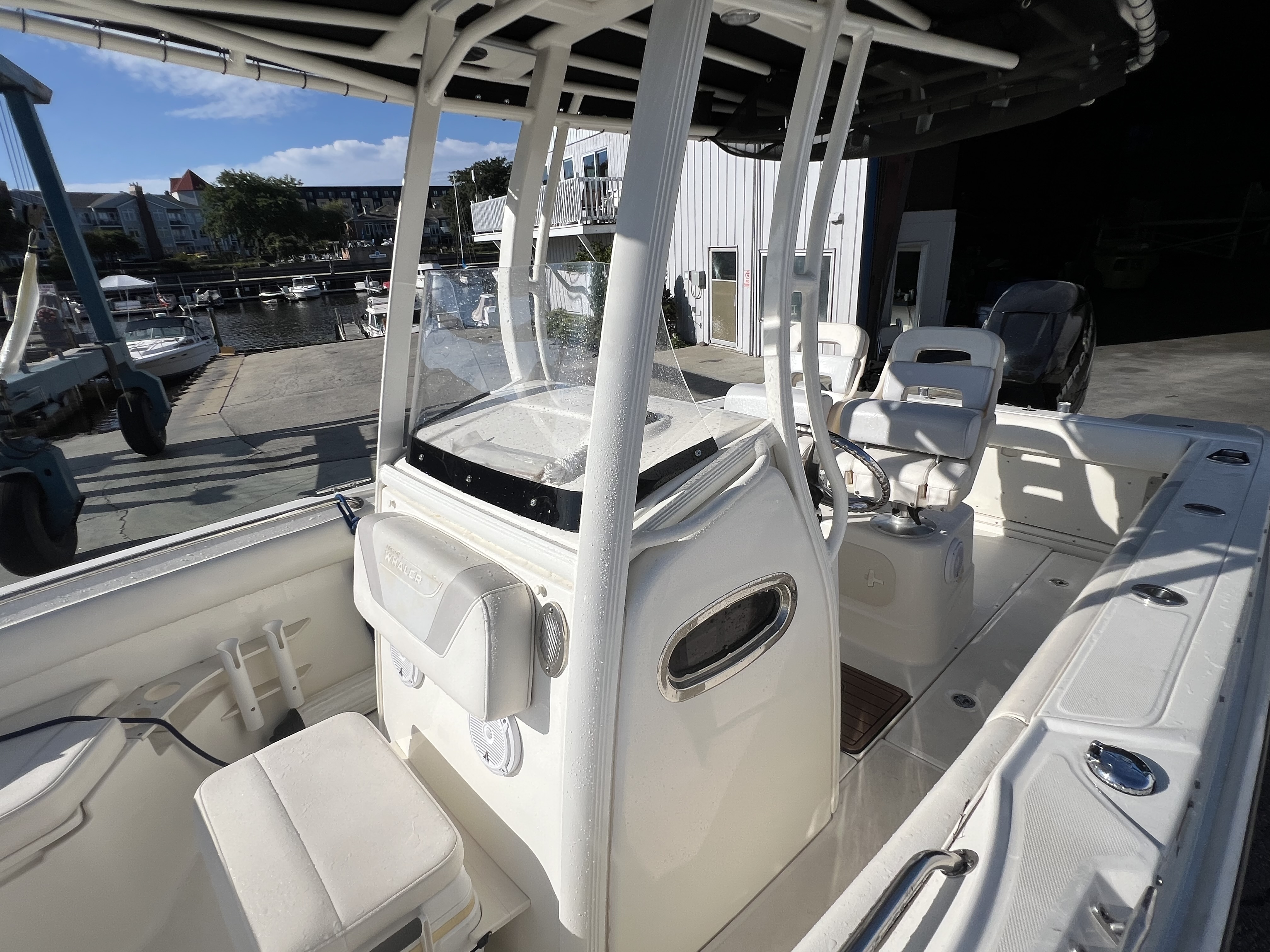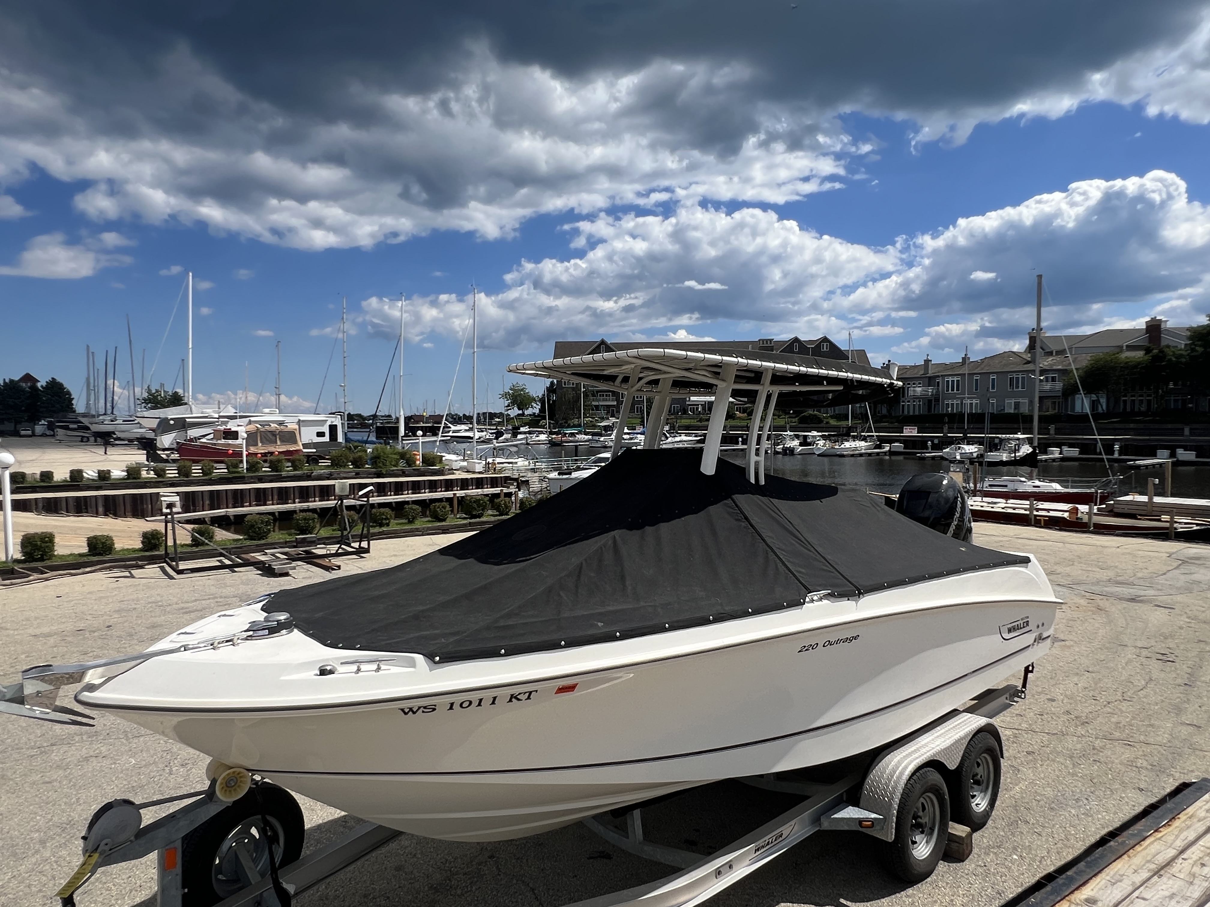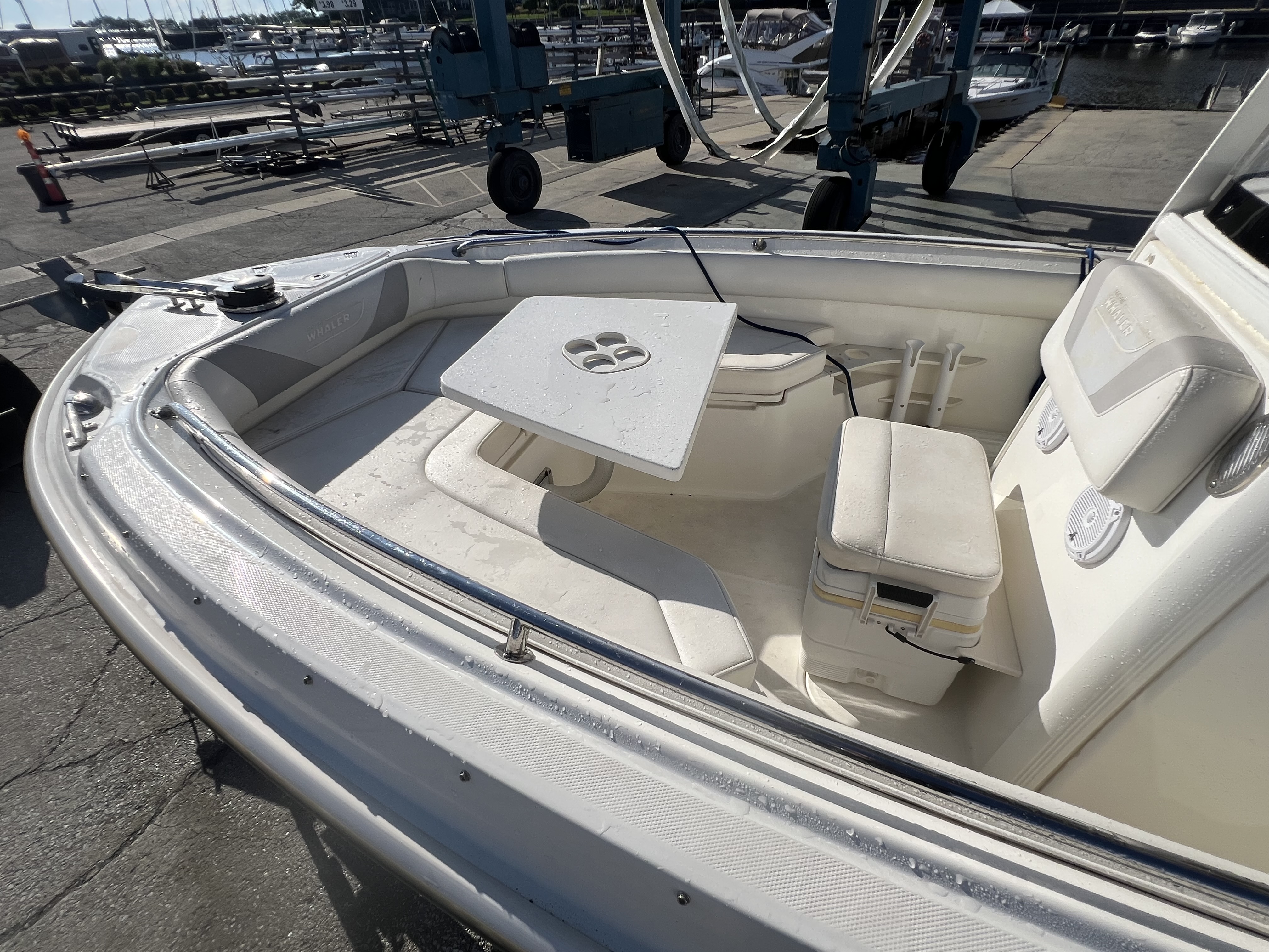 Introducing the 2015 Boston Whaler 220 Outrage, a remarkable center console boat designed for both adventure and comfort. With an overall length of approximately 22.4 feet, this vessel showcases a robust fiberglass hull with a deep Vee shape, ensuring excellent performance and stability on the water. Powered by a Mercury Verado outboard engine delivering 225 horsepower, it promises exhilarating speed and responsiveness. The boat accommodates up to 10 passengers, making it perfect for family outings or fishing trips with friends. Equipped with essential features, the 220 Outrage is ready for any adventure. Its thoughtful design and durable construction reflect Boston Whaler's commitment to quality and safety. Whether you're cruising along the coast or navigating through choppy waters, this boat offers a blend of performance and comfort that is sure to impress. Experience the thrill of the open water with the Boston Whaler 220 Outrage. Max HP: 300 hp (224 kW)